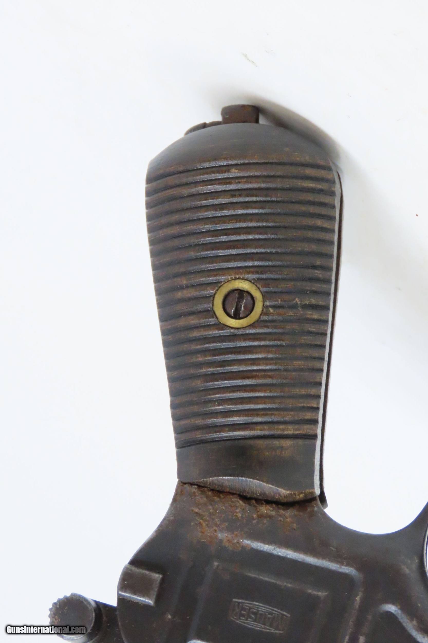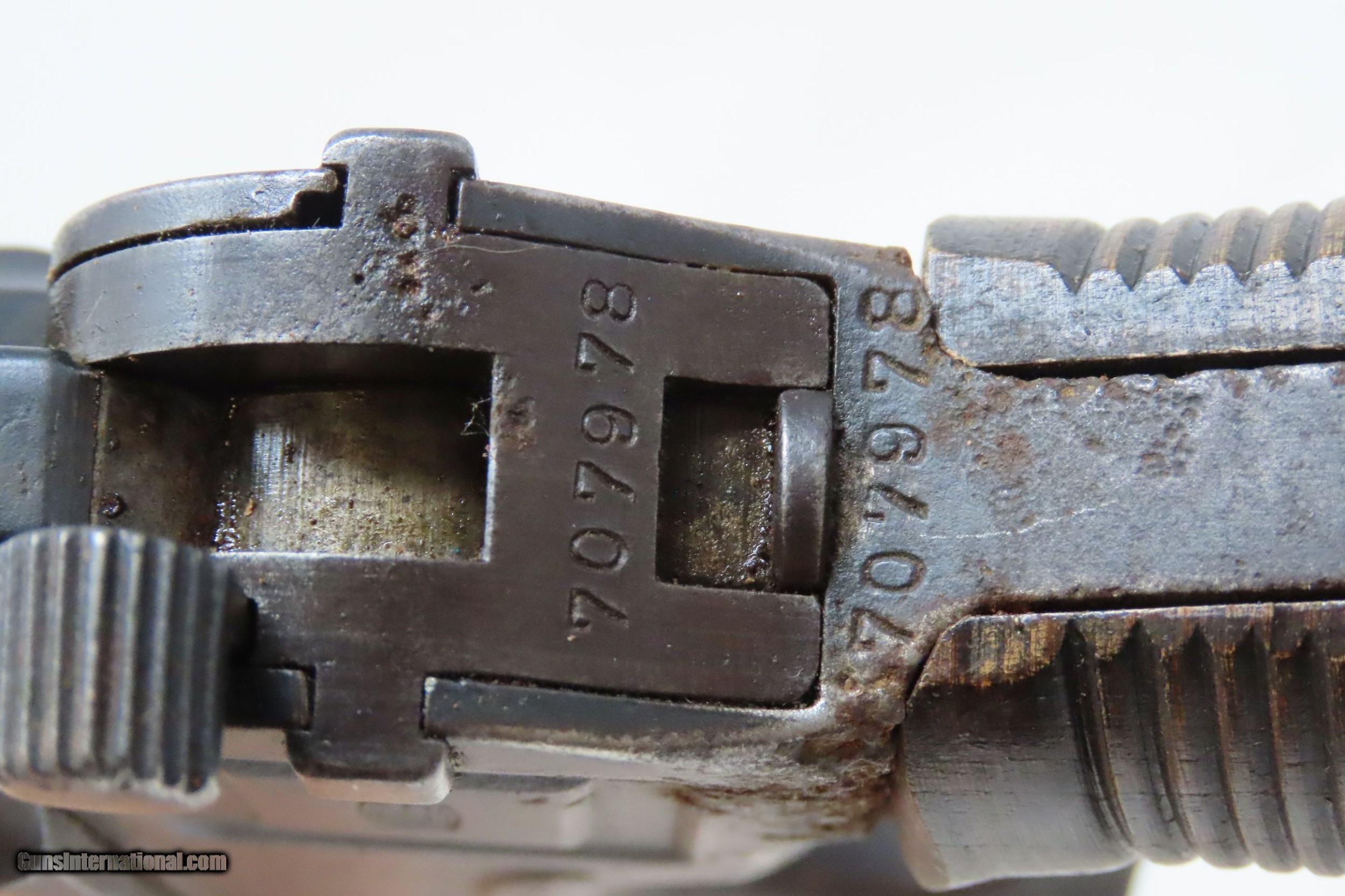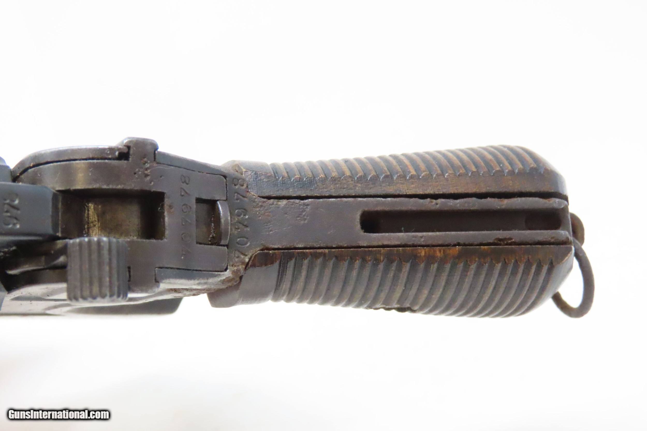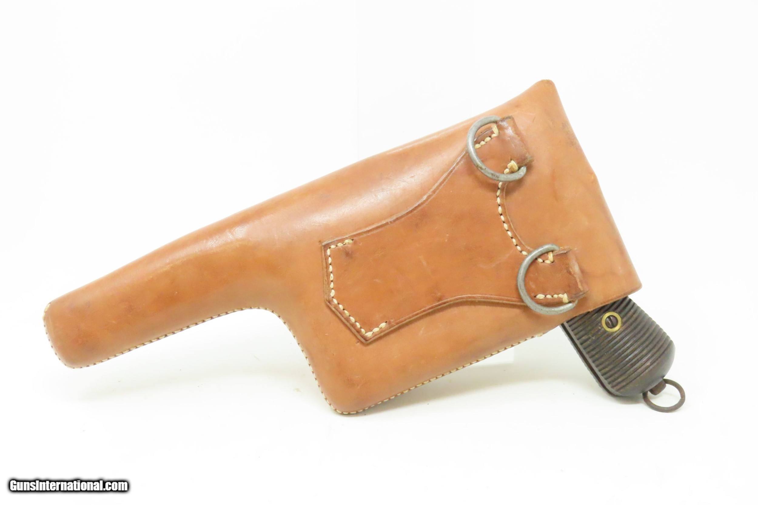 Description: Pre-World War II MAUSER Model 1896 “BOLO” 7.63x25mm Broomhandle Pistol C&R Made Famous by the Bolsheviks w/LEATHER HOLSTER Here we present a C&R Mauser Model 1896 “Bolo” Broomhandle Pistol, made circa 1923-1930. The Mauser Construktion 96 was the Mauser Company’s most successful pistol and was even used by the likes of Winston Churchill during the Boer Wars. He is attributed as saying that it was “the best thing in the world”. This variant has a shorter barrel and is also known as the M1921 or the “Bolo”, the latter due to its association with the Bolsheviks and the Red Army after the Bolshevik Revolution. “Bolo” was a derogatory term for those who identified as Bolsheviks. The victorious communists purchased many of these pistols and likely scavenged them from their defeated enemies, the Whites, who also bought them in large quantities. These were certainly popular in other parts of the world as well and were heavily adopted by many in the post-WWI German Freikorps, who fought against communists in the Balkans. This overall condition is fair to good. Original patina with some rust. The grip frame area has some heavy pitting. The action is excellent. The bore is in good shape, gray with nice rifling, no pitting. The grips are replacements and are in very good condition. The leather holster is likewise in very good condition. This firearm is classified as a Curio & Relic. Barrel is 4 inches. Caliber: 7.63x25 Mauser Auto Overall condition as seen in photos. Very Fast. Very Safe. FREE SHIPPING. Will need to be sent to your local FFL or C&R licensee. This firearm is classified as a Curio & Relic. ancestryguns $2200 #226277 SOLD Curio/Relic: Yes |