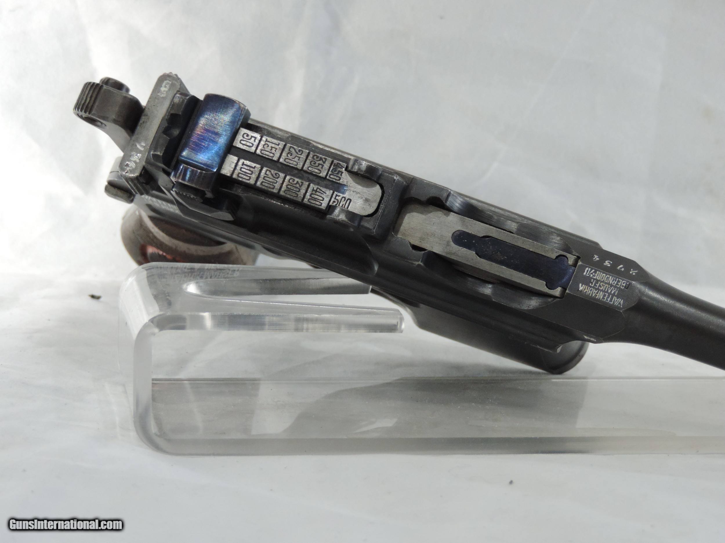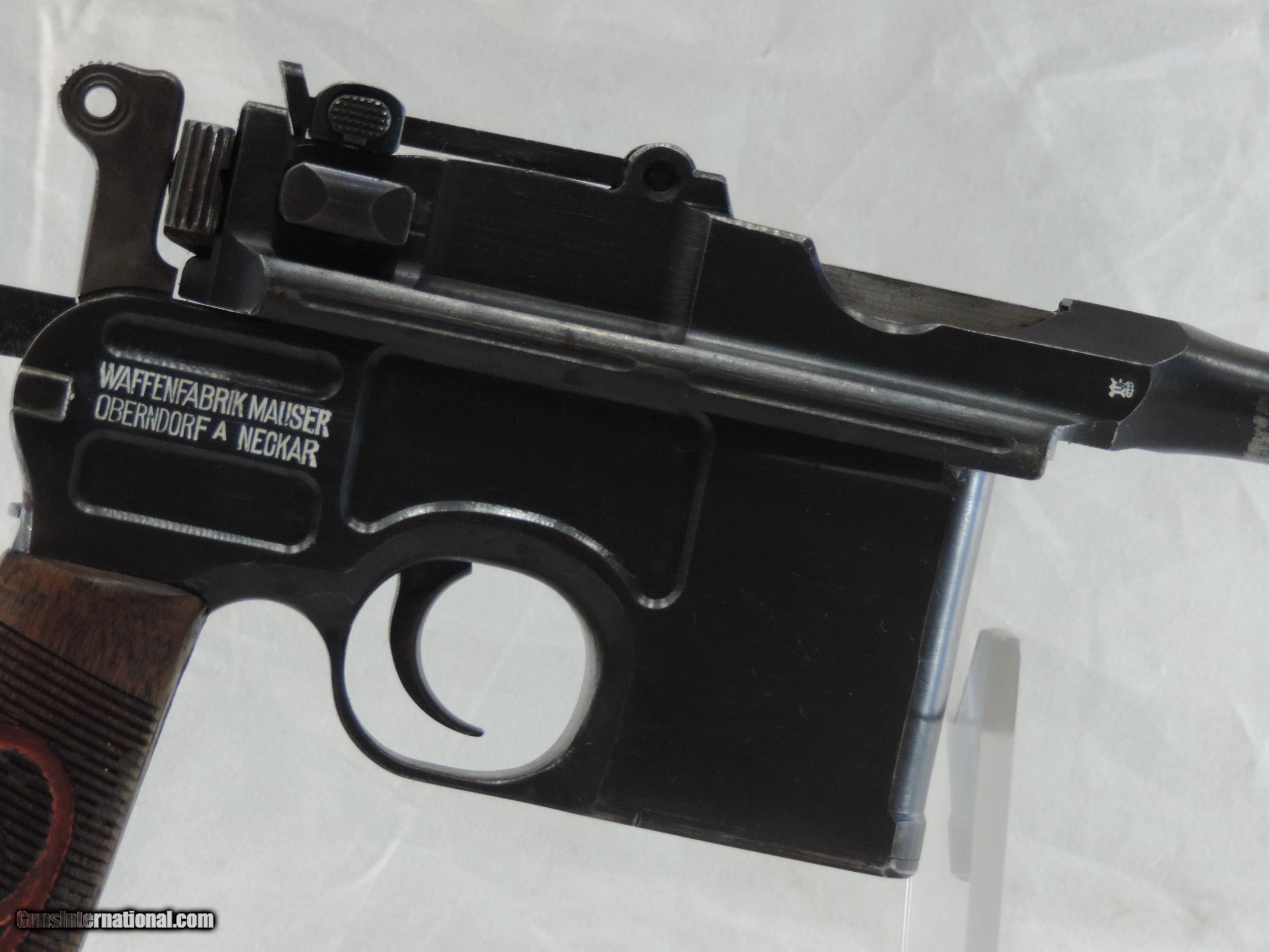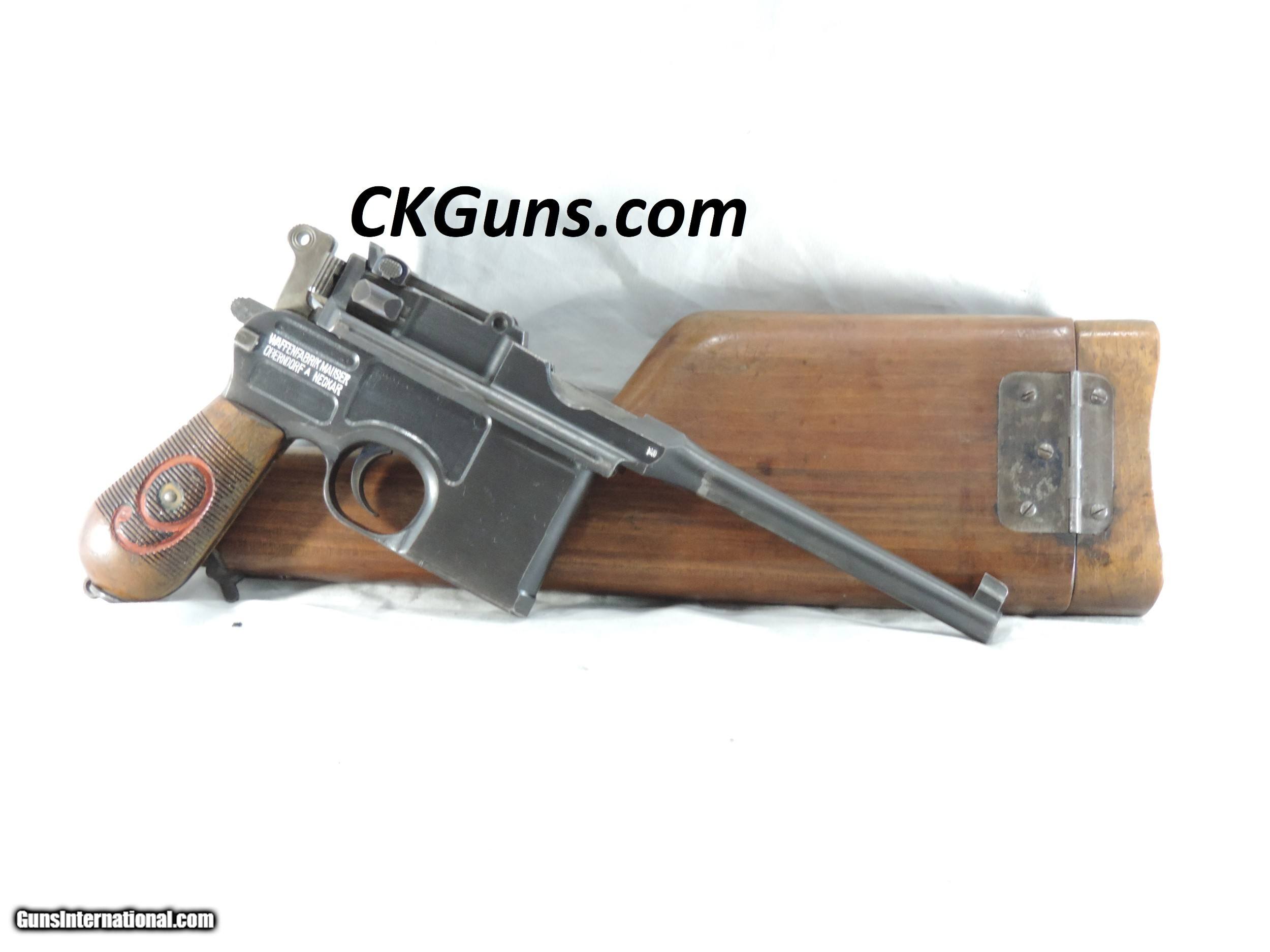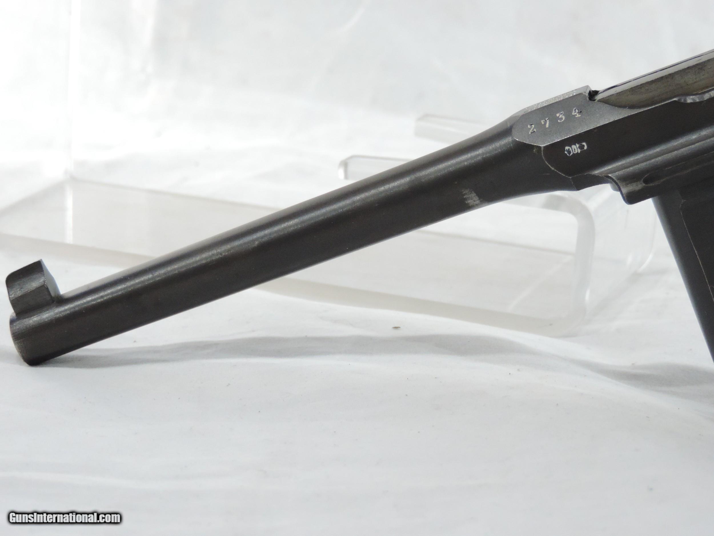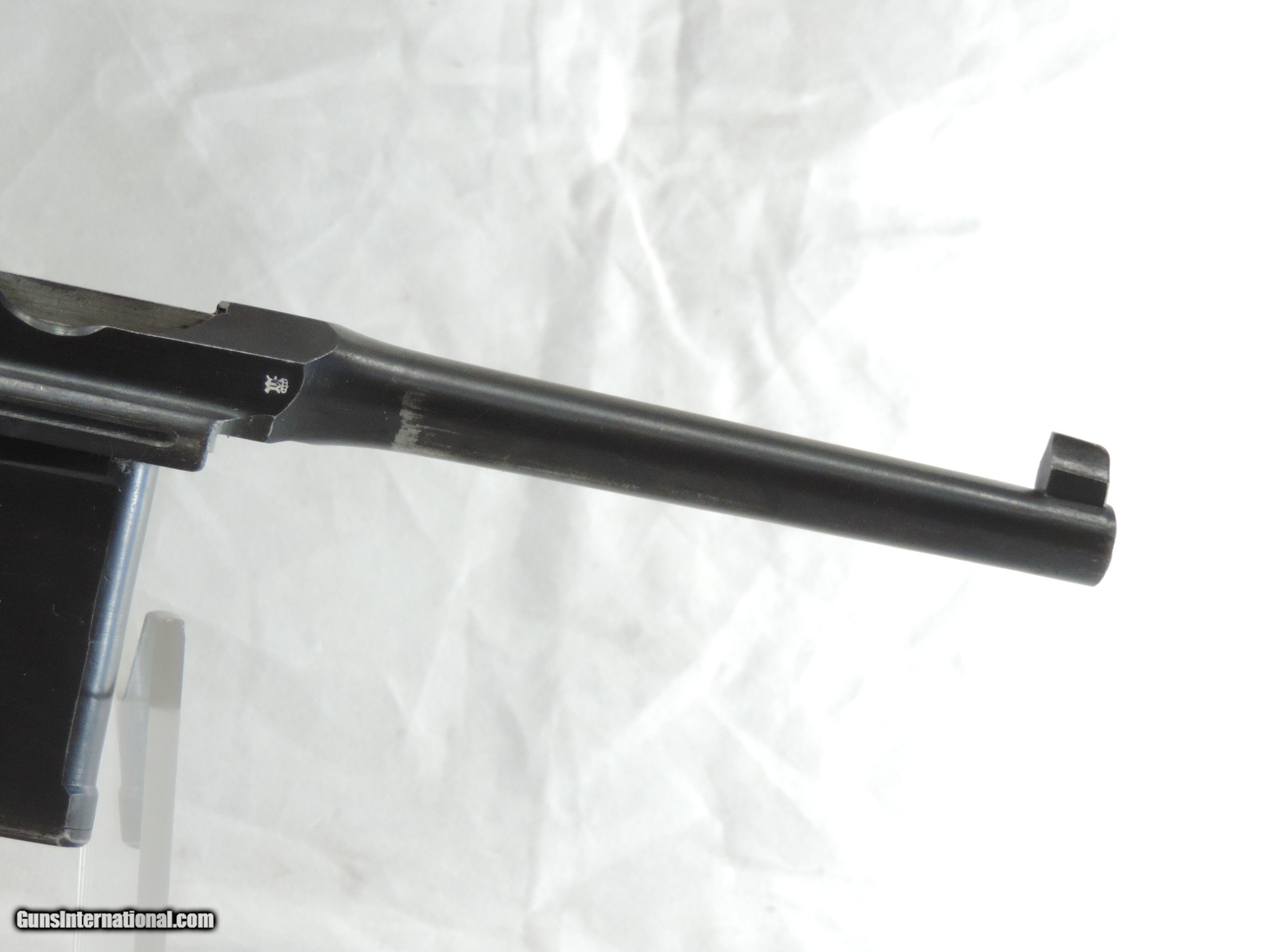 Description: INV. 8921 WOW, MAUSER BROOMHANDLE RED NINE C96 RIG, CAL. 9MM, SER. 2734. AWESOME, IT HAS RETAINED ABOUT 98+% OF THE ORIGINAL FACTORY FINISH. THE LITTLE LOSS IT HAS IS FROM THE EVER PRESENT HOLSTER STOCK RUB MARK ON THE BARREL AND A LITTLE BIT OF SHARP EDGE SILVERING. NOT A SPECK OF RUST, A SCRATCH OR A RUB MARK ANYWHERE. ALL NUMBERS MATCH. INCLUDING THE STRIATED RED 9 GRIPS. WHICH ARE PERFECT, NOT A CHIP OR SPLIT ANYWHERE. THE GRIP STRAPS SHOW LITTLE OR NO SIGN OF GRAYING. THE CASE COLORED EXTRACTOR, TRIGGER AND SIGHT SLIDE ARE ALSO 98+%. THE SLIDE RAIL, BOLT FACE AND FEED RAMP SHOW LITTLE IF ANY USE. THE BORE IS SUPER LIKE THE REST OF THE GUN. MIRROR BRIGHT WITH RAZOR SHARP RIFLING NOT A TOUCH OF FROST ANYWHERE. THE STOCK IS IN PERFECT CONDITION. NO SPLITS, DINGS OR MISSING CHIPS. IT HAS THE SAME GERMAN EMPIRE PROOF MARKS AS THE GUN'S RECEIVER. IT'S SERIAL NUMBER IS 740. YOU WILL NOTE THAT LAST DIGIT IS OFF BY ONLY 6 FROM THE GUN. TYPICAL OF A WARTIME FACTORY ERROR. THIS RIG WOULD SATISFY THE MOST CRITICAL INVESTOR/COLLECTOR AND REAL HEAD TURNER AT THE RANGE. ONLY....$4295.*** ***100% SATISFACTION GUARANTEED. To purchase this firearm or if you want to request more information contact us at: Email ckguns[at]ymail[dot]com Phone 201-512-0002 Cell 201-575-6838 FAX 201-215-4759 We accept most major credit cards. Prices shown are Discounted 3% for Cash or Check. The buyer must be familiar with all the laws governing the purchase and the ownership of firearms in their own city and state. The Yankee Armorer, Inc is not responsible for any failure to comply with or observe these laws. The Yankee Armorer, Inc will only ship after full payment and receipt of all required documents. Shipping: Add $35.00 for handguns, $45.00 for long guns. New Jersey buyers are subject to a 7% sales tax. The Yankee Armorer, Inc offers a 3 day inspection period with full refund upon return of intact firearm and in the original condition. The Yankee Armorer, Inc offers a no interest lay away program - 25% down; 25% in 30 days; 25% in 60 days; and full payment in 90 days. Any violation of this policy is subject to restocking and forfeiture of all payments. Any variation from this policy must be agreed to in advance. Unshipped Cancelled sales are subject to a 20% restocking fee. Be advised that all firearms sold by The Yankee Armorer, Inc. or the Gun Exchange, LLC (SELLER) are sold as collector’s items. They have not been fired or tested for safety and must be examined by a license gunsmith prior to use. By purchasing any item from the (SELLER), you are agreeing to hold the (SELLER) free from any damages or lawsuits of any nature. Any item left for transfer or storage will be charged to $25.00 per month, per item from the day of its receipt. Any variation from this policy must be agreed to in advance. Store hours 10:00 am to 5:00 pm Tuesday -Saturday. It's always best to call for appointment. Store 201-512-0002, cell 201-575-6838. SOLD |