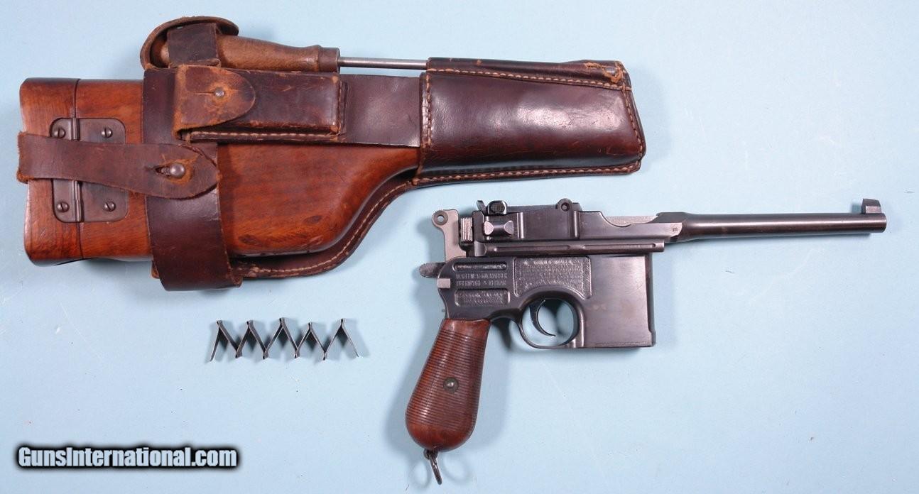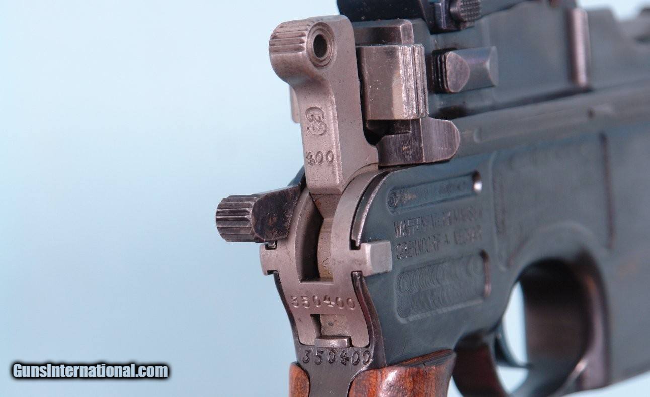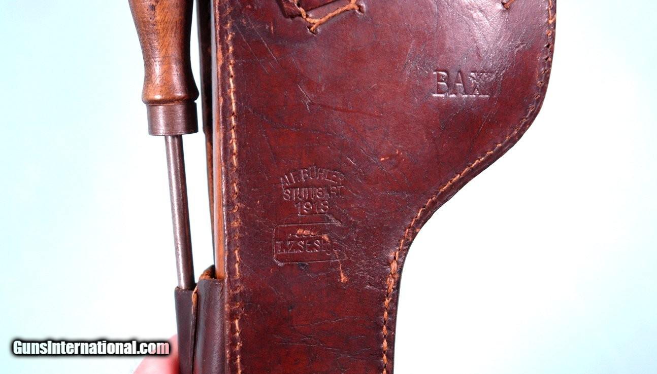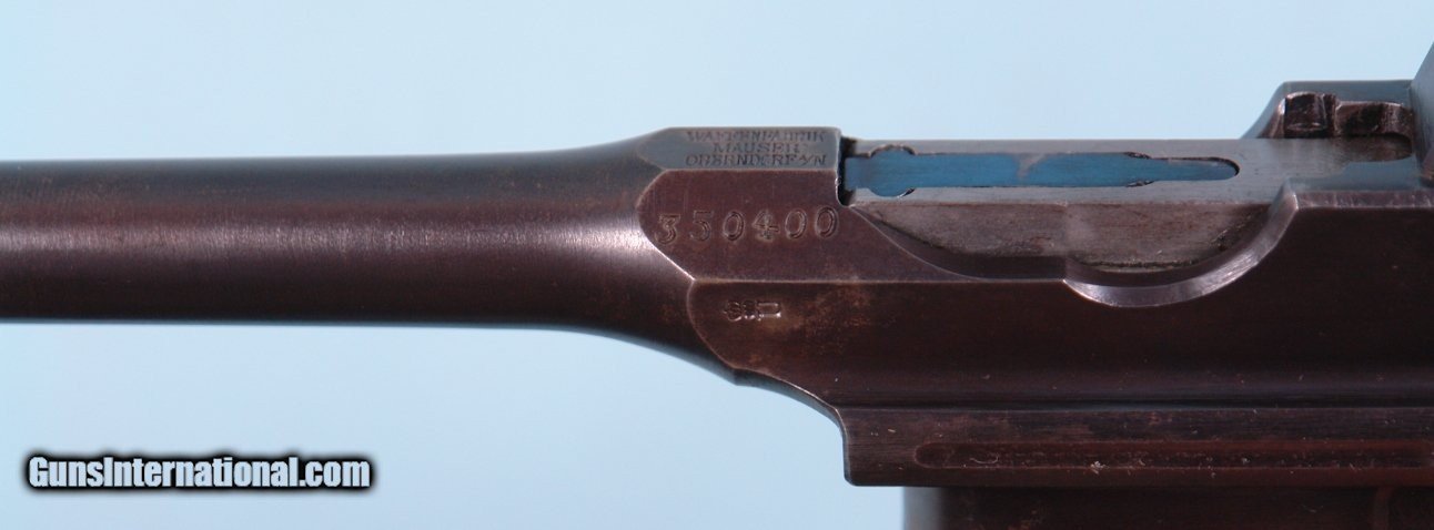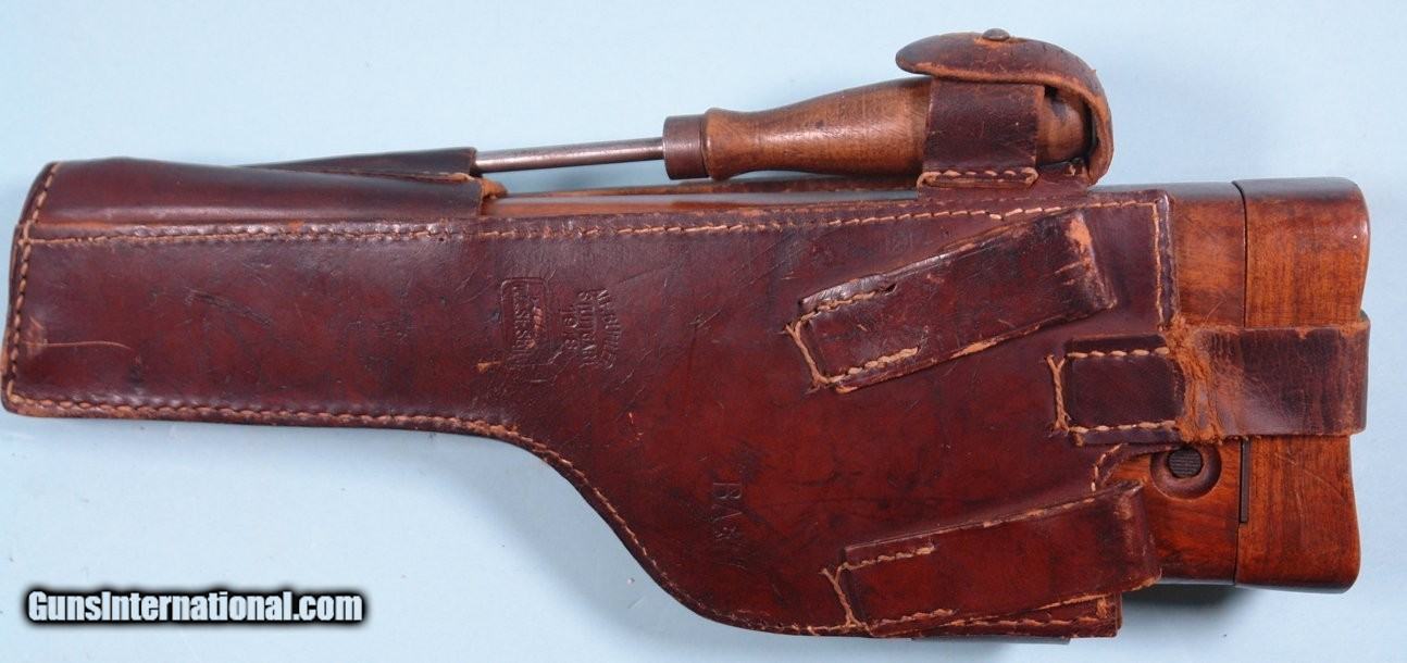 WW1 WWI IMPERIAL GERMAN MAUSER C96 7.63X25 BROOMHANDLE PISTOL 4TH ARTILLERY REGT. MARKED WITH MATCHING STOCK & HARNESS CA. 1918.