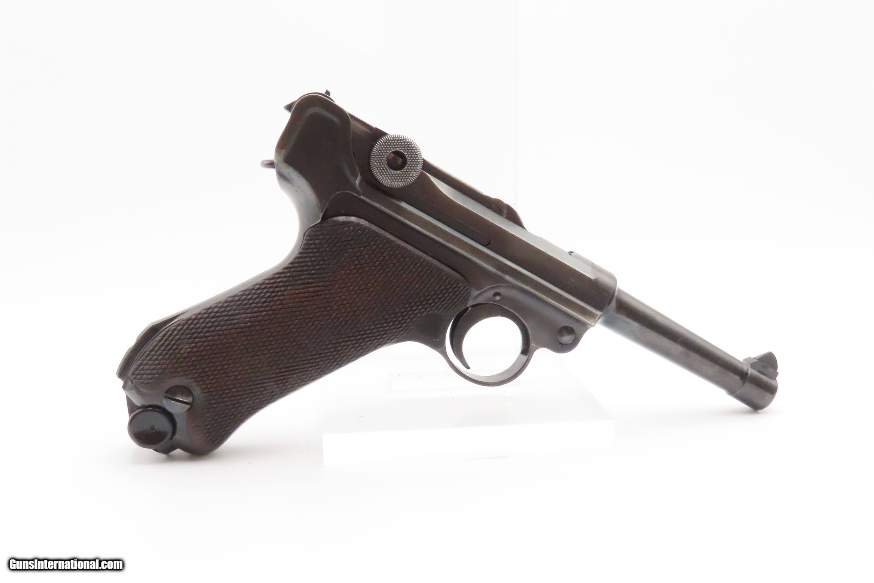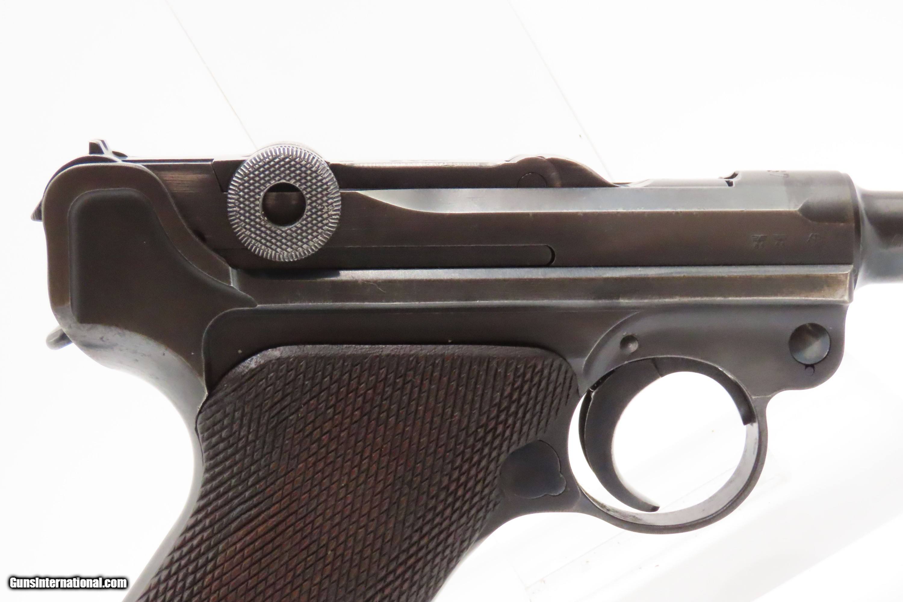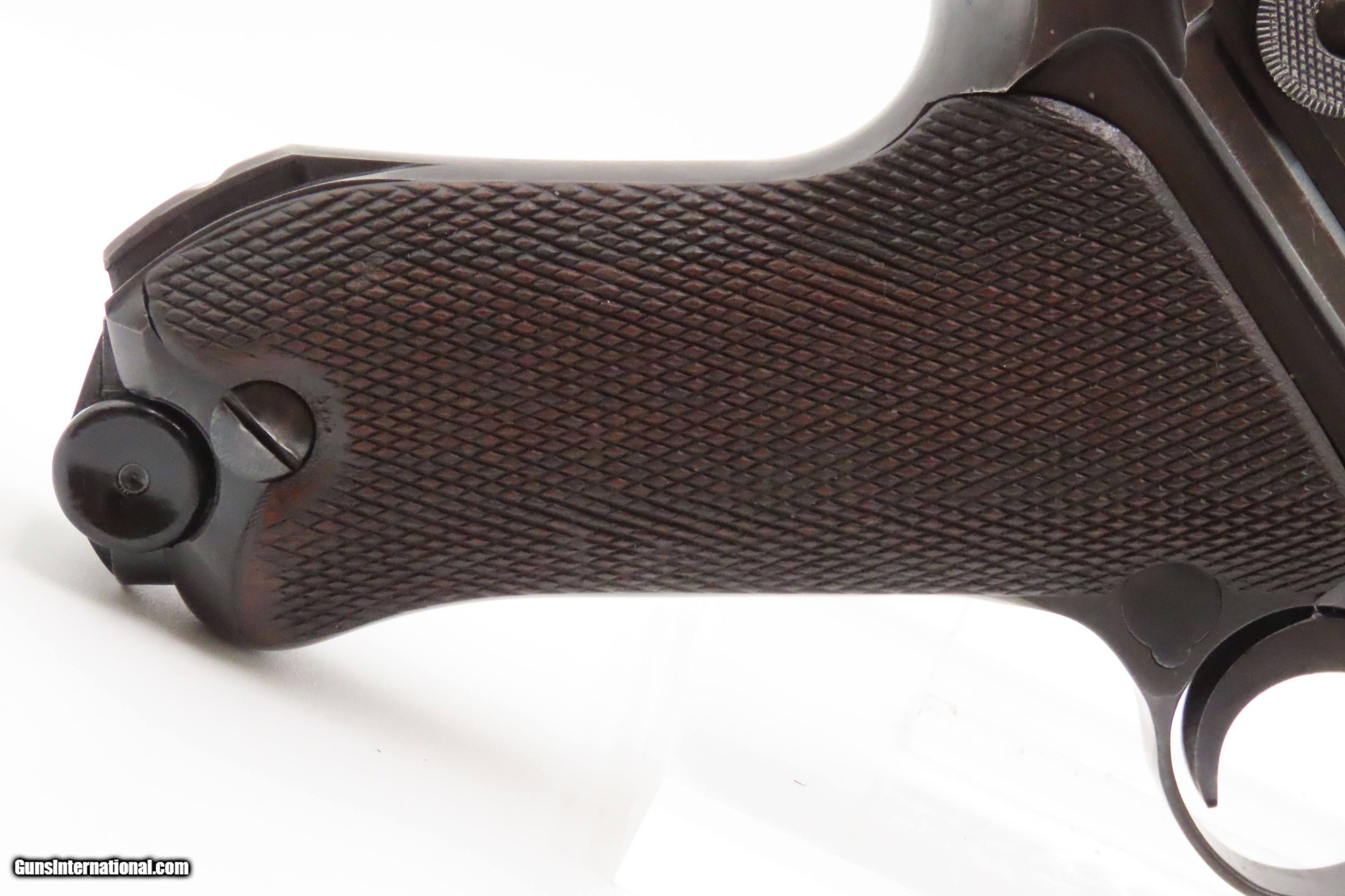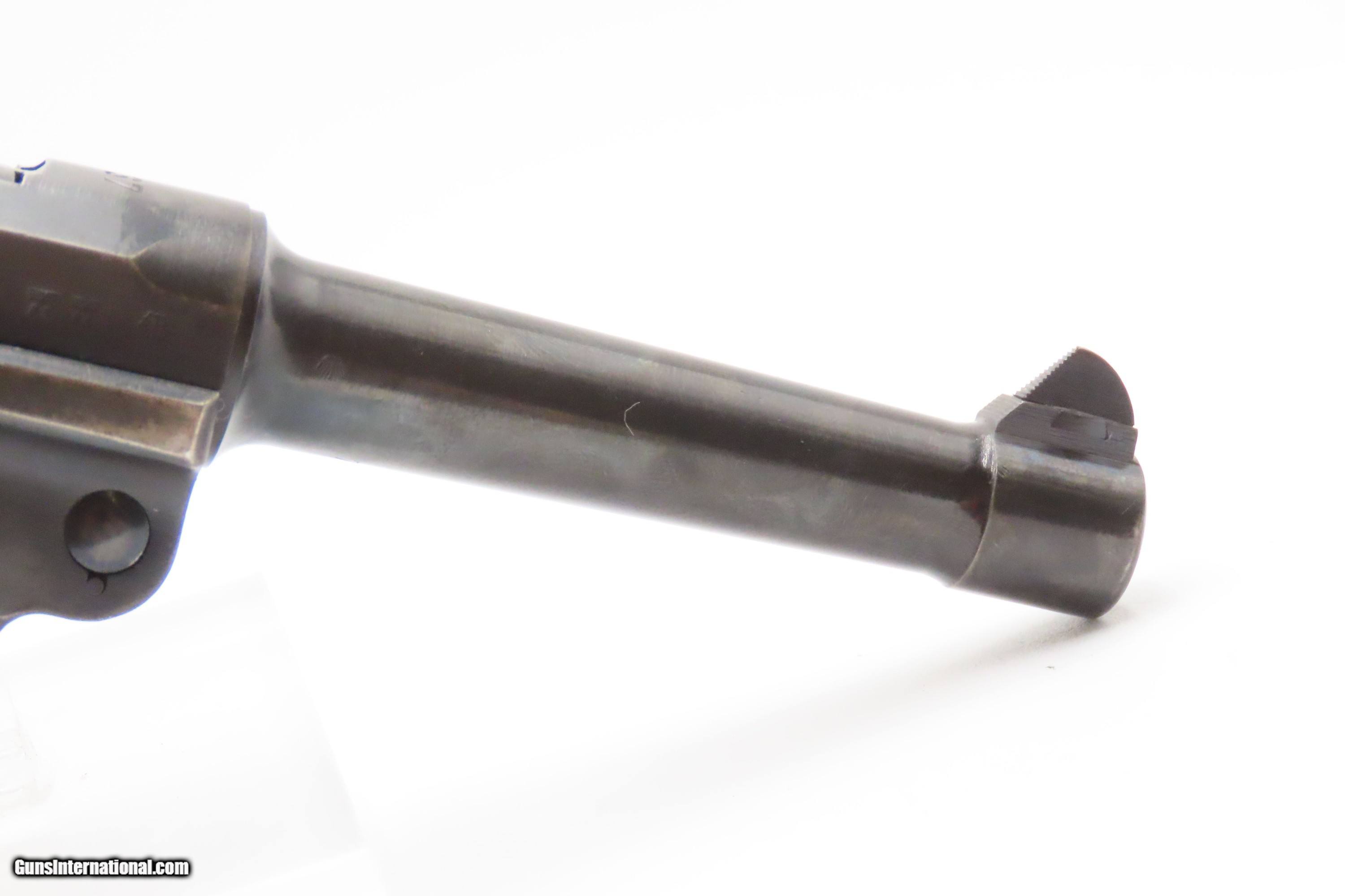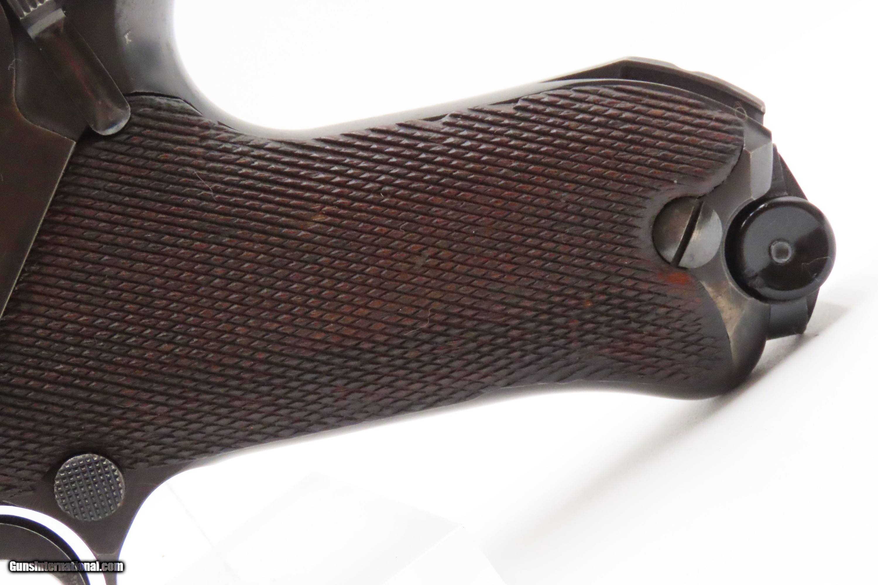 Description: “1937” Date s/42 Code Luger P.08 Pistol C&R World War II GERMAN MAUSER DROOP EAGLE/63 Proofed THIRD REICH 9mm Semi-Auto Here we present a C&R German s/42 Code 1937 Date Mauser P.08 Luger, made in 1937. Manufactured by Mauser in 1937, using a combination “S/42” code on top of the receiver ring. Introduced during the early years of the Third Reich Party's dominance of Germany, the code system was intended to obscure the scale and speed of German re-armament. Based on Hugo Borchardt’s novel design of a semi-automatic pistol, the “Luger” pistol was designed by Georg Luger, the man tasked with taking an awkward, cumbersome and expensive pistol and making it into one of the world’s most iconic firearms of all time. The Model P.08 was adopted by Germany and was used through both WWI and WWII. This piece is “1937” dated on the barrel and has the Mauser company’s coded designation of “s/42”. Interestingly, since the terms of the Treaty of Versailles only allowed the German Simson & Company to produce any of the few small arms granted Germany after World War I, arms production was done secretly at Mauser, among others. This example has the Droop Eagle/63 military proof mark along with other Third Reich inspection marks. The overall condition is very good. Refinished long ago. The action is excellent. The bore is bright with sharp rifling. The grips are solid. Numbers match throughout with the exception of the period correct unnumbered magazine. A great piece made just before the war! Own the original! This firearm is classified as a Curio & Relic. Barrel is 4 inches. Caliber: 9x19mm Luger Overall condition as seen in photos. Very Fast. Very Safe. FREE SHIPPING. Will need to be sent to your local FFL or C&R licensee. This firearm is classified as a Curio & Relic. Guaranteed AUTHENTIC & Includes CERTIFICATE OF AUTHENTICITY. ancestryguns $2500 #247037 SOLD Curio/Relic: Yes |
