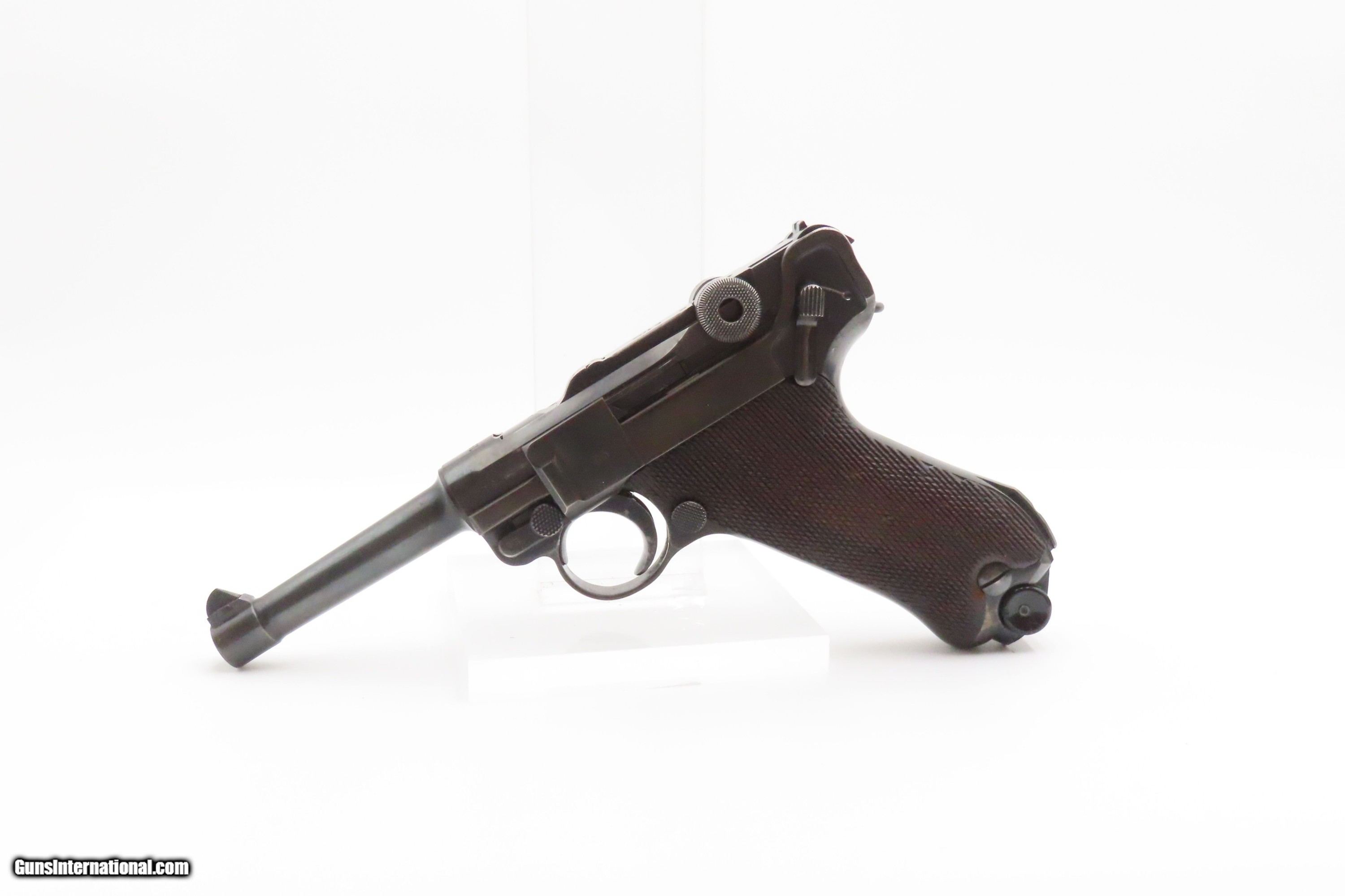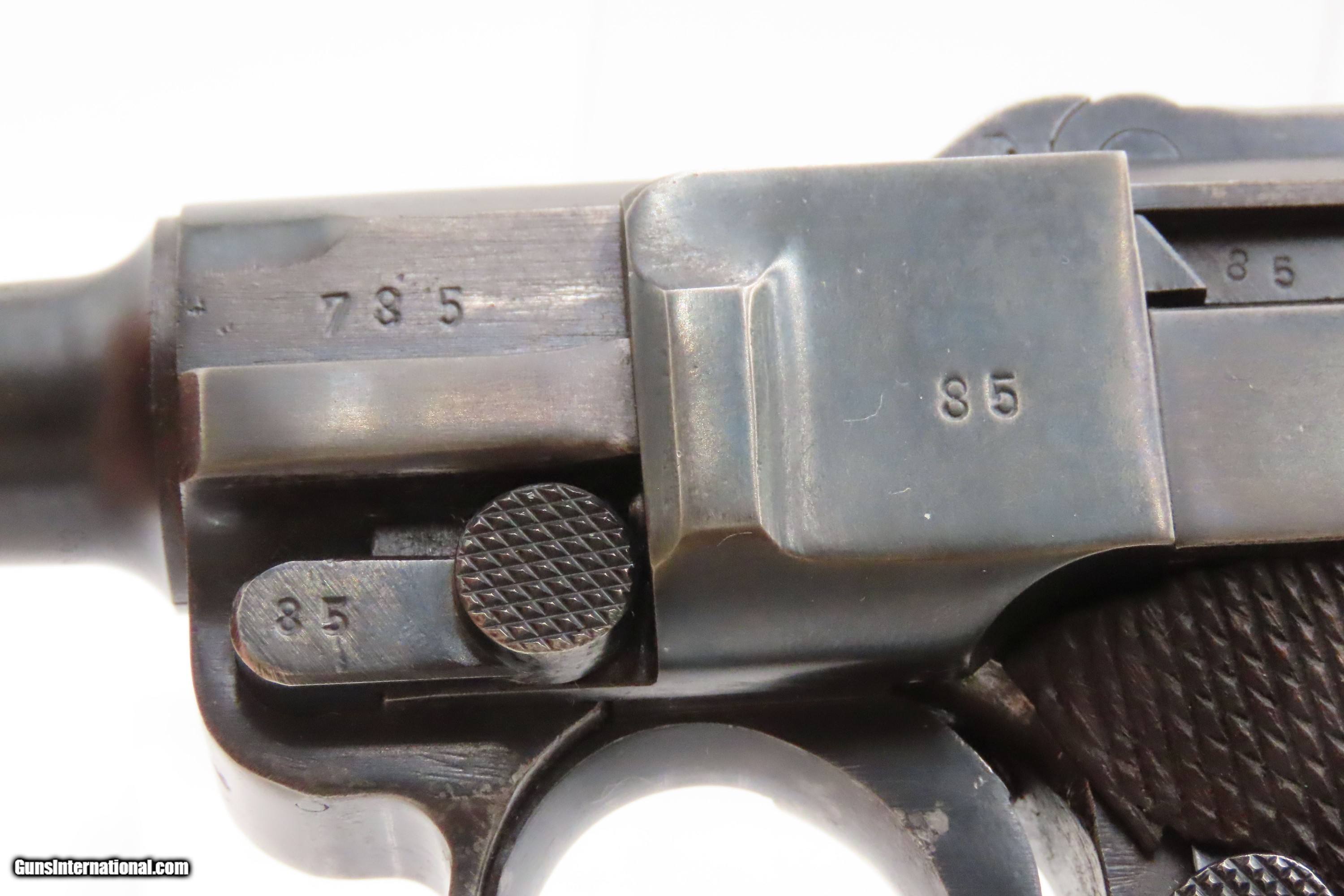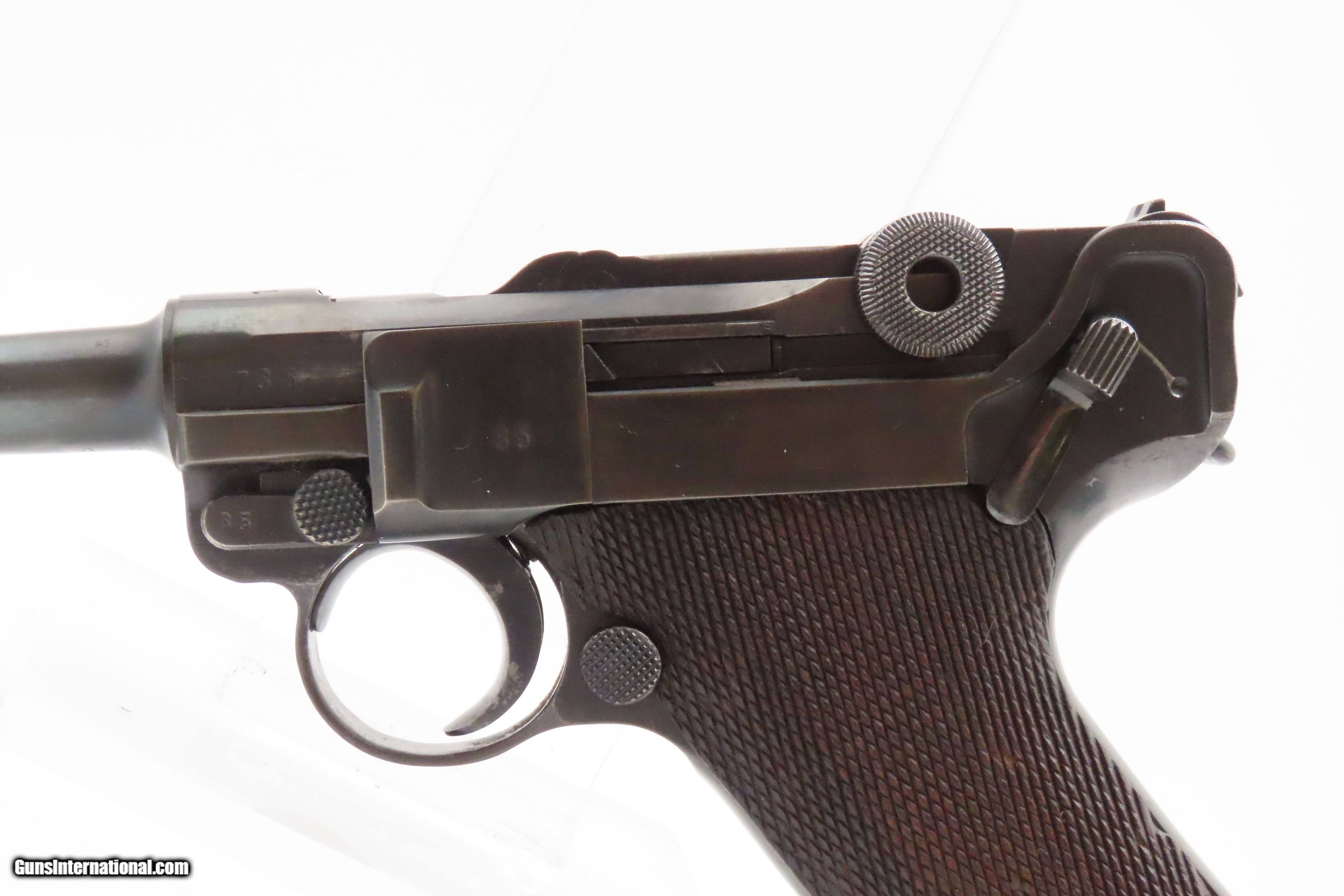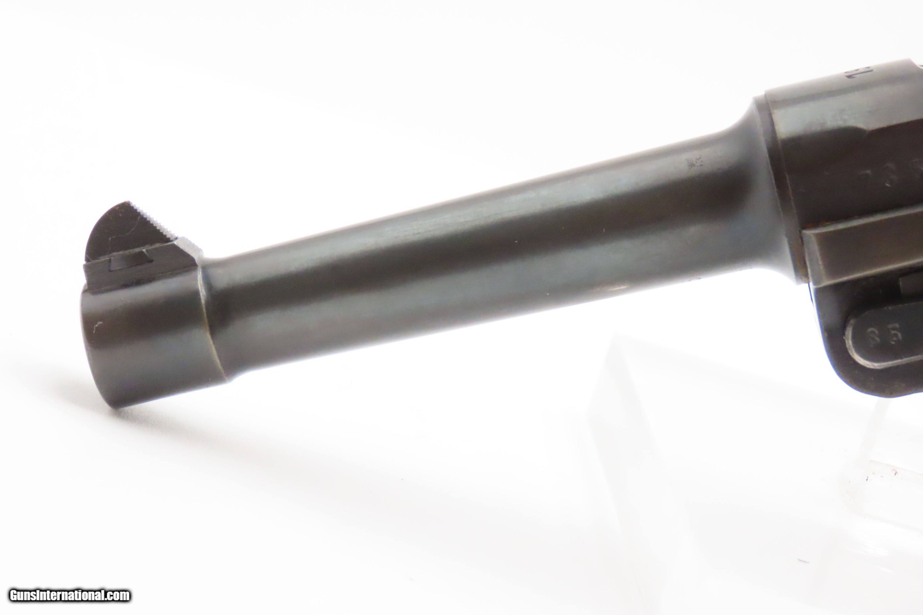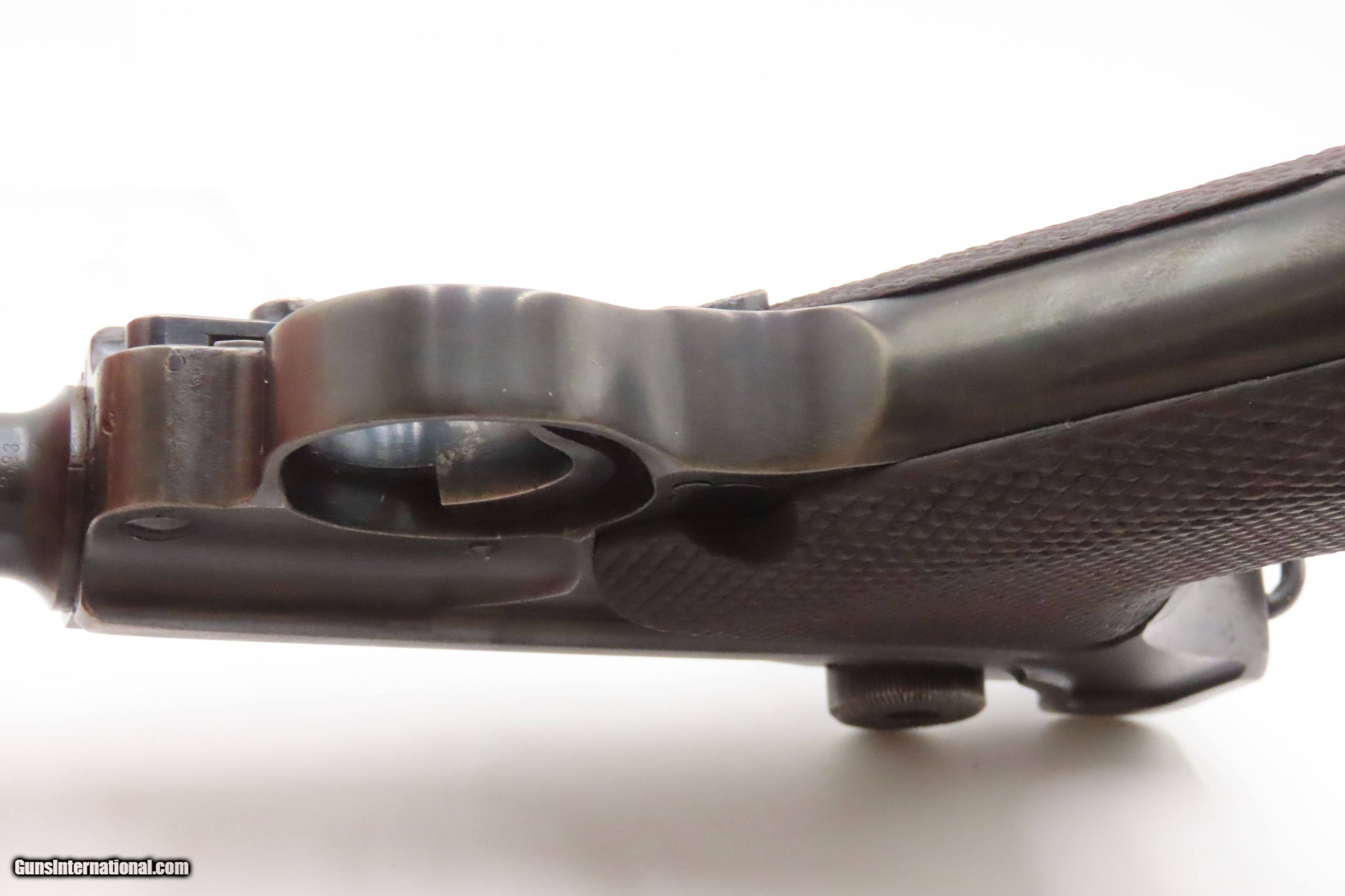 Description: “1937” Date s/42 Code Luger P.08 Pistol C&R World War II GERMAN MAUSER DROOP EAGLE/63 Proofed THIRD REICH 9mm Semi-Auto Here we present a C&R German s/42 Code 1937 Date Mauser P.08 Luger, made in 1937. Manufactured by Mauser in 1937, using a combination “S/42” code on top of the receiver ring. Introduced during the early years of the Third Reich Party's dominance of Germany, the code system was intended to obscure the scale and speed of German re-armament. Based on Hugo Borchardt’s novel design of a semi-automatic pistol, the “Luger” pistol was designed by Georg Luger, the man tasked with taking an awkward, cumbersome and expensive pistol and making it into one of the world’s most iconic firearms of all time. The Model P.08 was adopted by Germany and was used through both WWI and WWII. This piece is “1937” dated on the barrel and has the Mauser company’s coded designation of “s/42”. Interestingly, since the terms of the Treaty of Versailles only allowed the German Simson & Company to produce any of the few small arms granted Germany after World War I, arms production was done secretly at Mauser, among others. This example has the Droop Eagle/63 military proof mark along with other Third Reich inspection marks. The overall condition is very good. Refinished long ago. The action is excellent. The bore is bright with sharp rifling. The grips are solid. Numbers match throughout with the exception of the period correct unnumbered magazine. A great piece made just before the war! Own the original! This firearm is classified as a Curio & Relic. Barrel is 4 inches. Caliber: 9x19mm Luger Overall condition as seen in photos. Very Fast. Very Safe. FREE SHIPPING. Will need to be sent to your local FFL or C&R licensee. This firearm is classified as a Curio & Relic. Guaranteed AUTHENTIC & Includes CERTIFICATE OF AUTHENTICITY. ancestryguns $2500 #247037 SOLD Curio/Relic: Yes |