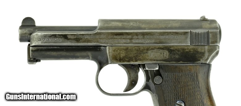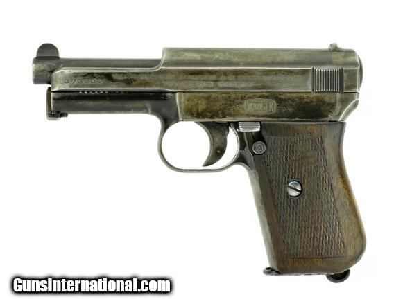 Description: Mauser 1914 7.65mm caliber pistol. Pre war commercial pistol. Metal has a gray patina. Bore is very good with strong rifling. Good overall condition.