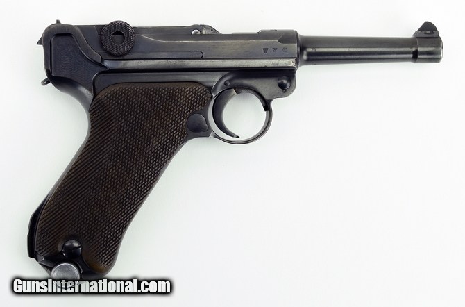 Description: Mauser S/42 Luger 9mm caliber pistol. 1937 date S/42 Luger by Mauser. All matching numbers except magazine which is only 3 digits off. Gun has an excellent bore and has approximately 98% original blue. Barrel has some very tiny pits on the left side near the muzzle. Not very noticeable. Grips are very good plus. This is a very fine WWII Mauser Luger.