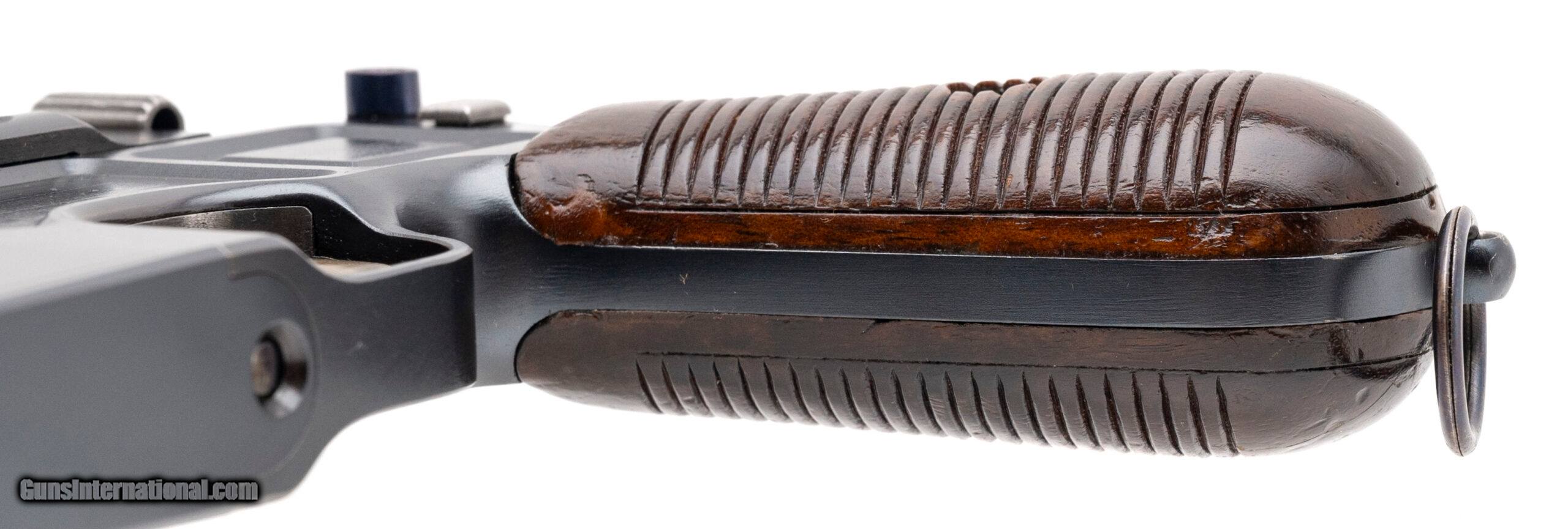 Description: "Serial number 10305. Made in 1897. 7.63 Mauser caliber with a 4.75" barrel. This gun is in excellent condition as professionally restored. The grips have a coat of varnish. This gun is a short barrel variation of the conehammmer which has a fixed rear sight instead of the adjustable sights. Very scarce gun! Price: $7,950.00 Contact Seller |