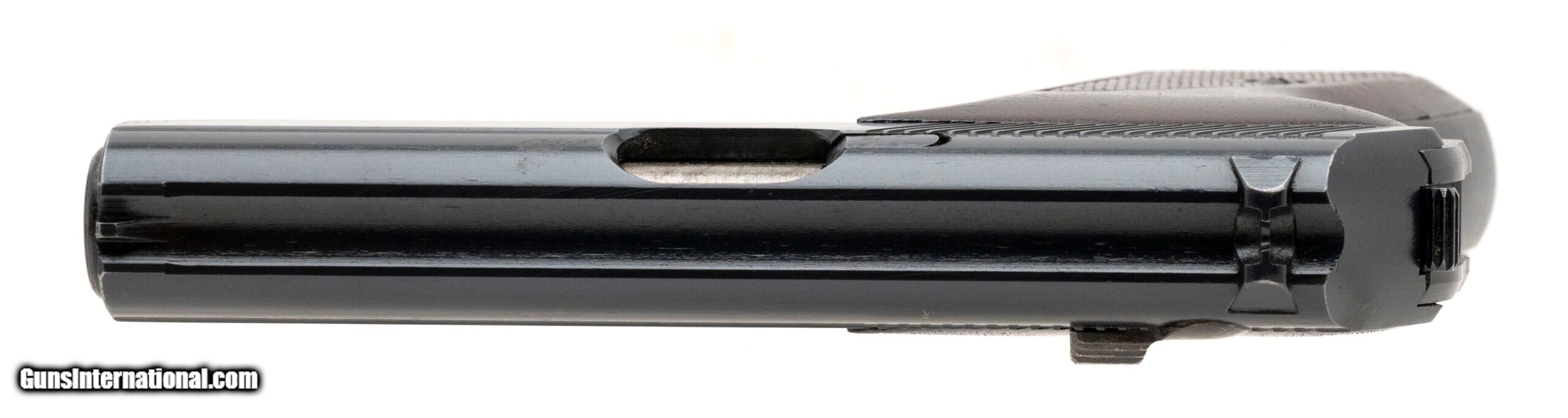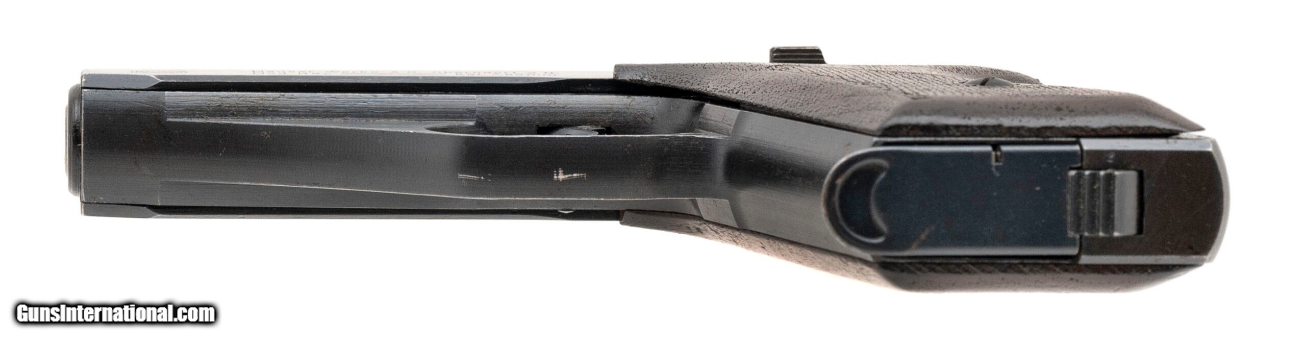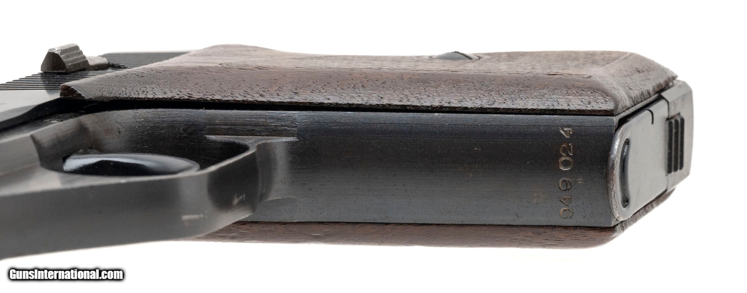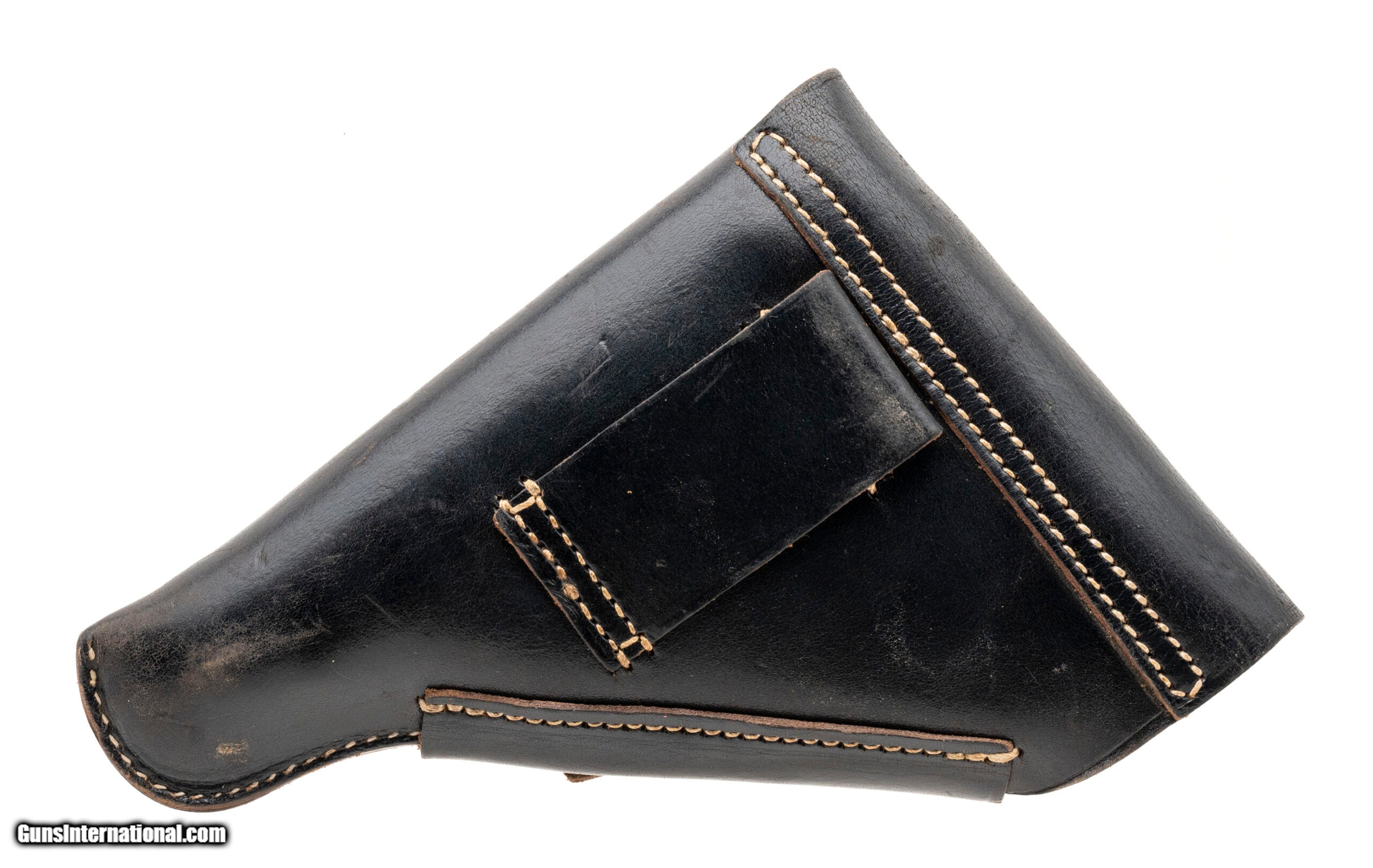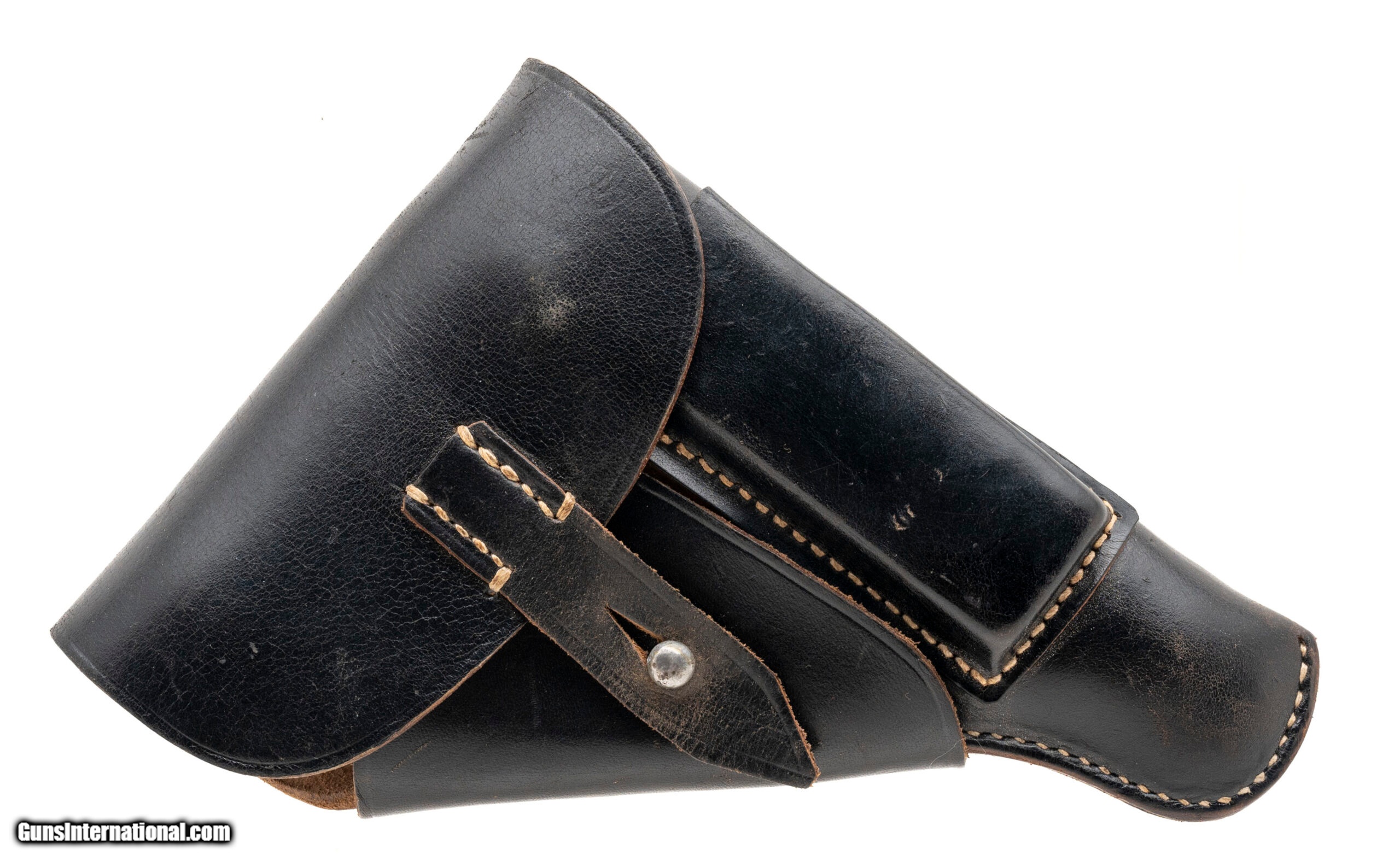 Description: "SN: 949024. Made in 1945, .32 ACP with a 3.4-inch barrel. Original factory blued finish remains in excellent condition and the bore is bright with strong rifling. A “WaA135" acceptance stamp can be seen on the left side of the trigger guard indicating that this was issued to either German police or military forces during the Second World War. Comes with original checkered wood grips in excellent condition, a 7-round magazine and a black leather flap holster. SOLD Curio/Relic: Yes |