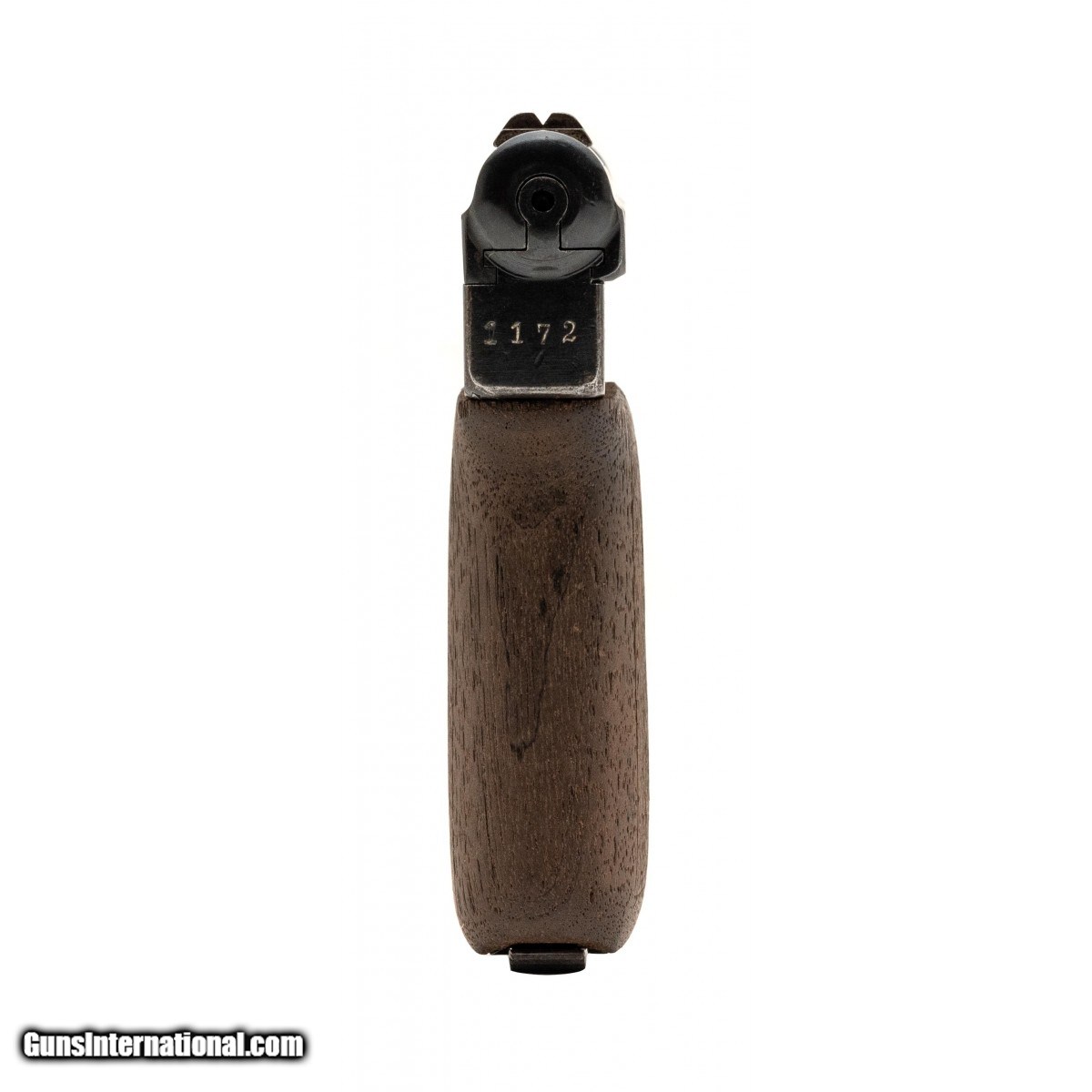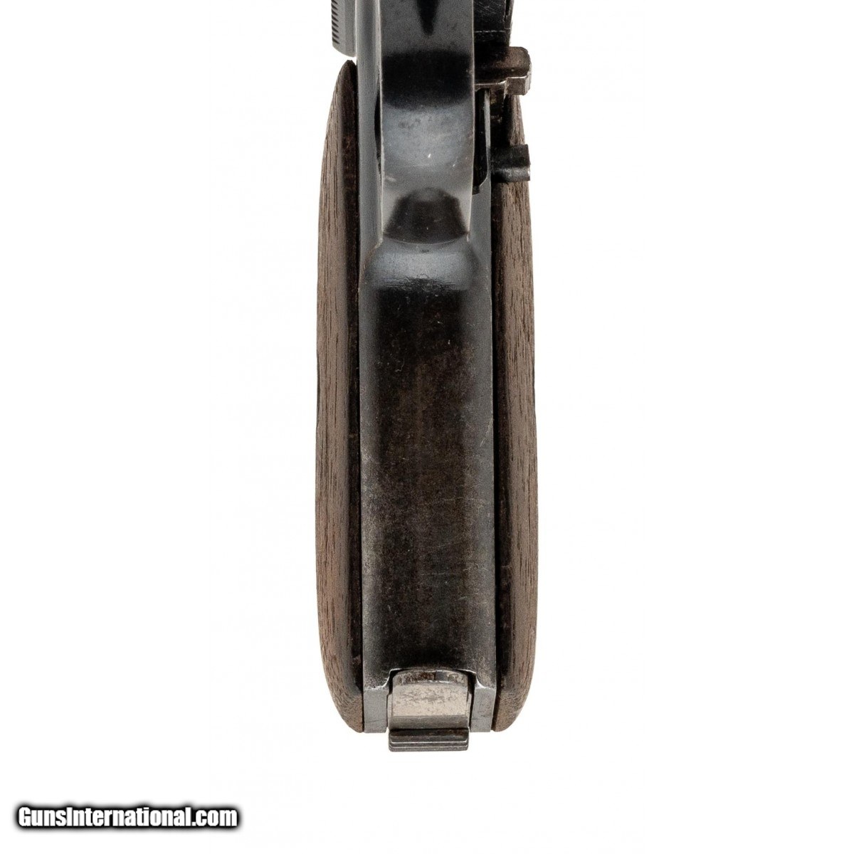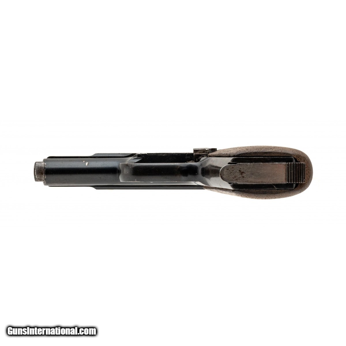Description: " SN:1172. Circa 1900s, .25 ACP, with a 3"" barrel. Bore is very good. German made semi automatic pocket pistol. Has 75% original finish with engravings of ""Enero 1920"" on left side and ""Ph Recke April 1911""on right side. Wood grips are good with wear. Does have missing grip screws and slide will not come off but will cock and fire. Overall in good condition. SOLD |