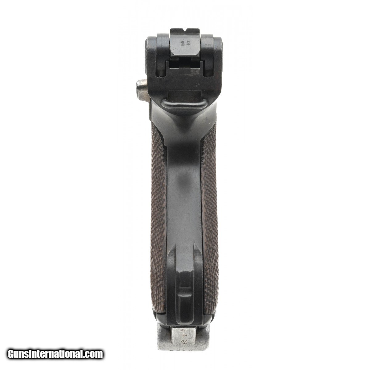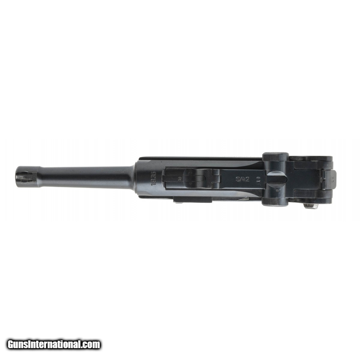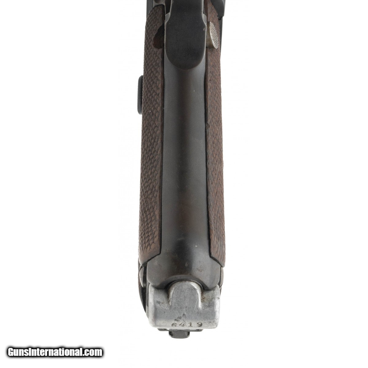 Description: "Serial number 6419N. Made in 1936. 9mm caliber with a 4" barrel. This gun is in excellent condition with almost all of the original blue and approximately 50% of the straw color on the small parts. Grips are very good. This gun is all matching including the magazine which is very hard to find. SOLD Curio/Relic: Yes |