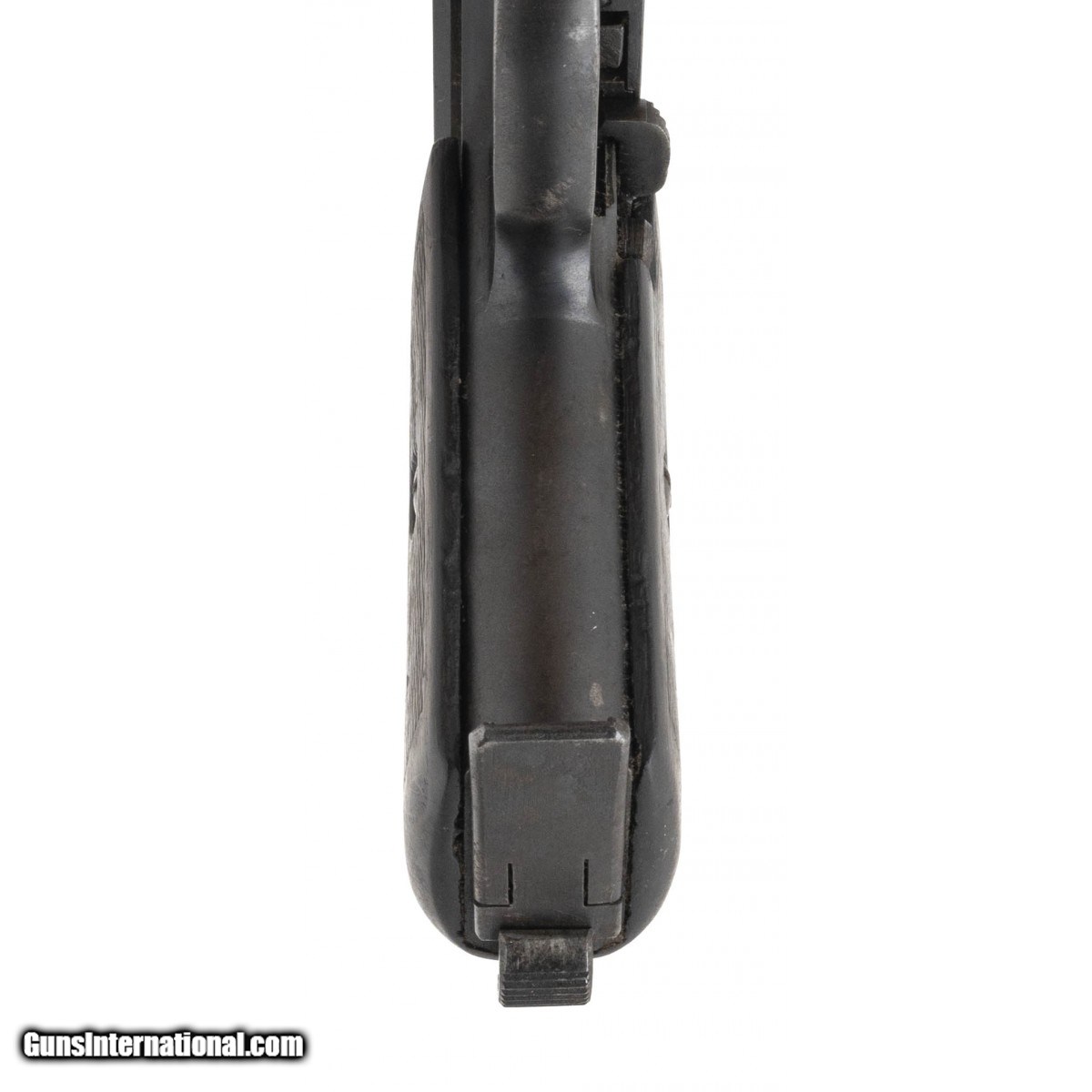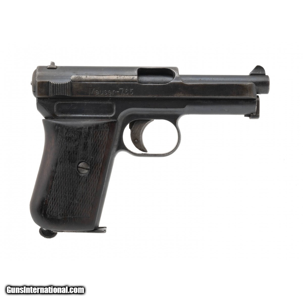Description: " Serial No. 245900, circa 1919-1921, .32ACP, 3.4"" round barrel.Post War Mauser semi-auto pistol, finish is a grey patina with scattered surface oxidation visible throughout. Bore is good with frosting visible, rifling remains strong. Brown checkered grips are worn with scratches, nicks and dings visible. Action functions correctly. Consignment SOLD Curio/Relic: Yes |