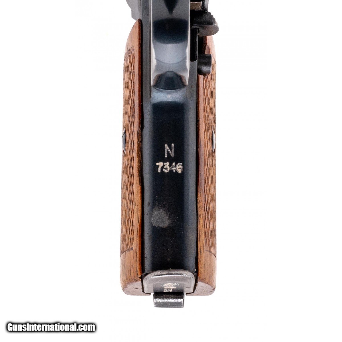 Description: " Serial No. 584170, made in 1940, 7.65mm, 3.5"" round barrel. 4th variation Model with the left side marked with ""Eagle/M"", approximately 95% blue remains. Serial numbers are matching. Unit mark is stamped on the inside grip strap and is matching to the magazine. Bore is excellent, comes with correct Eagle/M marked holster and spare magazine. Pistol would be hard to improve on! Consignment SOLD Curio/Relic: Yes |