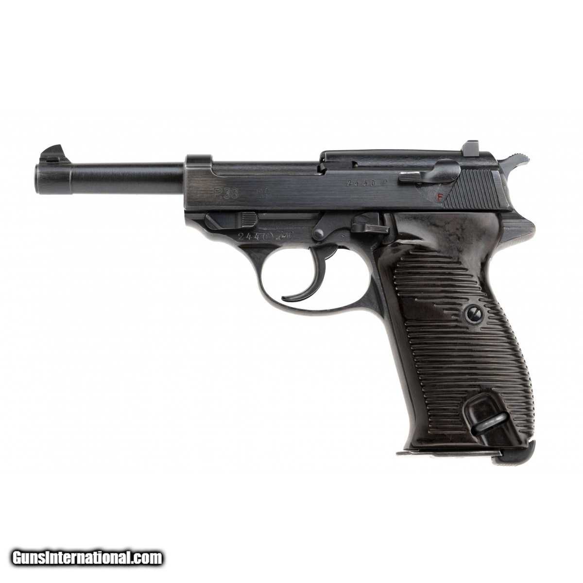 German WWII military P38. Slide is marked ""BYF 43"". Serial numbers are matching. Bore is excellent. Magazine is marked P.38 on left side and eagle 358 on spine. has 99% of its original blue. Grips are in excellent condition. Action works perfectly. Excellent overall condition.