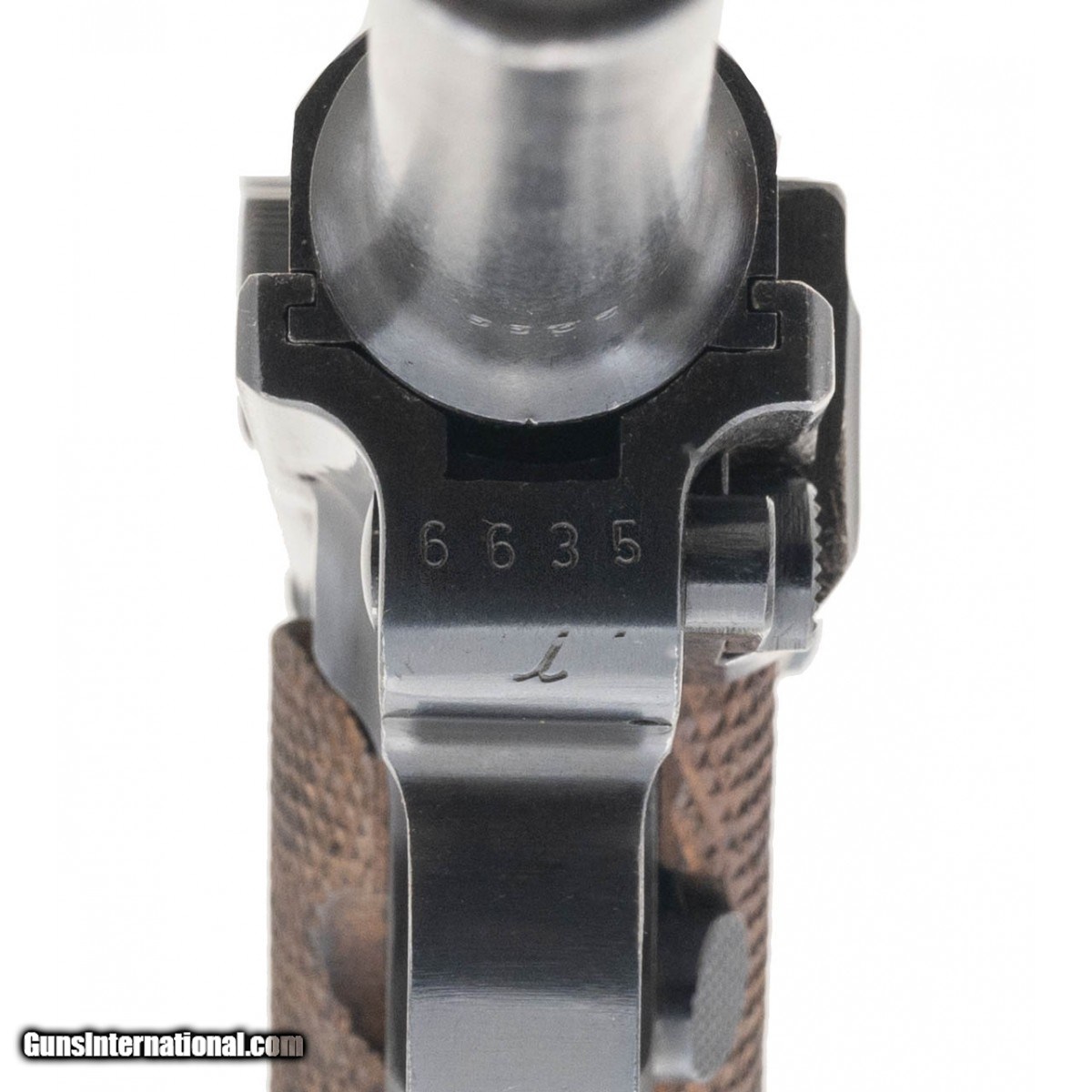 Description: " SN:6635i. BYF code 1942 dated Luger.. Bore is excellent. Serial numbers are matching. Magazine has been renumbered to match. Near excellent overall condition. A great example. SOLD Curio/Relic: Yes |