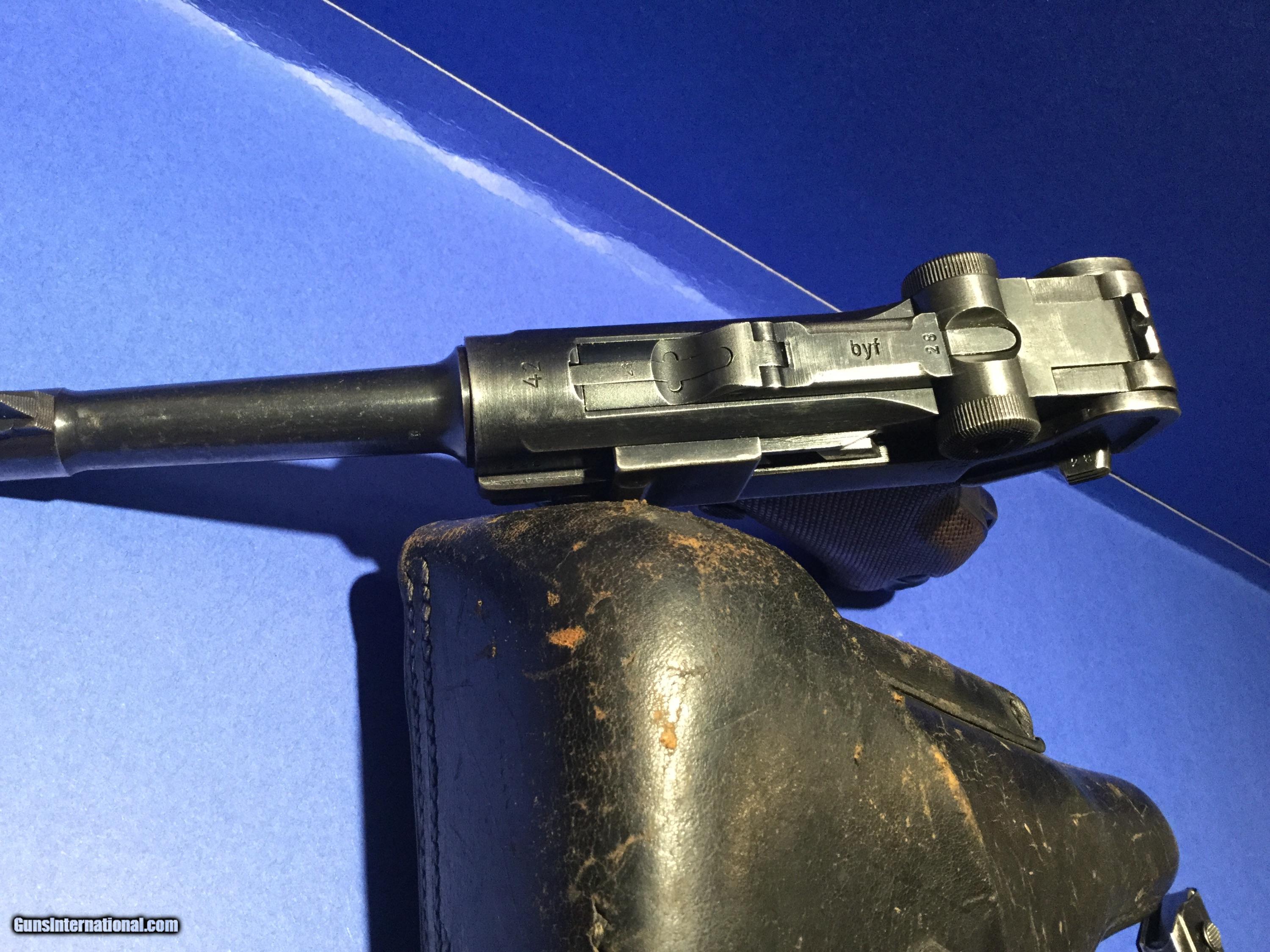 Description: This is a 42 BYF Luger made by Musuer .All Numbers matching Luger with Holster and two Original mags and screw Driver tool. This Luger has been in a German collection for many years please look at all pictures . Questions call Richard at 406-407-0698 SOLD Curio/Relic: Yes Manufacturer: BYF Mauser Model: PO8 Luger 9mm Serial Number: 8228 Caliber Info: 9mm |