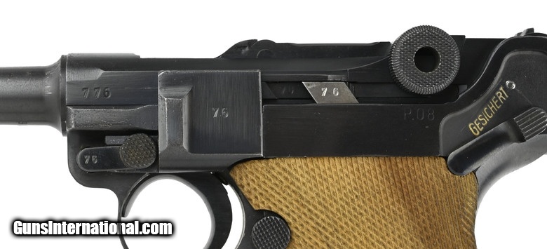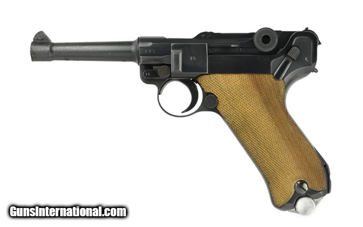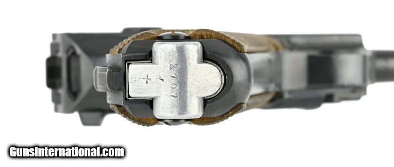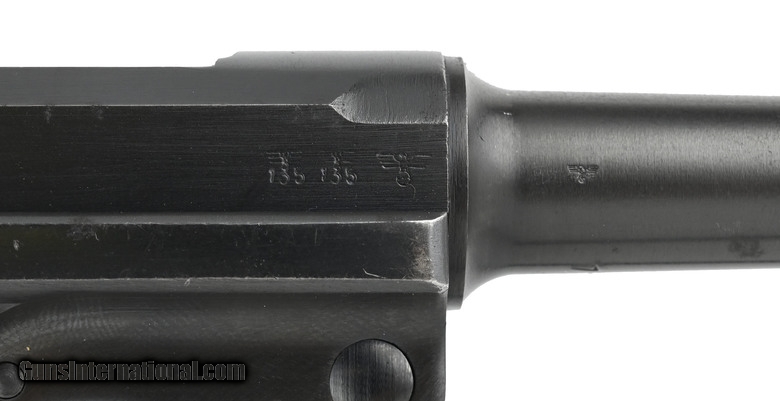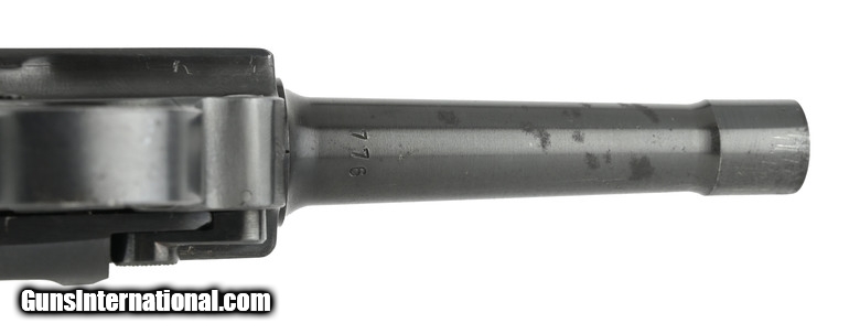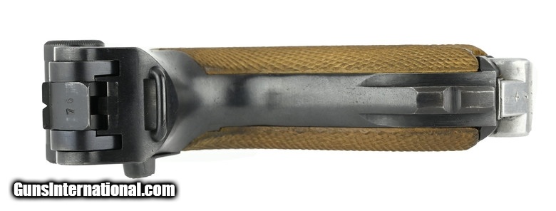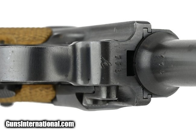 Description: ByF42 Mauser Luger 9mm caliber pistol. BYF code 1942 dated 908 Luger, has been refinished. Bore is mint. Serial numbers are matching, except for the mag. Grips are unnumbered. Very good plus overall condition.