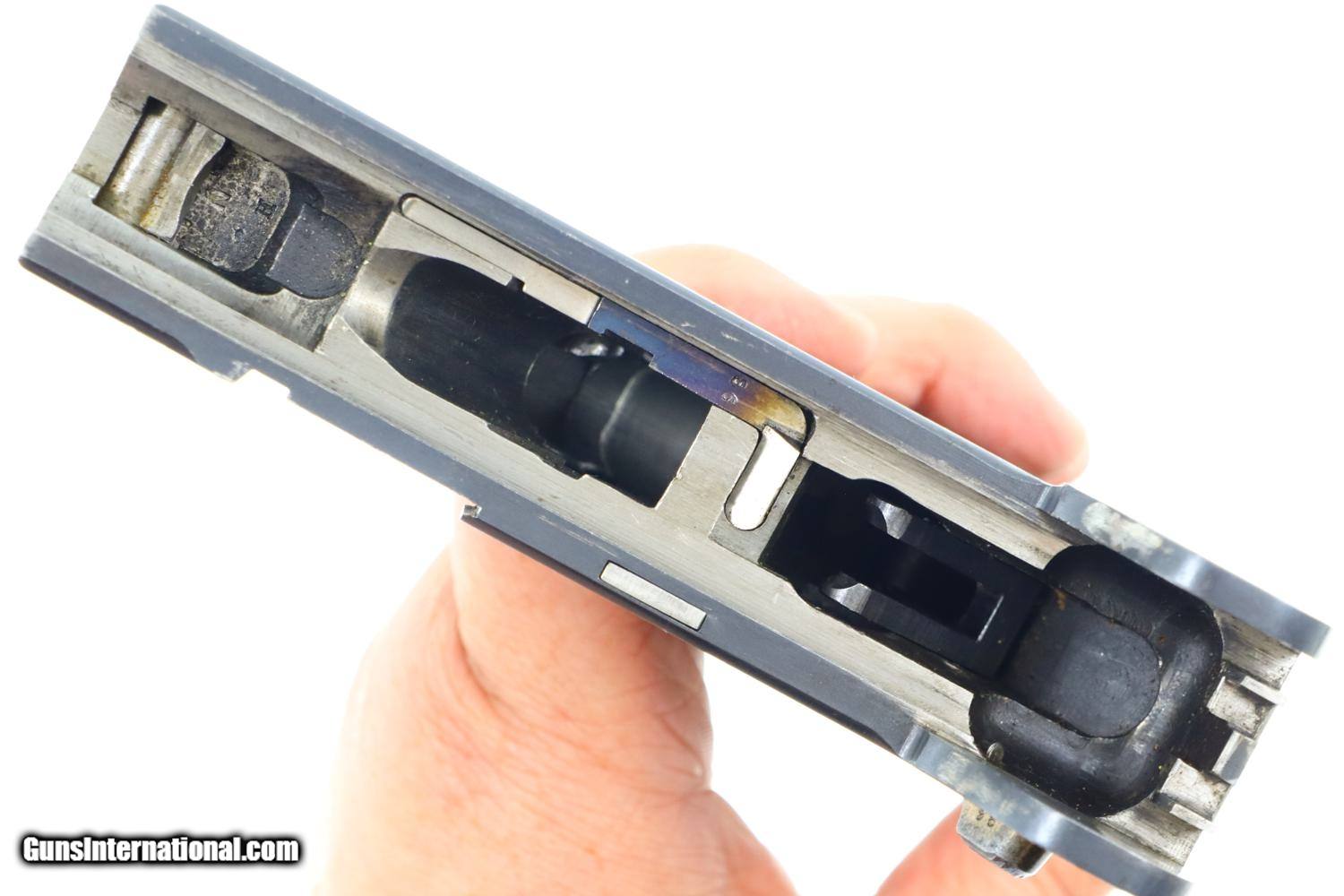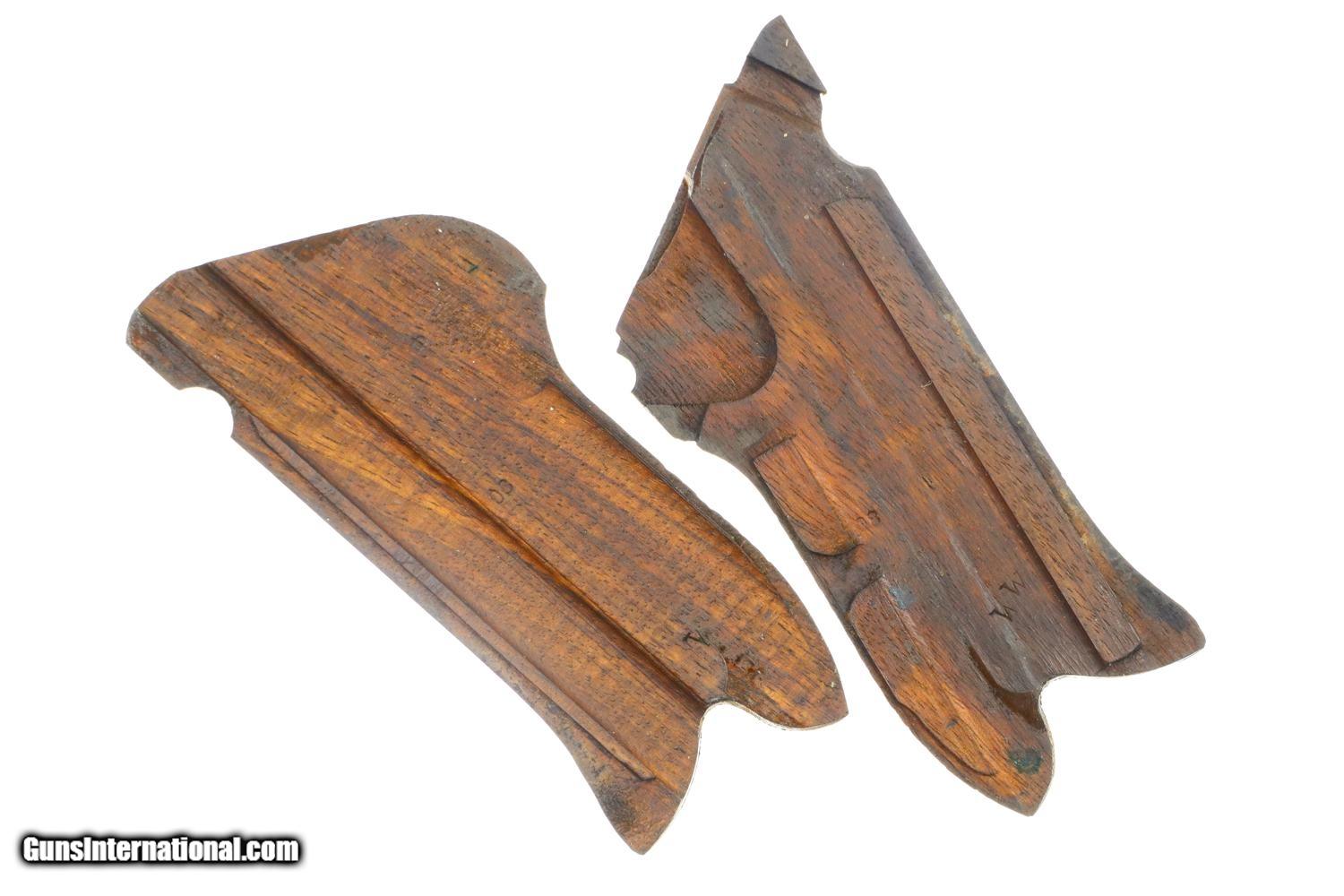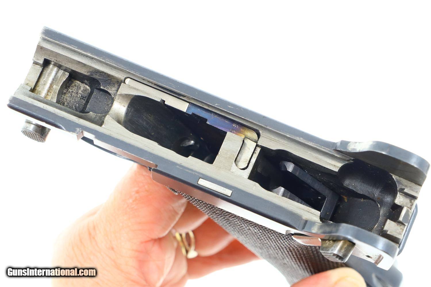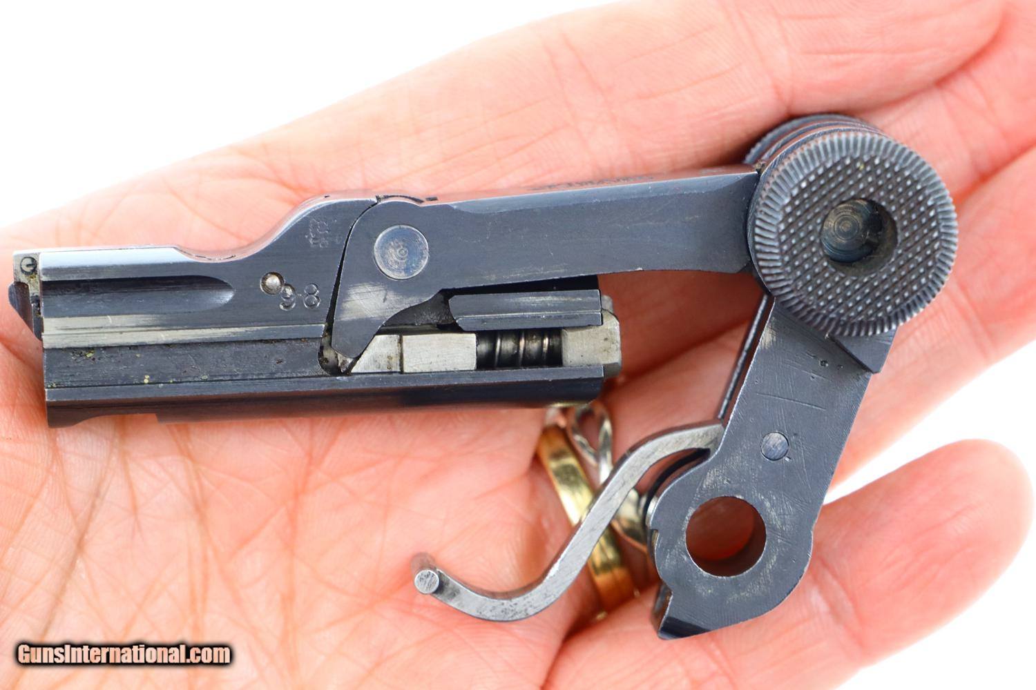 Description: Synopsis: Scarce DWM, 1915 Artillery Luger, German Military WWI, correct magazine. Description: 1915 was the second year that DWM made Artillery Lugers. All the early pistols, as per this example, fitted with fine tune front and rear sights. This standard configuration Artillery Luger from WWI, caliber 9mmP, has an 8 inch barrel and a rear sight fitted the usual 1-8 stops for cursor elevation. Chamber dated 1915 with intertwined DWM on front toggle link. Usual proofs on right side of barrel extention. Full serial number on forward frame, under barrel, and left side of barrel extention. Last two digits on all usual small parts. All matching, including the grips, except the magazine that has a correct but unmarked walnut plug. Condition: VG with sharp edge wear and spotting, especially on the barrel, as one would expect for a pistol made and used throughout most of WWI. Comparable condition straw, largely faded, that shows no evidence of enhancement. Dark grips, with slightly blunted checkering, the left panel missing the usual small chip just below the safety lever. Near excellent magazine. Near mirror bore. Perfect manual mechanics. A very nice and original DWM Artillery Luger from early WWI! ~~Insured shipping fee of $75; most packages shipped using FedEx 2nd Day.~~ SOLD Curio/Relic: Yes Manufacturer: DWM Serial Number: 7398 Caliber Info: 9mmP |