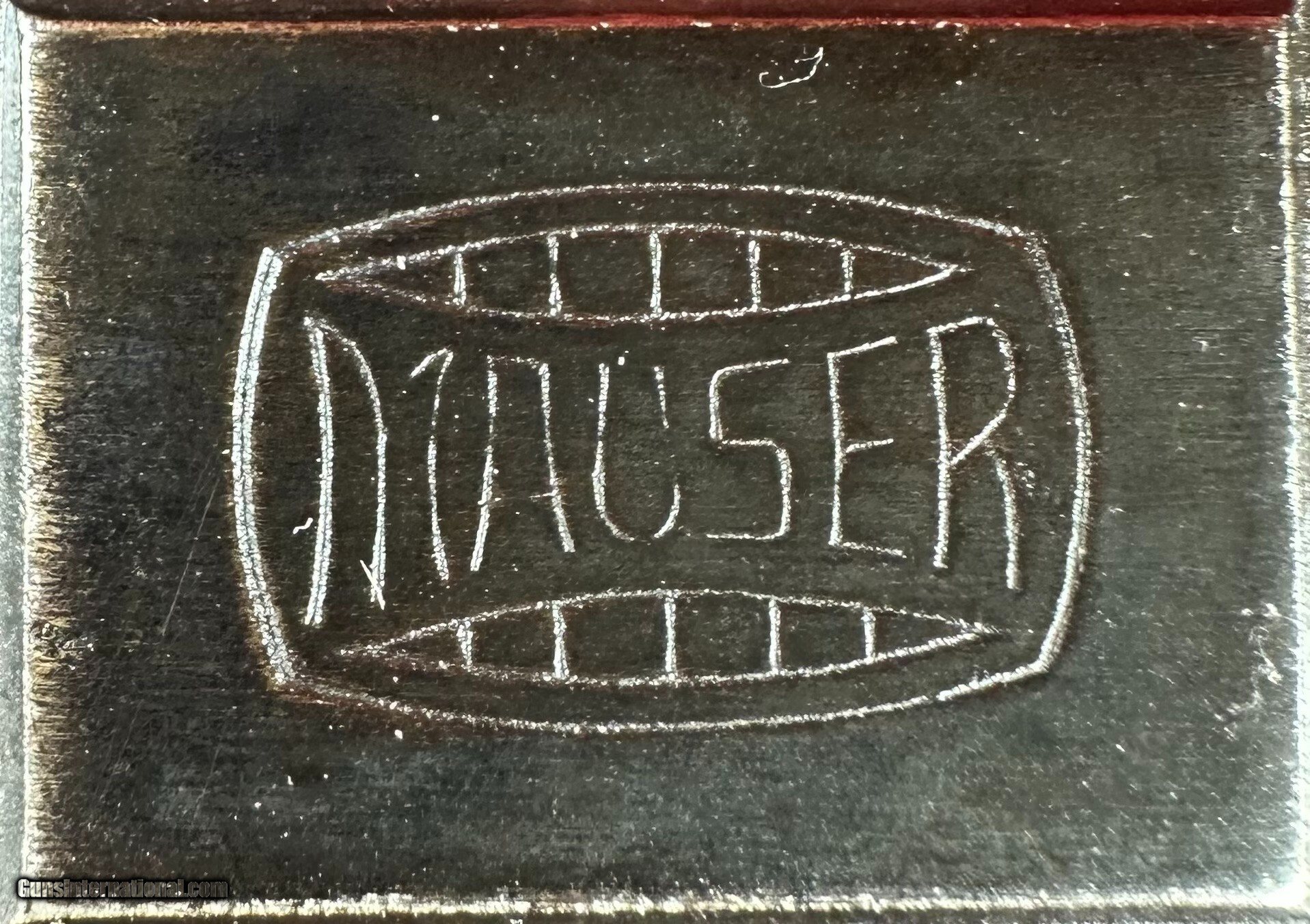 Description: The German C96 Broom handle Mauser pistol is a fascinating piece of firearms history, embodying both innovative engineering and historical significance. For sale is original, super rare Mauser C96 Red 9, chambered in 9mm Luger. Its internal 10-round magazine and unique ergonomic grip provide a balance of capacity and control. Each grip has a large red number 9. The gun is in excellent condition. Metal finish is about 98%, grips are excellent, shiny, bright bore with strong rifling. Action works the way it should. Sale includes holster / stock, harness, Mauser cleaning tool, loading strips. This gun is not NFA and doesn't require Tax stamp. It will be a great addition to any collection. Layaway and no interest payment plan are available. Handgun Caliber: 9x19mm Parabellum (9mm Luger, 9x19mm NATO) Price: $3,599.00 Shipping: $50.00 Contact Seller |
