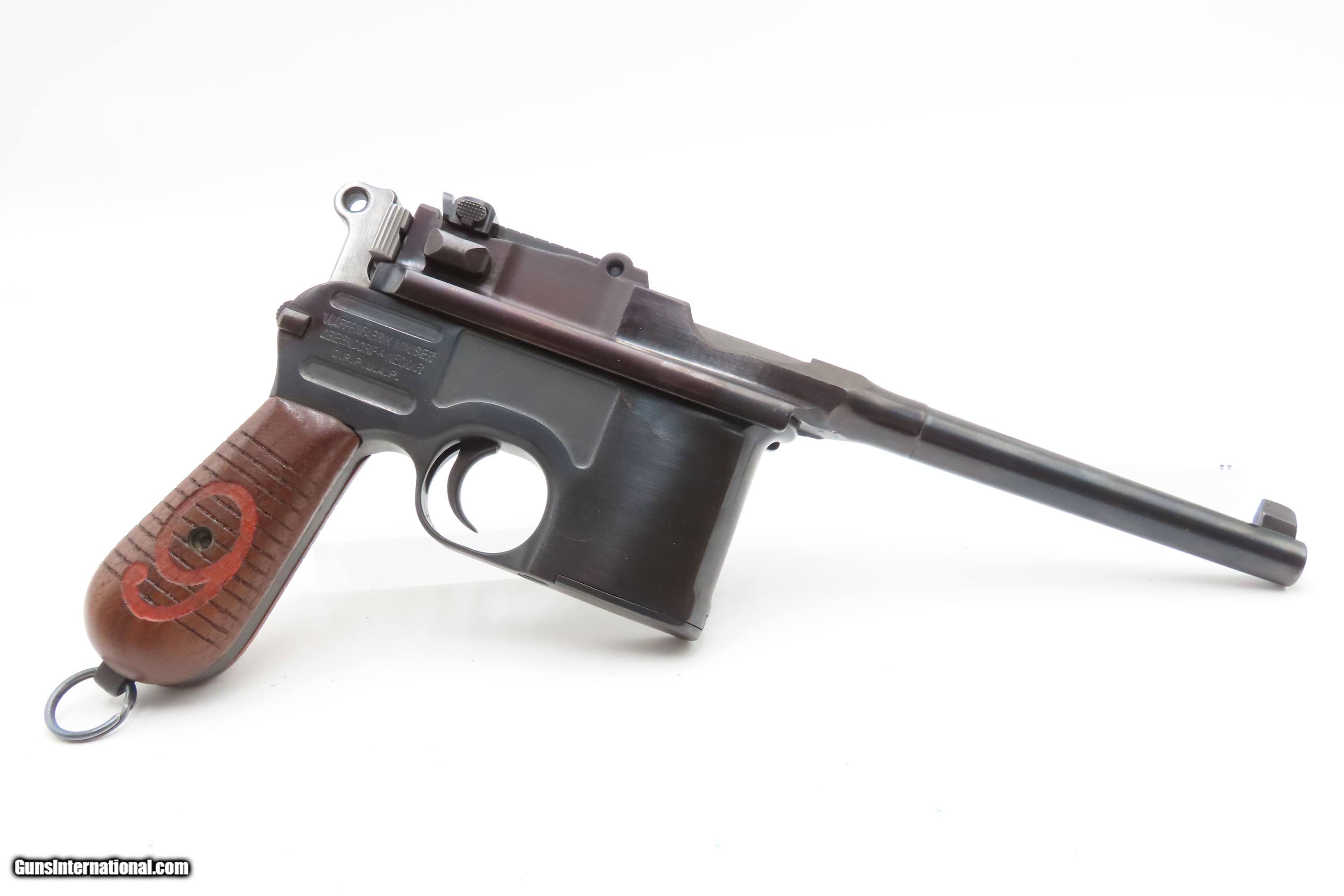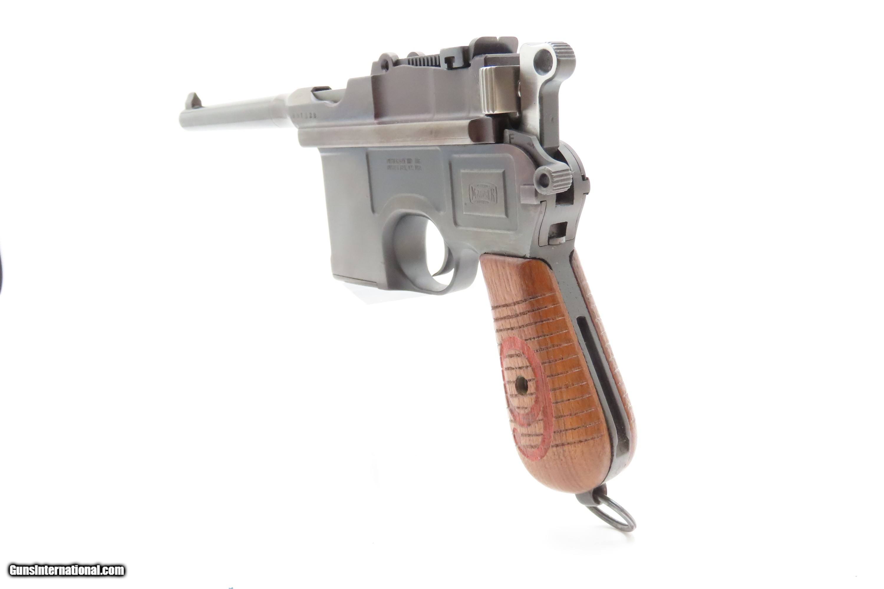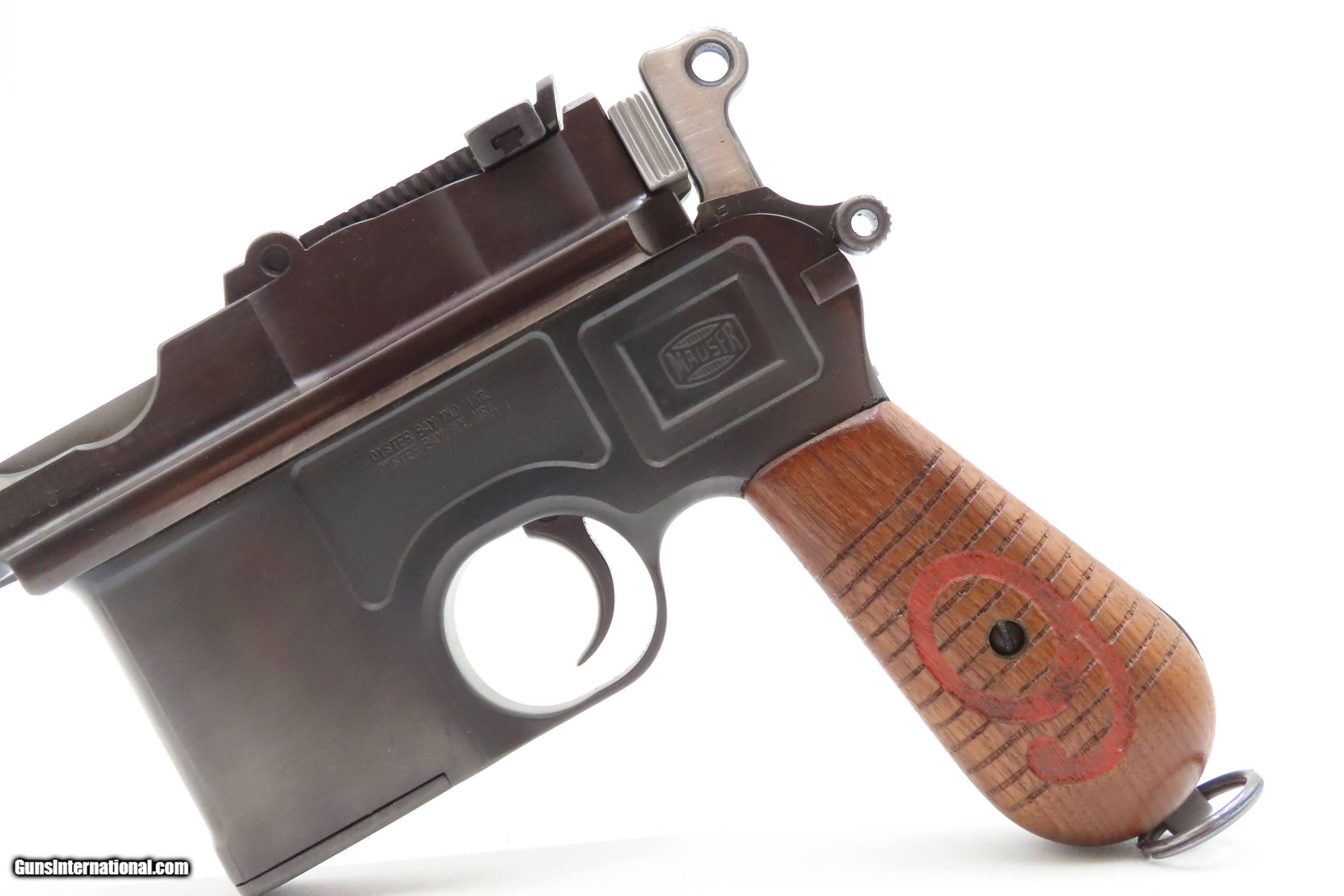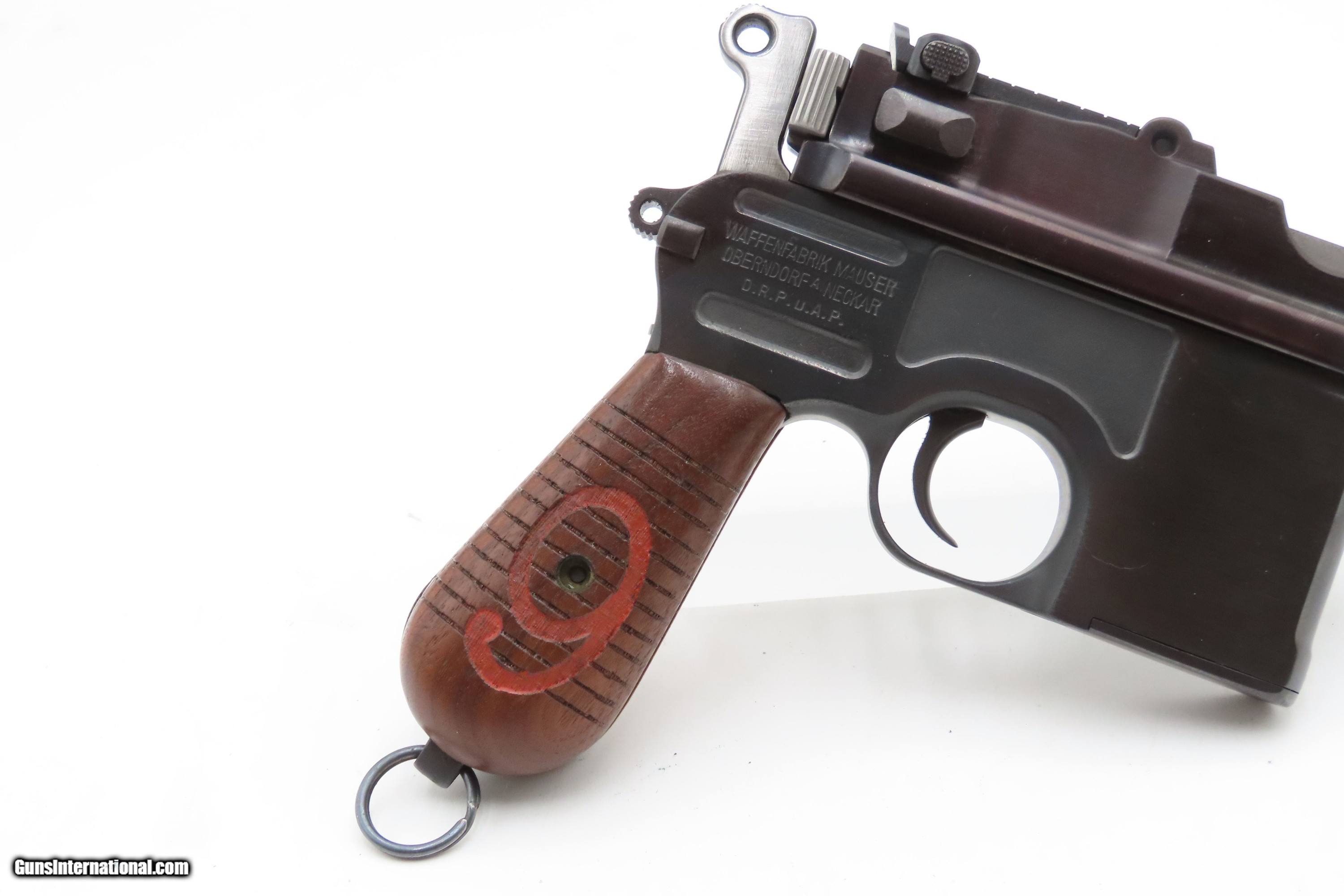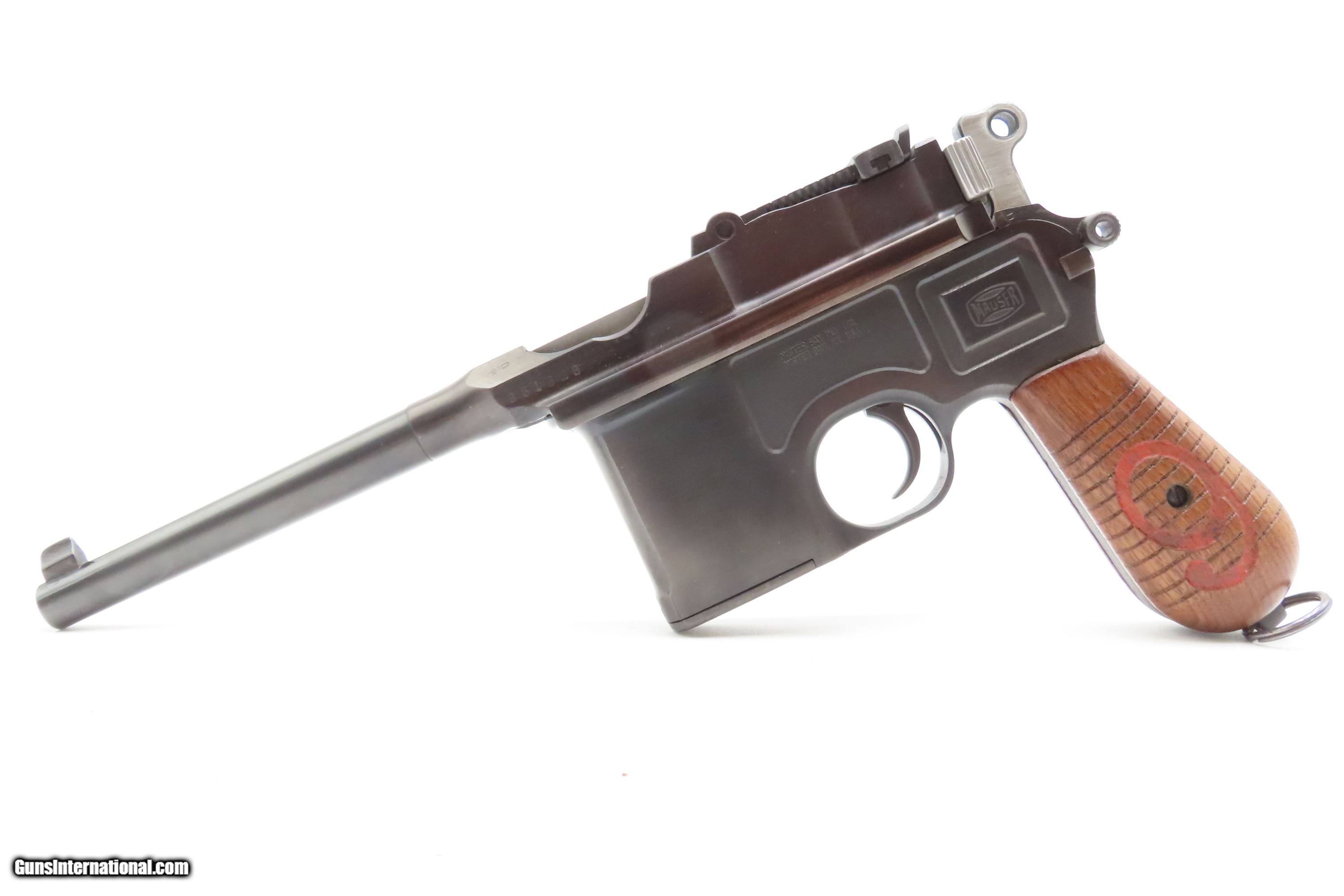 Description: German MAUSER WORLD WAR I Era 9x19mm BROOMHANDLE Semi-Auto PISTOL C&R With “RED 9” GRIPS, MANUEL & STRIPPER CLIPS Here Ancestry Guns presents a German Mauser Broomhandle Pistol, made circa 1917 with a production run between 1896 and 1937. This is the classic “Broomhandle” that was produced in 9mm in the middle of the Great War. During World War I, the Imperial German Army contracted with Mauser for 150,000 C96 pistols chambered in 9mm Parabellum to offset the slow production of the standard-issue Luger P.08 pistol. They use the same clip-loaded internal box magazines as the 7.63mm Mauser and also hold ten rounds. The Mauser Broomhandle was one of the Mauser Company’s most successful pistols and was even used by the likes of Winston Churchill during the Boer Wars. He is attributed as saying that it was “the best thing in the world”. The grip earned the gun the nickname "broomhandle" in the English-speaking world, because of its round wooden handle, and in China this pistol was nicknamed the "box cannon" because of its rectangular internal magazine. The overall condition is fine. Restored and re-barreled with a 9x19mm Luger chambered barrel circa the 1980s by Oyster Bay. Very nice blue finish. The action is excellent. The bore is shiny bright with sharp rifling. The grips are solid. These are very neat, early semi-automatic pistols! Own the original! This firearm is classified as a Curio & Relic. Barrel is 5-1/2 inches. Caliber: 9mm Luger (Parabellum) Overall condition as seen in photos. Very Fast. Very Safe. FREE SHIPPING. Will need to be sent to your local FFL or C&R licensee. This firearm is classified as a Curio & Relic. $3200 #259275 Curio/Relic: Yes Price: $3,200.00 Buy Now Pay with