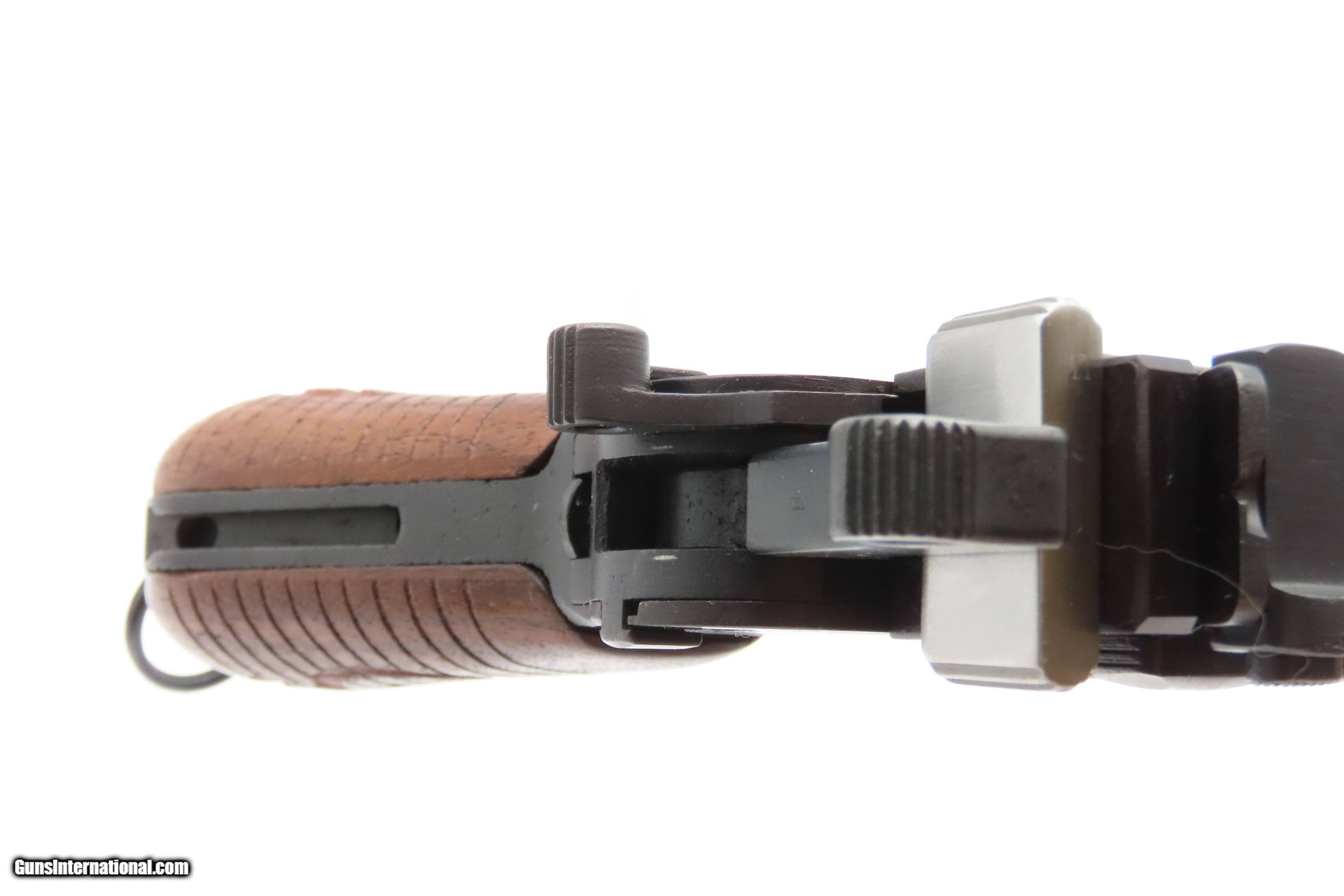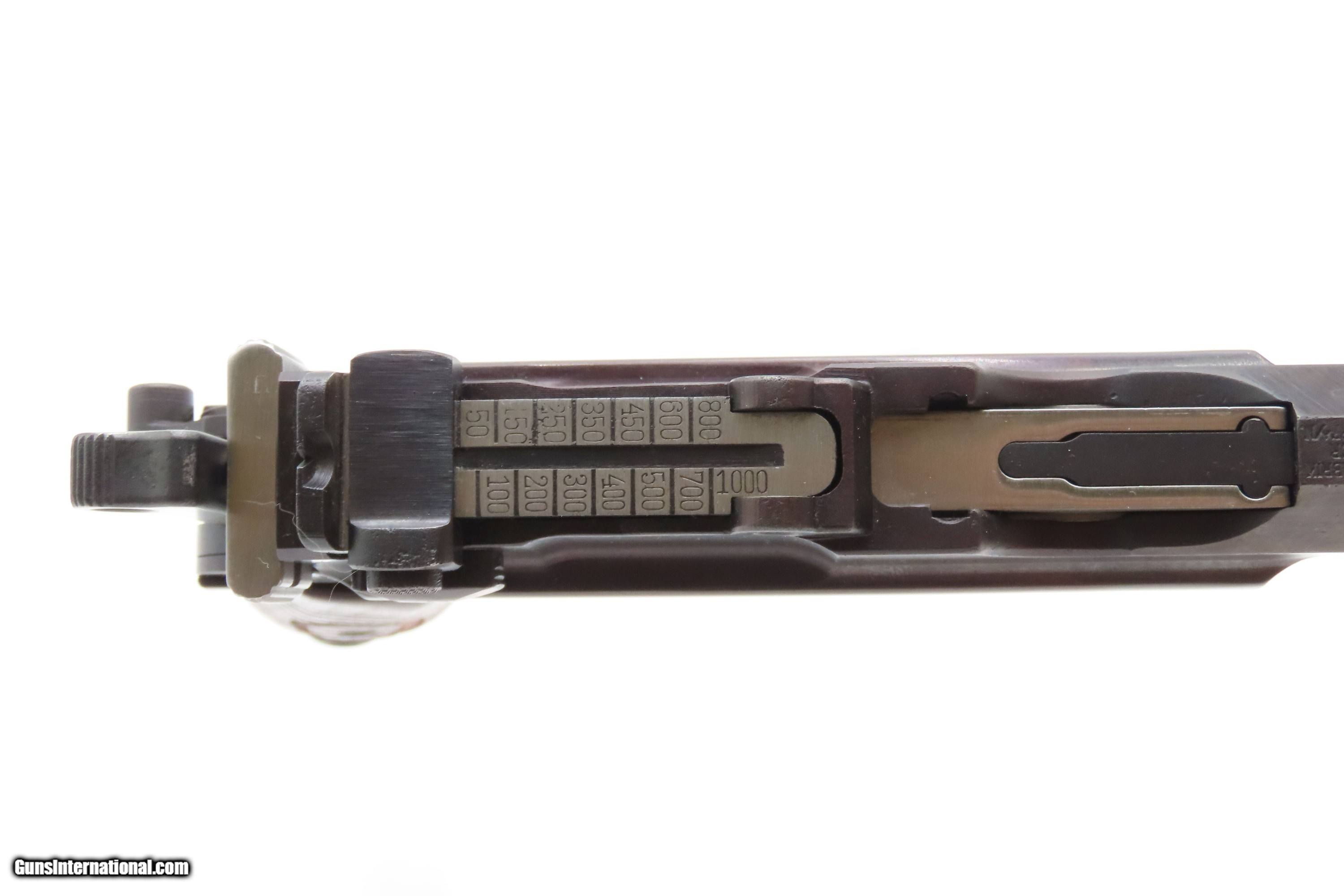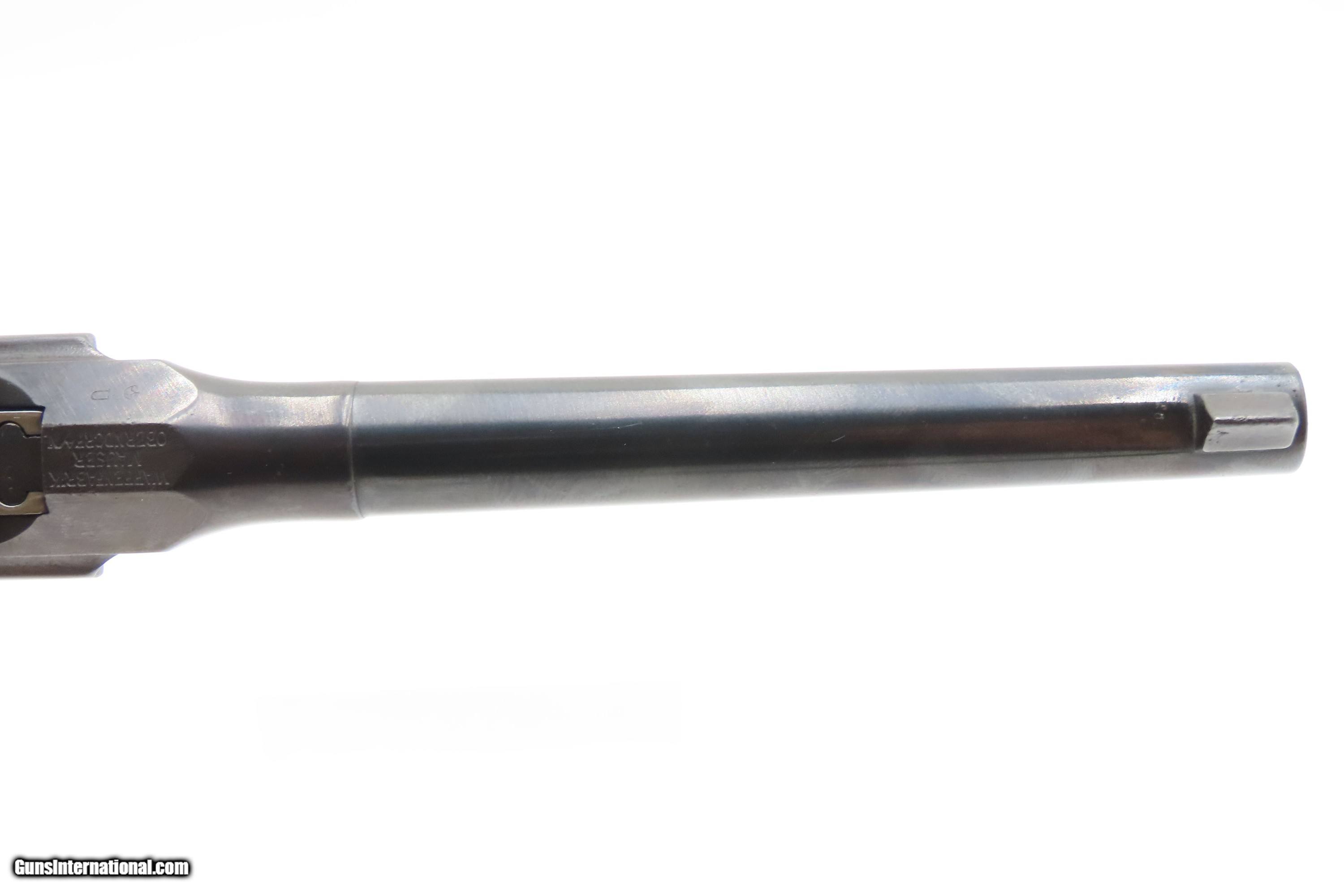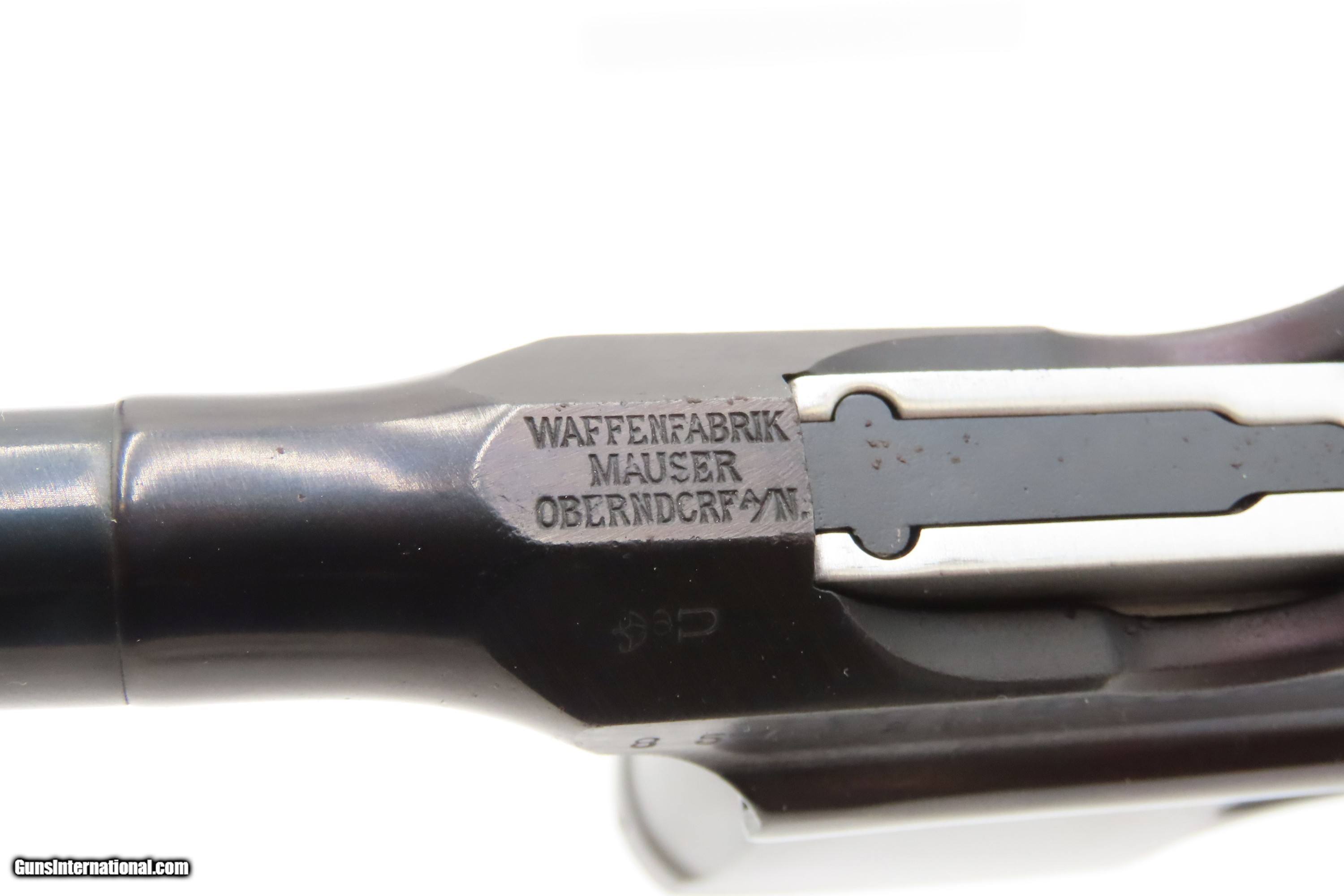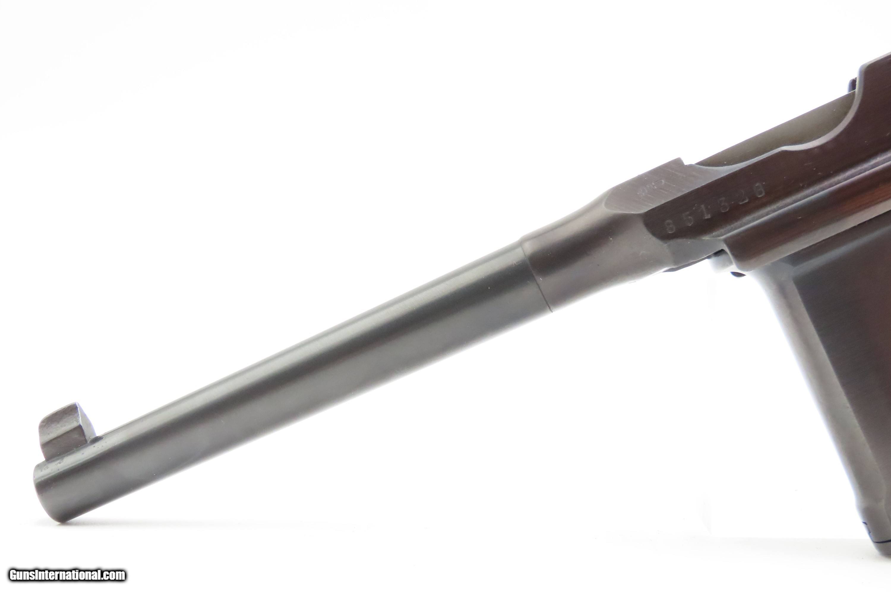 Description: German MAUSER WORLD WAR I Era 9x19mm BROOMHANDLE Semi-Auto PISTOL C&R With “RED 9” GRIPS, MANUEL & STRIPPER CLIPS Here Ancestry Guns presents a German Mauser Broomhandle Pistol, made circa 1917 with a production run between 1896 and 1937. This is the classic “Broomhandle” that was produced in 9mm in the middle of the Great War. During World War I, the Imperial German Army contracted with Mauser for 150,000 C96 pistols chambered in 9mm Parabellum to offset the slow production of the standard-issue Luger P.08 pistol. They use the same clip-loaded internal box magazines as the 7.63mm Mauser and also hold ten rounds. The Mauser Broomhandle was one of the Mauser Company’s most successful pistols and was even used by the likes of Winston Churchill during the Boer Wars. He is attributed as saying that it was “the best thing in the world”. The grip earned the gun the nickname "broomhandle" in the English-speaking world, because of its round wooden handle, and in China this pistol was nicknamed the "box cannon" because of its rectangular internal magazine. The overall condition is fine. Restored and re-barreled with a 9x19mm Luger chambered barrel circa the 1980s by Oyster Bay. Very nice blue finish. The action is excellent. The bore is shiny bright with sharp rifling. The grips are solid. These are very neat, early semi-automatic pistols! Own the original! This firearm is classified as a Curio & Relic. Barrel is 5-1/2 inches. Caliber: 9mm Luger (Parabellum) Overall condition as seen in photos. Very Fast. Very Safe. FREE SHIPPING. Will need to be sent to your local FFL or C&R licensee. This firearm is classified as a Curio & Relic. $3200 #259275 Curio/Relic: Yes Price: $3,200.00 Buy Now Pay with