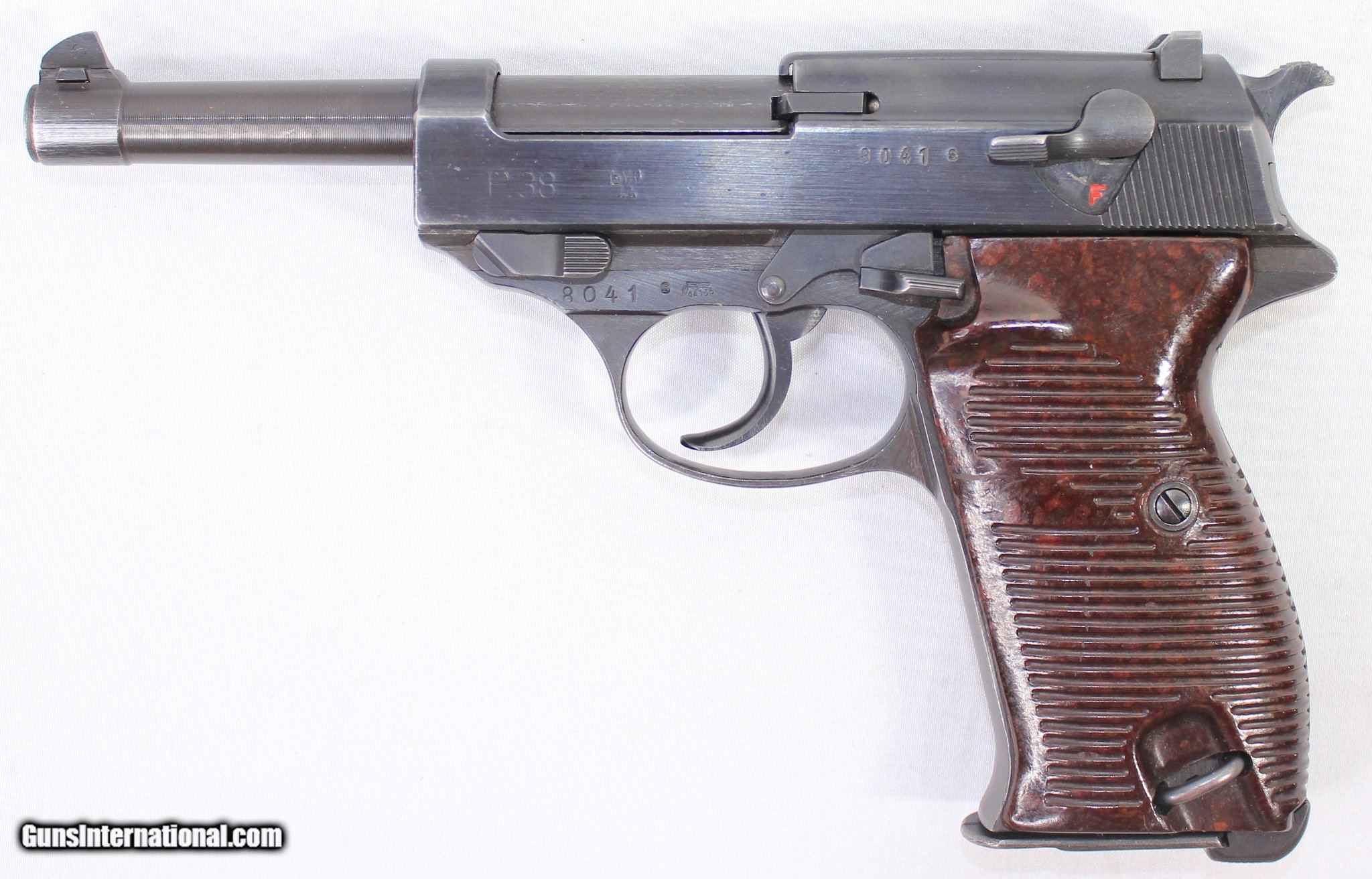 Description: Guns Listing ID: 516422 MAKE - GERMAN MAUSER MODEL - P38 (BYF 44) FINISH - BLUED BARREL - 5\" CALIBER - 9MM CAPACITY - 8+1 CONDITION - EXCELLENT (VISIBLE MATCHING NUMBERS, EXCELLENT COLOR AND GRIPS, GERMAN PROOF MARKS) COMES WITH LEATHER HOLSTER WITH STAMPS, 2 P38 MARKED MAGS SERIAL # - (8041 S) VERY SCARCE AND EXCELLENT EXAMPLE OF A BYF 44 P38 SOLD Curio/Relic: Yes Manufacturer: GERMAN MILITARY Model: MAUSER P38 BYF 44 9MM W/ MATCHING VISIBLE #‚‚S, 2-MAGS, LEATHER HOLSTE Caliber Info: 9MM LUGER (9x19 PARA) Condition: Used - Non-Certified Barrels: 5 Action: SEMI AUTOMATIC |