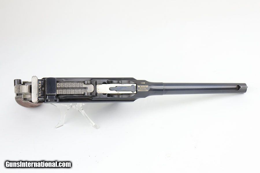 Description: This is a near-mint commercial Mauser Model 1930 with commercial Mauser stock. The pistol was made in the mid-late 1930s and has about 98% of the original blue remaining. There's a tiny bit of wear on the barrel, and an area of wear/pinpricking on the front of the magazine well. Minty bore and grips. All matching and original pistol. The stock is marked with the commercial Mauser logo and is in good condition aside from a notable stress crack near the hinge, and a few standard nicks/dings/dimples. SOLD Curio/Relic: Yes Manufacturer: Mauser Model: C96 Serial Number: 911102 Caliber Info: 7.63x25mm Condition: 98% Bore Condition: 9.5/10 Manufacture Date: 1930s |
