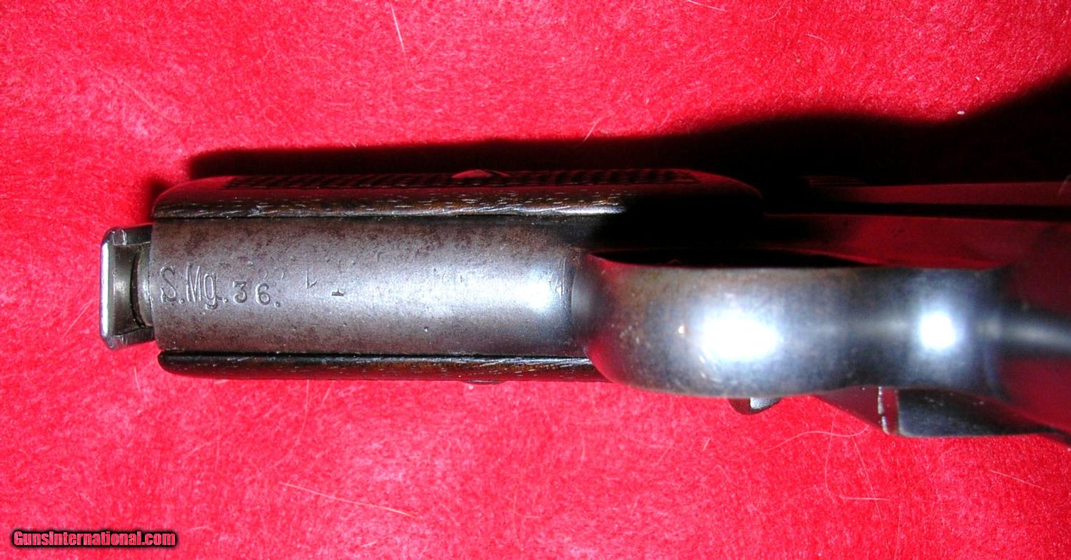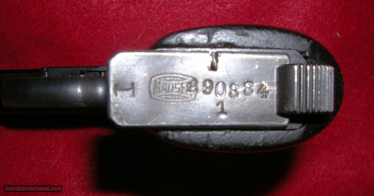 Description: A neat old pistol with an interesting history, having served in the German army in World War 1 and then in a post war German municipal police unit. The gun is in good condition with honest wear (see photos). It was last used by the Magdeburg police and is marked "S.Mg." on the front grip strap. The magazine is the police type and is numbered as such but the serial number does not match that of the gun; also its lip is bent downward a little. There is a scrubbed unit mark, also on the front grip strap, which is unreadable but appears to be military. The bore is sharp and bright. C&R or FFL required. Insured shipping and handling via USPS $25.00. Purchase with confidence; see my Ebay feedback as "delisda." SOLD Curio/Relic: Yes |