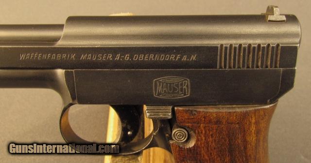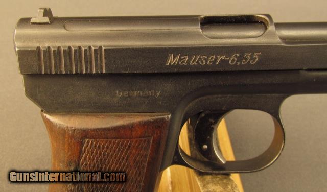 Description: SN 293063 bright vg to excellent bore. This piece retains 95% of its rust blue finish with clear markings as with all of the Portuguese contracts. Germany (export) is marked on the frame together with the small triangle in a circle at the back end of the frame. A very good plus example of a Portuguese contract pistol. This piece obviously came to the USA prior to the 1968 gun control act. See pages 64-67 of "Mauser Pocket Pistols" by Roy Pender. FFL or C&R SOLD Curio/Relic: Yes Manufacturer: Mauser Model: 1910 Serial Number: 293063 Caliber Info: .25 ACP Gauge Info: .25 ACP |