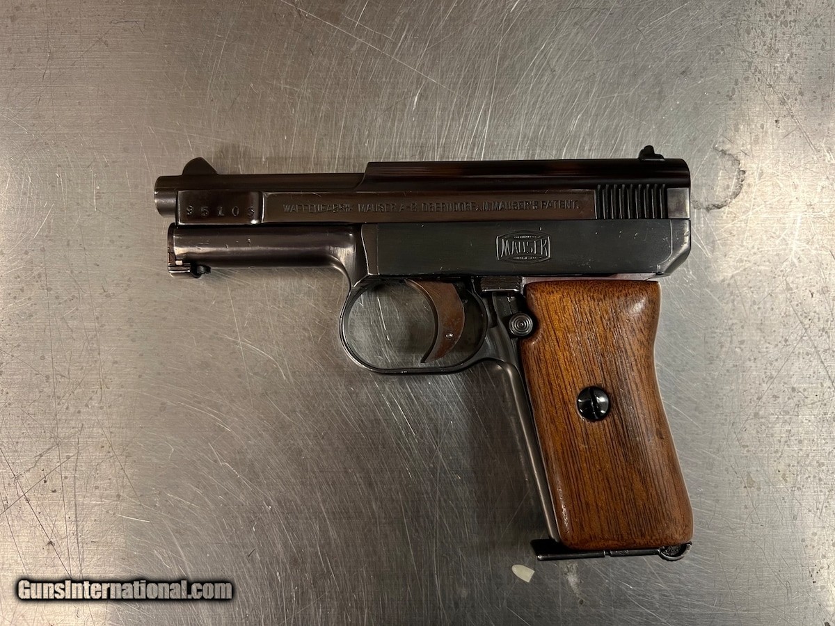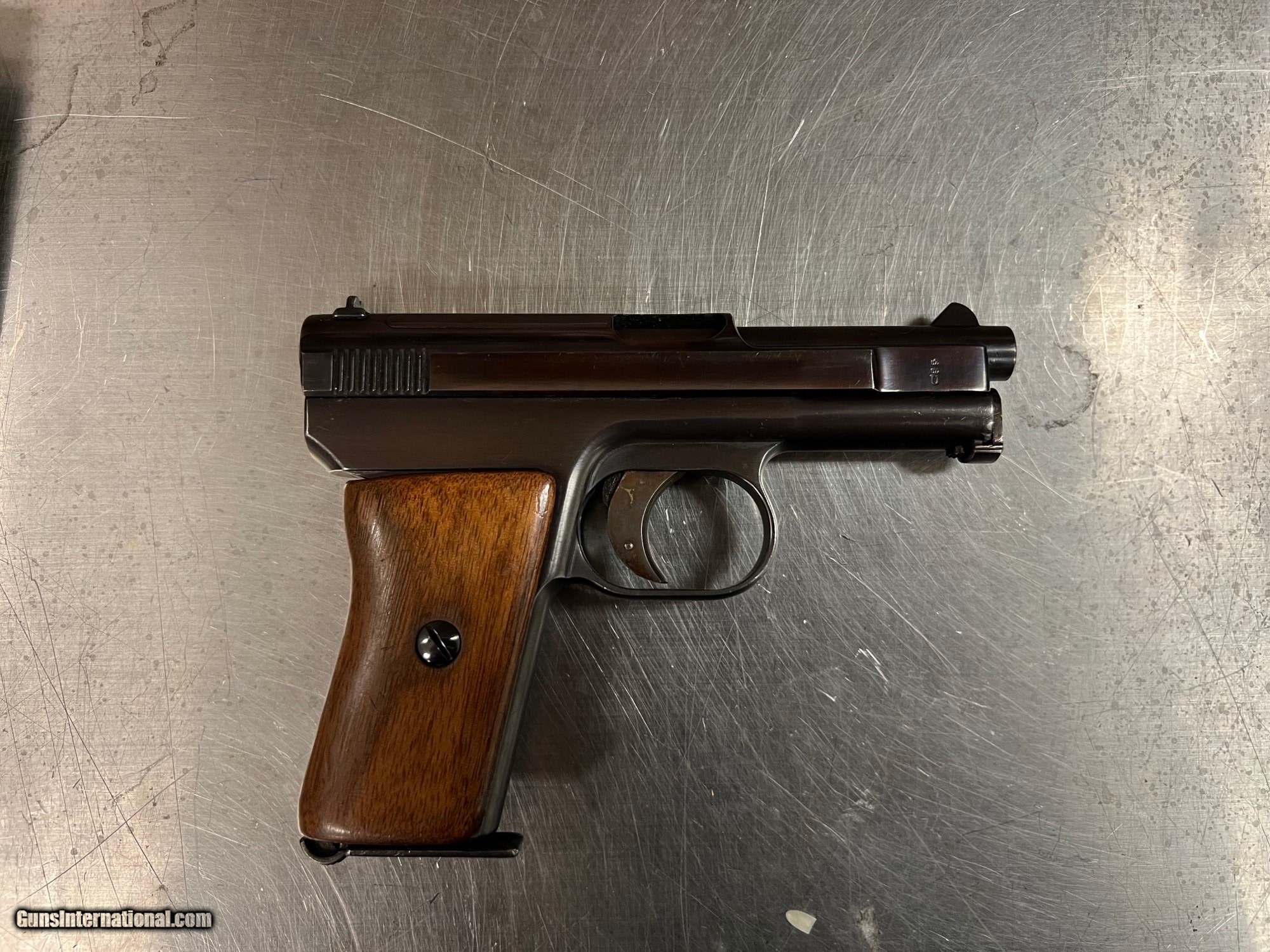 Description: Guns Listing ID: 632045 The 6.35mm Browning (.25ACP) chambered Mauser Model 1910 was actually introduced in Europe in 1906 and into the USA two years later. This pistol was a straight blowback design, not having the complexity of the delayed recoil locking system used for the 9mm Parabellum and .45ACP versions. The pistol was made to be simple, reliable, and easy to maintain. SOLD Manufacturer: MAUSER Model: 1910 Caliber Info: 6.35MM/.25 ACP Condition: Used - Non-Certified Barrels: 3.14 BARREL Finish: BLUED |