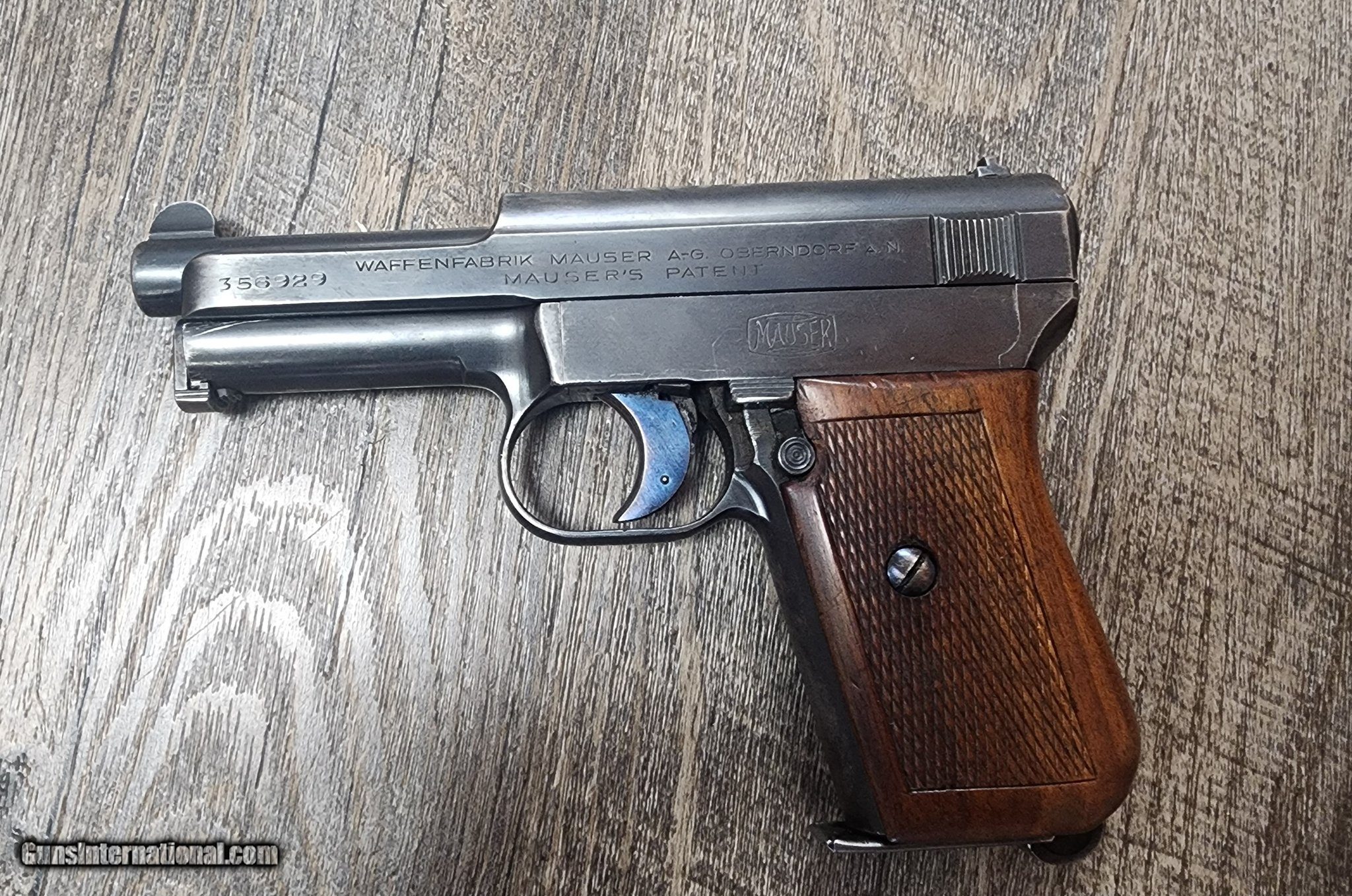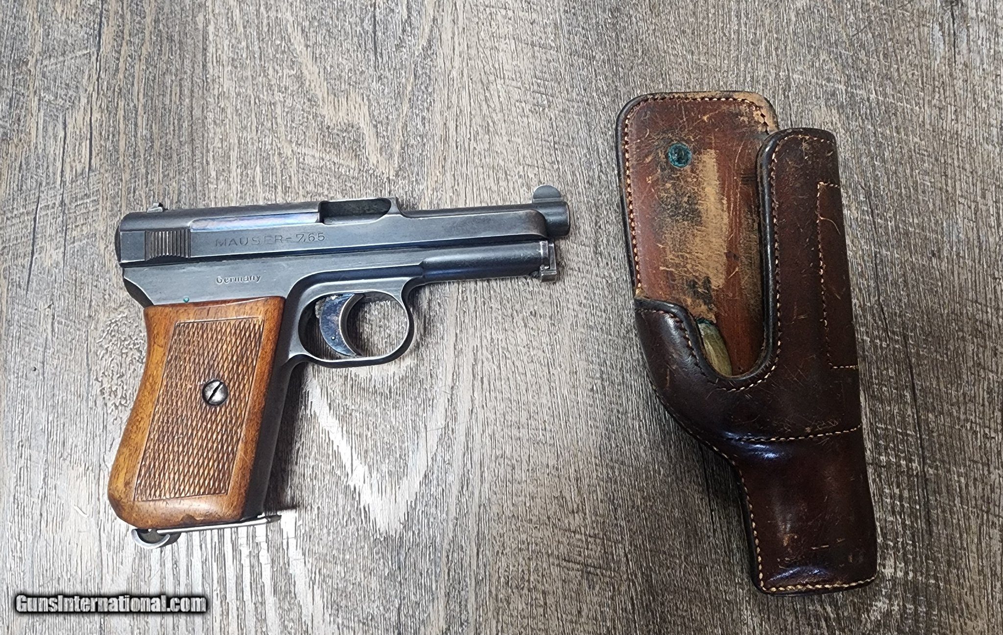 Description: Guns Listing ID: 1310911 This Mauser was made in Germany between 1924-1927 7.65 or 32ACP Comes with one magazine Comes with retention leather holster 1 magazine SOLD Manufacturer: MAUSER Model: 1914 Caliber Info: 32 CAL Condition: Used - Non-Certified Barrels: 3.25 BARREL |