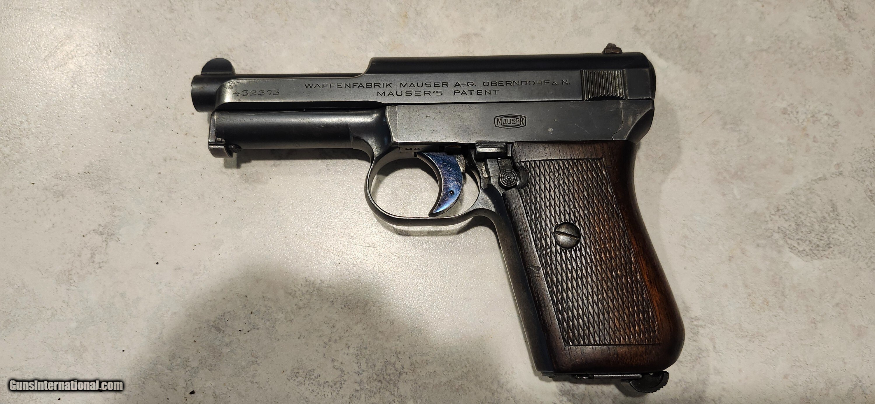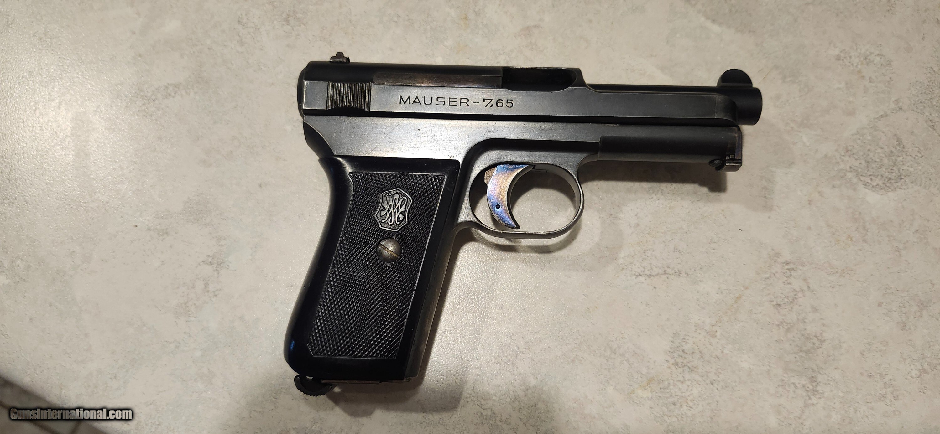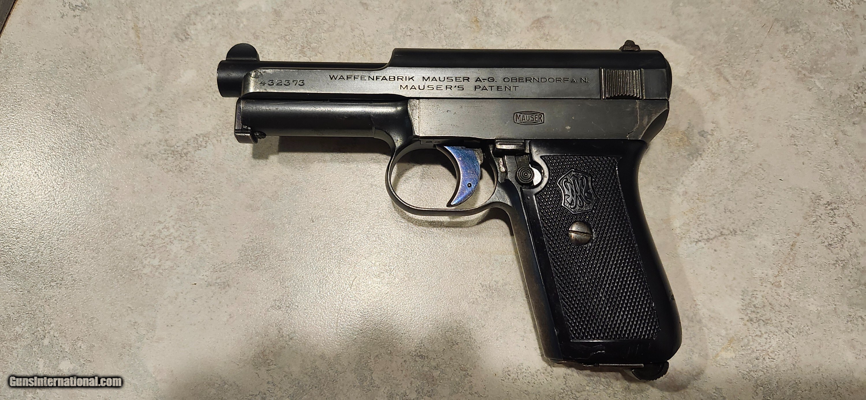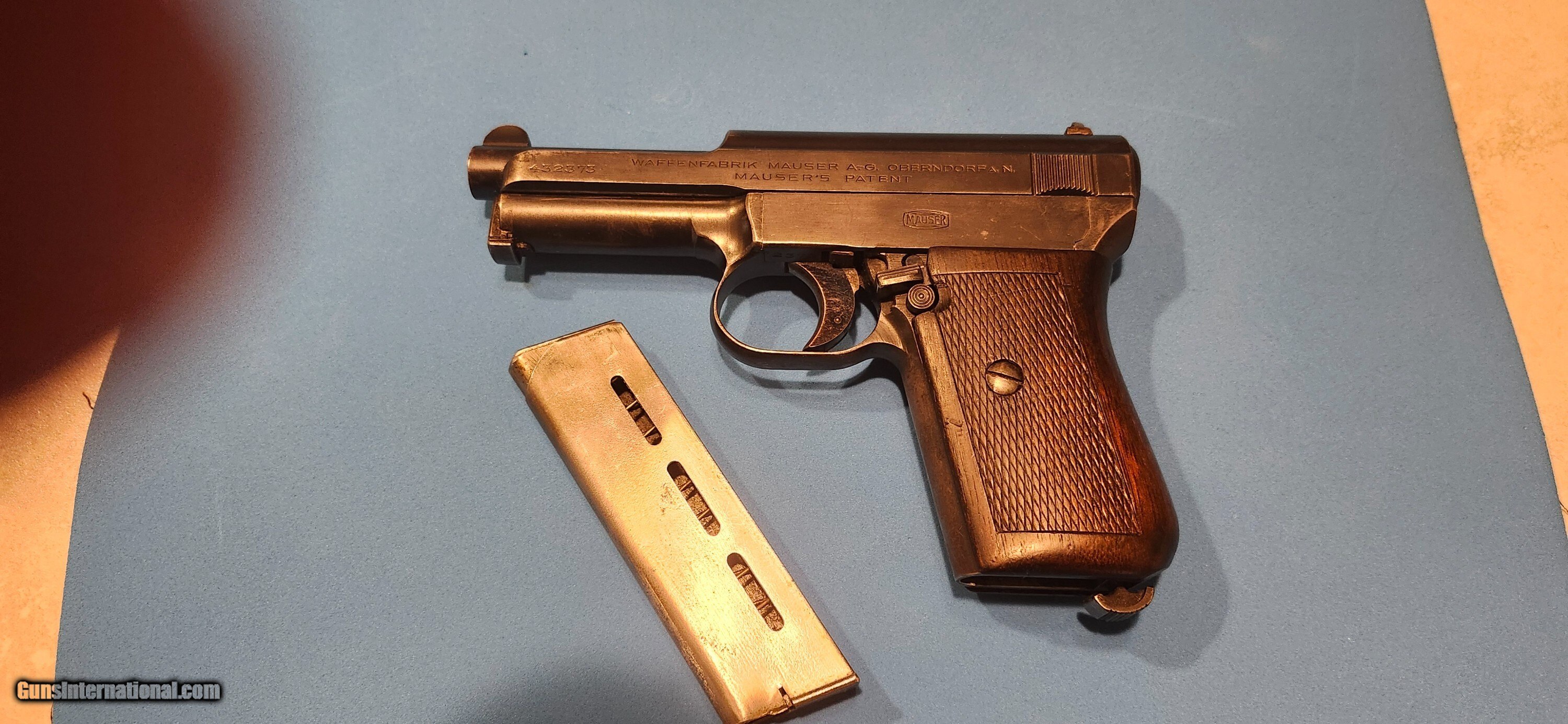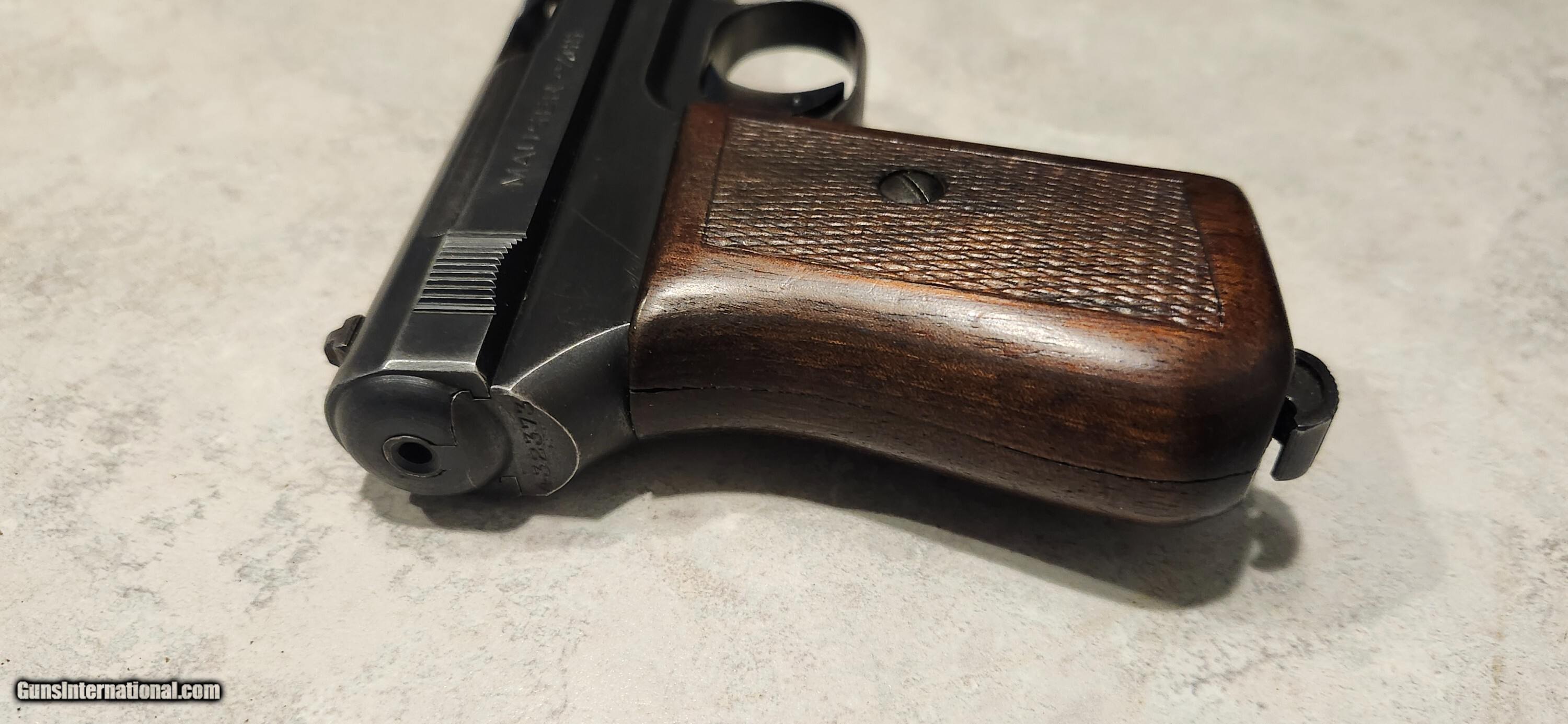 Description: Nice Mauser 1914 all matching, 85-90% bluing some fading on the front strap due too handling, very good bore, original grip that sustained a crack at one time, the finish is very good, also has the original magazine with a price of the bottom plate missing but still functions, I have provided a NC ordinance grip as an option, accept for the minor issues it's in excellent condition, but due too the issues I'm keeping the price low Curio/Relic: Yes Handgun Caliber: .32 ACP (7.65x17mm Browning SR) Manufacturer: Mauser Model: 1914 Serial Number: 432373 Barrel Length: 31/4 Condition: Excellent Metal Condition: Excellent Wood Condition: Verygood Bore Condition: Very good Finish: Blued Weight: 2lb's Manufacture Date: 1920's-1930' Item Location: S Dakota Grips: Wood Price: $400.00 Buy Now Contact Seller |