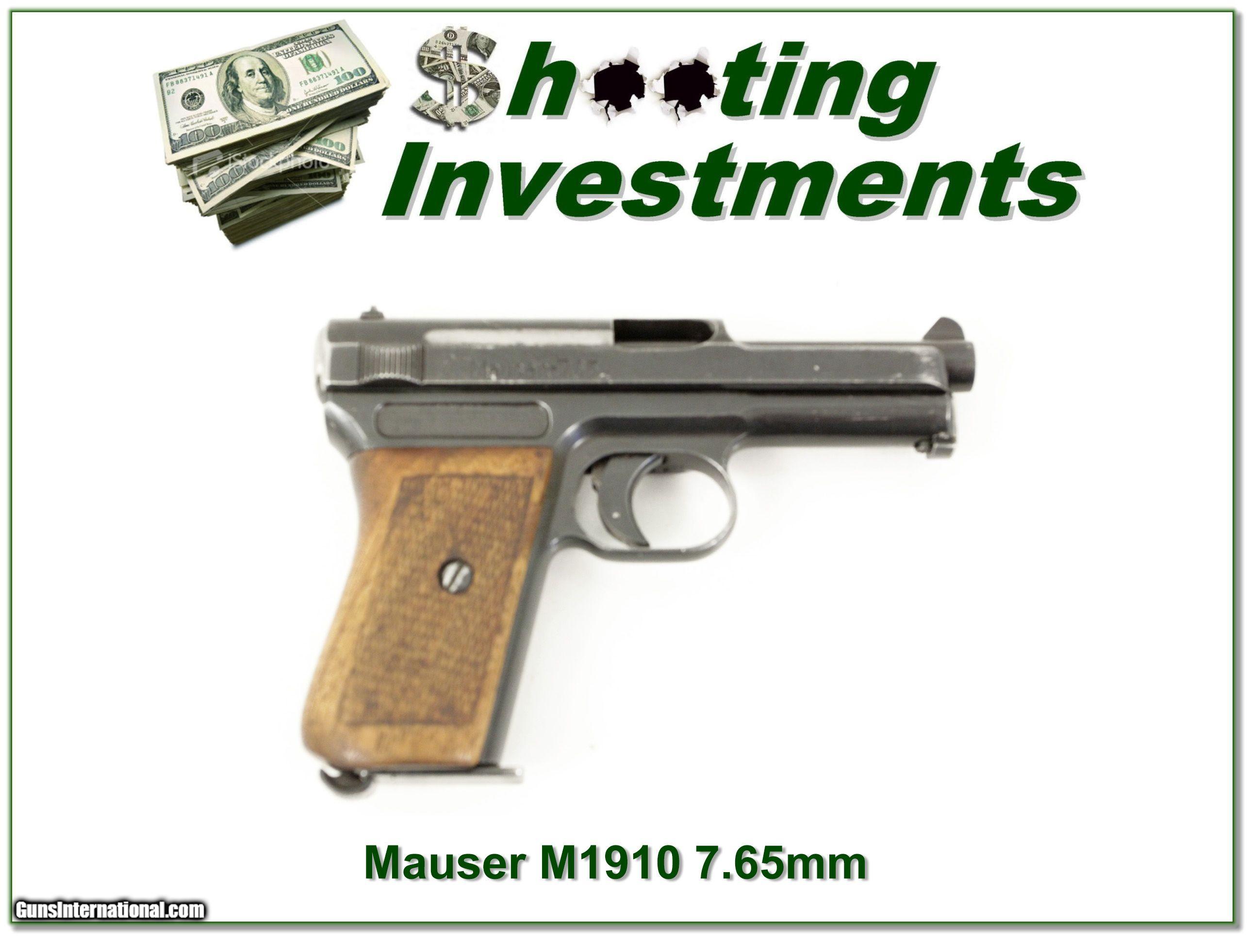 Description: This is a very nice and all original Mauser 1920 in 7.65mm. I am selling this one on consignment and as such lay-a-way can’t be used. It does of course have the standard 3-day inspection. Shipping and insurance is $29. Please email me with any questions or larger pictures. (Consign your quality firearms with Shooting Investments for only 10%! Let me know if you have any you would like to sell!) 18-0251 Payment: Payment is by Money Order, Cashiers Check or Personal Check. I can now also accept MasterCard and Visa with a 3% convenience fee. PayPal can be used for some items but never firearms. Please let us know if you would like to pay via PayPal. Shipping: The shipping charge will be listed in each description. It is $39 for most long guns and $29 for most handguns. Some heavy guns or those insured for over $2000 will be higher. Shipments to Alaska and Hawaii are higher because air shipment is required. Most firearms are shipped on Tuesday and Thursday and usually in 5 days of receipt of payment. We package all shipments carefully and insure them. For long guns you can purchase a new Plano case for $19. They now cost us $22 when buying 100 at a time. Optics are shipped Priority Mail and most other non-firearm shipments are shipped First Class. Returns: Our return policy is simple. If for any reason you are not pleased with your purchase, you may return your item for a full refund of purchase price. Ammunition cannot be returned. It is important to us that you are happy. Guns cannot be fired or dissembled before returning them and they must be returned in the same condition as received. Notification of a return must occur with-in 3 days of receipt at your dealer. Shipping, convenience and dealer fees are not refundable and are the responsibility of the buyer. Lay-a-way: If needed, we offer a 60 day lay-a-way option on most firearms. It is 1/3 now, 1/3 in 30 days and 1/3 in 60 days. Lay-a-way firearm sales are final and if not completed the first payment cannot be returned. Consigning your firearms with Shooting Investments: We will help you get top dollar for your firearms. While most local guns shops charge 20% or more, our fee is only 12% with a minimum of $75. At your local gun shop it might take months to sell. Selling on-line provides instant access to thousands of interested buyers. You won’t find any other on-line dealer willing to sell your firearms for only 12% or listing every gun on 3 separate s. Selling through an House typically costs the seller 15% and the buyer an addition 15% (so 30%) and you have to wait several months to sell and longer to receive funds. If properly priced, we will sell your firearms in a few weeks. Send us an email or give us a call and we’ll explain how easy it is for you to get top dollar. Trading: Trading for use is really just buying your gun to re-sell. If you have a gun you want to trade, please email a picture and we will let you know what we can give or it. You will always get more if we sell it for you on consignment. Help for California Buyers: We are happy to ship to California. It is the buyer’s responsibility to make sure any item you buy is legal in your state. We are also happy to help with your purchase of a firearm from someone other than us. If you see a gun you would like to buy but the seller can’t or won’t ship to California they can ship to use and we’ll then ship it to your California dealer. The cost for this service is only $30 + shipping. Let us know if we can help! SOLD |
