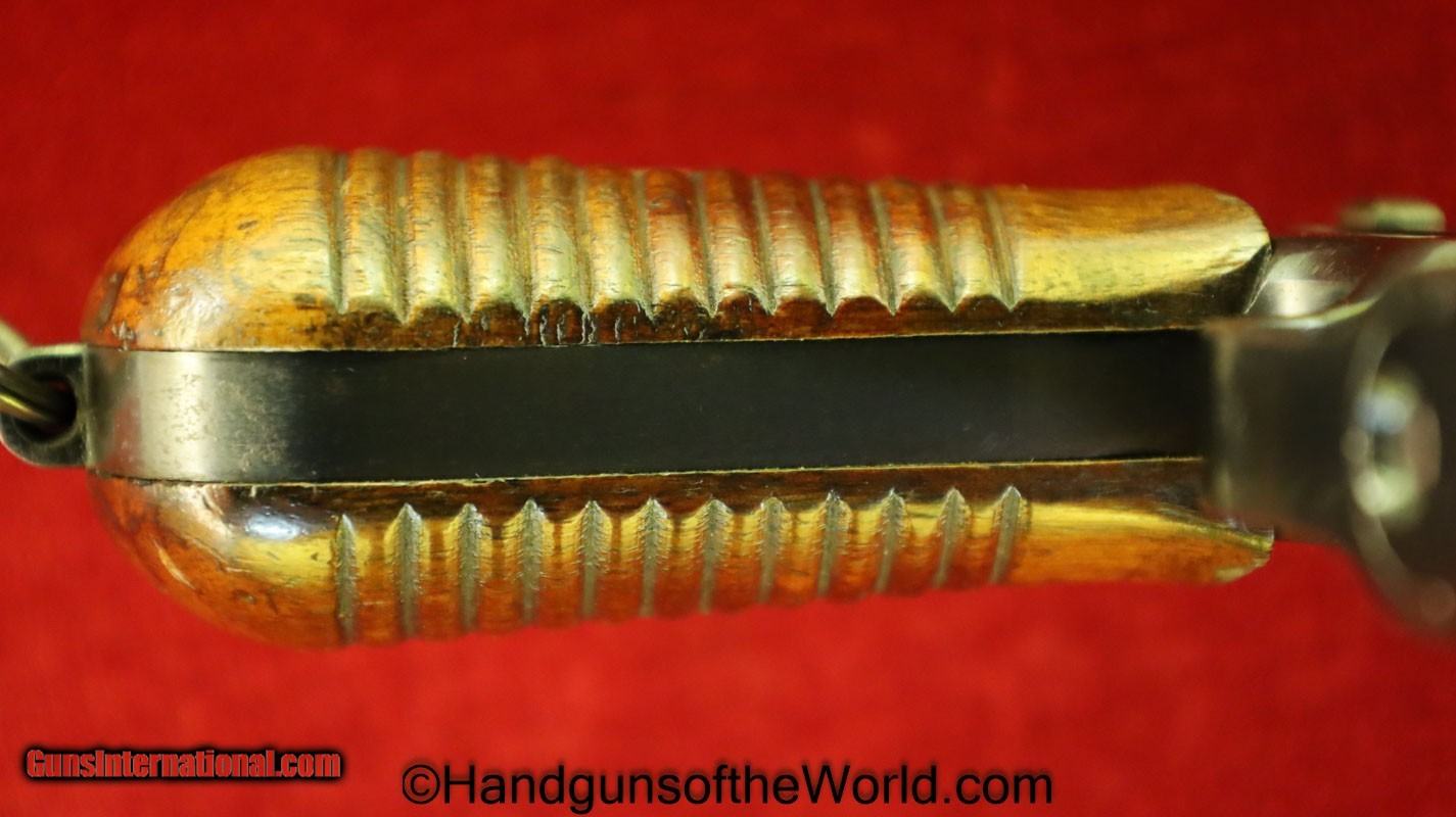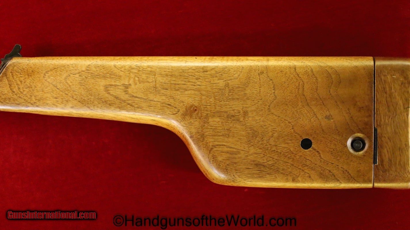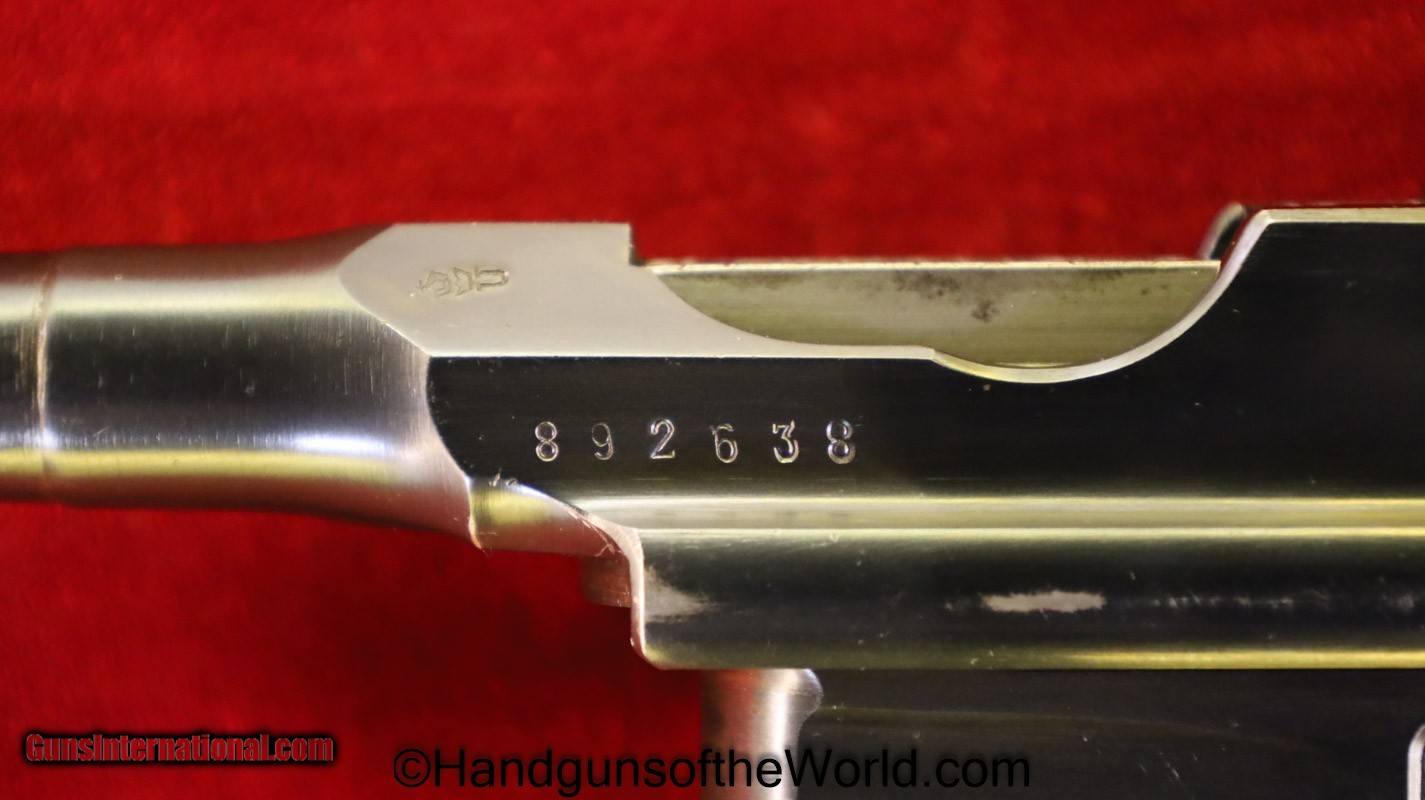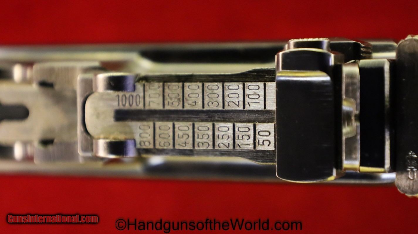Description: Mauser 1930 Commercial, 7.63mm. This Early Model has the correct 12 lines on walnut grips. This has the 50-1000 meter adjustable rear sight. This has all matching numbers and no importer markings. The blue rates about 95% and the bore is excellent. This has its original/proper, Mauser banner, walnut holster shoulder stock, with the lid showing a good repair. Curio/Relic: Yes Handgun Caliber: 7.63x25mm Mauser (30 Mauser) Manufacturer: Mauser Model: 1930 Price: $5,995.00 Shipping: $35.00 Contact Seller |