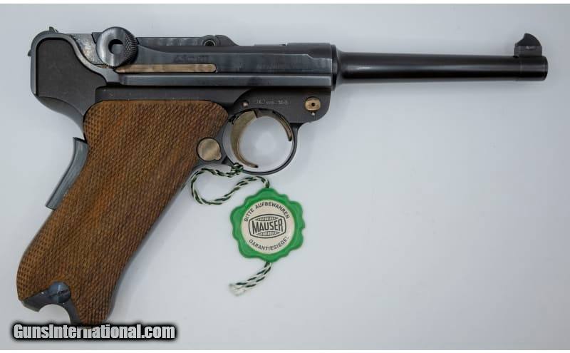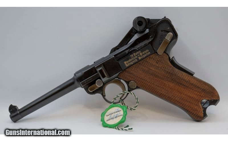 Description: Mauser 75 JAHRE is chambered in .30 Luger and in excellent condition. Firearm has very little wear on it, also comes with original box. SKU: 3731657 .30 Luger/7.65x21 Parabellum SOLD Chambers: 8 round semi auto. Metal Condition: Excellent Wood Condition: Excellent Bore Condition: Excellent Barrels: 4.75 Triggers: Single trigger. Weight: 2 lbs Sights: Fixed. Item Location: Grandville, MI |