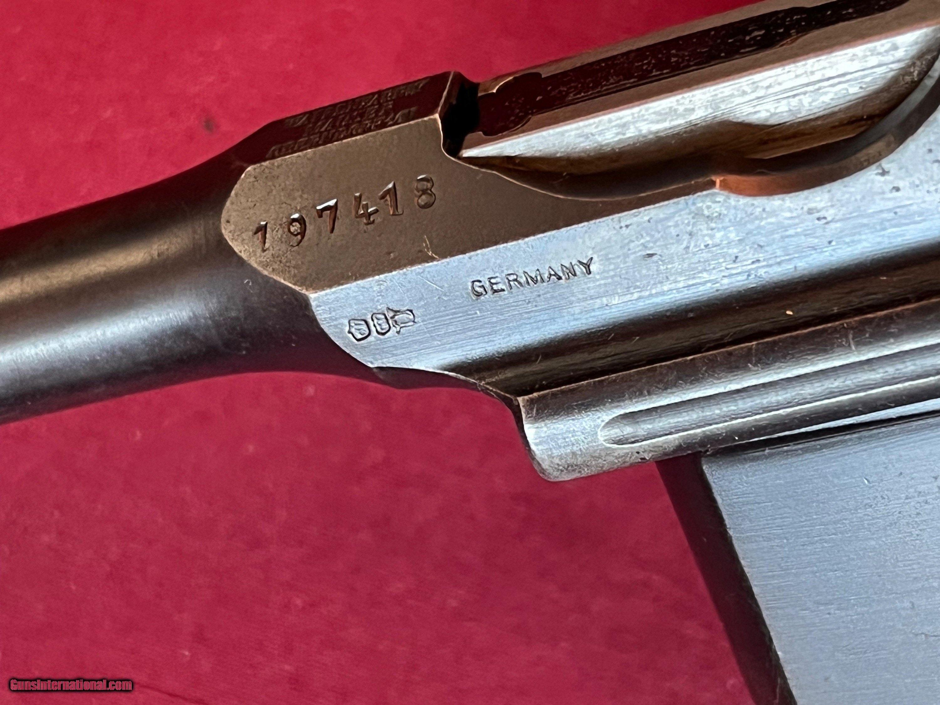 Description: WAFFENFABRIK MAUSER C96 BROOMHANDLE PISTOL. SER# 197418. ALL VISIBLE NUMBERS ARE MATCHING. VERY DESCENT BORE WITH MINOR LIGHT FROST IN THE GROOVES . GUN SHOWS A VERY NICE BLUE FINISH . GOOD SOLID GRIPS WITH NO CRACKS. ADJUSTABLE 1000 METER REAR SIGHT. COMES WITH A LATER REPRODUCTION WOOD HOLSTER/STOCK . A NICE LOOKING C96 PISTOL EASTERN BRANCH FIREARMS ADD 50.00 SHIPPING – NEXT DAY AIR SHIPPING ADD 50.00 SHIPPING – LONG GUNS GROUND OPTIONAL INSURANCE IS AVAILABLE AT 1.25 PER 100.00 Questions e-mail or call Glen at Eastern Branch Firearms 207-215-5021 TERMS – PLEASE READ BEFORE I DO NOT HAVE A LAYAWAY OPTION ( WE ACCEPT CREDIT CARDS ) -- I GET ALOT OF REQUEST FOR TRADES, I WOULD PERFER NOT TO DO TRADES ON MY INTERNET LISTINGS PAYMENT OPTIONS- We accept money orders, cashier’s checks , bank checks. sorry no personal checks. We accept all major credit cards please add 3% to the ’s cash discount price.(Shipping within the state of Florida - Florida Residents must pay sales tax) .Handguns and long guns do need to be shipped separate. PLEASE do not send payment via FED EX . USPS & UPS are fine. Thank you. We include a signed copy of our FFL with each firearm shipped. SAFTY NOTICE- Buyer is solely responsible for determining that a used gun is safe to shoot. The firearms offered have not been test fired but have been given a visual inspection only for purposes. It is a requirement that every used firearm is inspected by a qualified gunsmith before firing. By , the buyer agrees to hold seller harmless against damages, injury, or death caused by defective merchandise. RETURN POLICY- All firearms come with a 3-day non firing , non messing with ( turning srews ,taking apart,removing parts, scoping. firing, cleaning or messing with in anyway) inspection/return privilege.Inspection is based on a visual review of the gun to confirm the gun is in the condition stated. In the case of a return, buyer pays all shipping charges & if paid for with a credit card buyer absorbs the 3% credit card charges . So please ask questions BEFORE you bid. Thanks for Looking and Good Luck!! U.S. sales only, no exports…this includes antiques. I will ship to third party for exporting SOLD Curio/Relic: Yes |