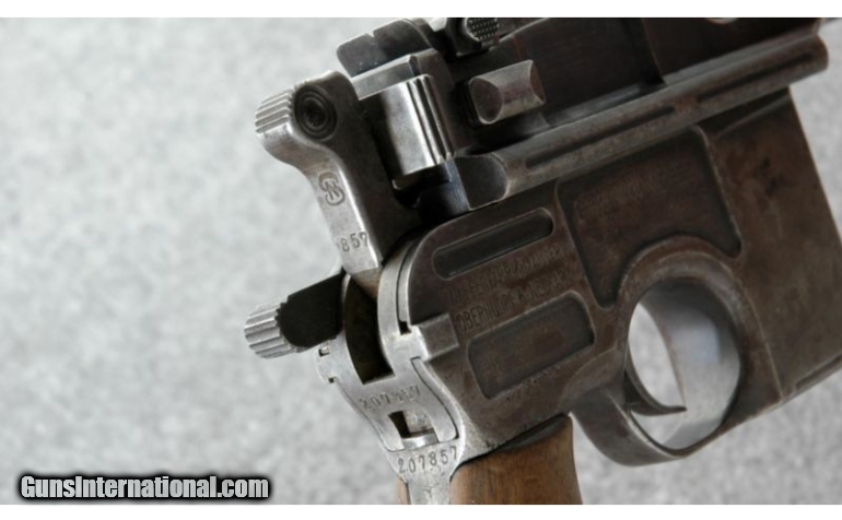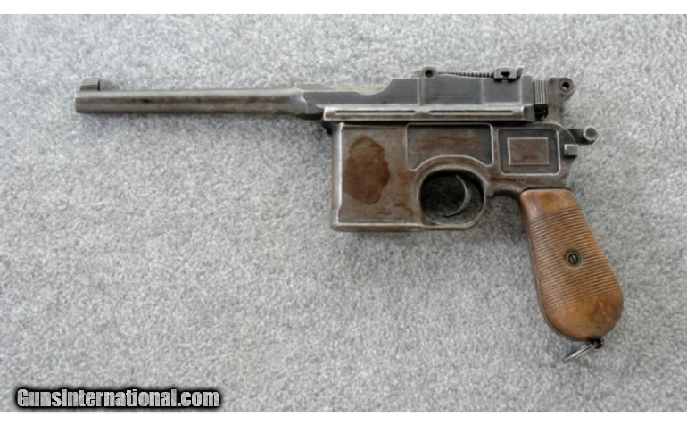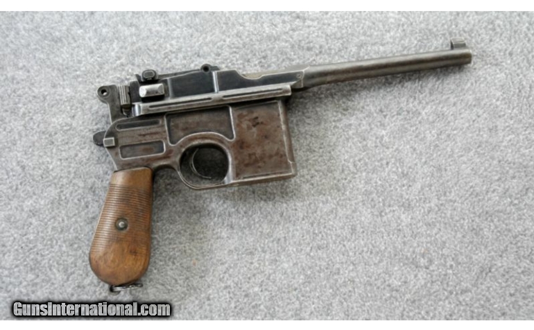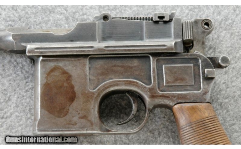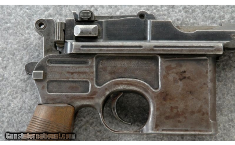 Description: This Mauser C96 Commercial has War time Commercial “NS” monogram hammer and new style safety with the hammer serial number matching the rest of the pistol SOLD Curio/Relic: Yes Manufacturer: 1912-15 Caliber Info: 7.63mm Mauser Metal Condition: Poor, almost no original finish remaining, scratched with some scattered pitting Wood Condition: Poor, worn and dented Bore Condition: Fair, well defined lands and grooves, some pitting a darkening Barrels: 5 1/2 inch Weight: 40 oz. Sights: Rear tangent sight marked to 50-1000 meters, blade front Item Location: Lehi, UT |