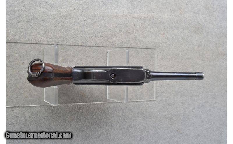 Description: This Mauser Model C96 "Broomhandle" is a right hand semi-auto pistol in .30 Mauser Cal. It has a 4 inch barrel. An inverted V front sight and a V-notch rear sight adjustable up to 1,000m. It has a 10 round internal magazine fed by stripper clip. The grip is a ribbed walnut. Serial Number 440753. .30 Mauser SOLD Chambers: Semi-Auto 10 round internal magazine fed by stripper clip. Metal Condition: Good. Some blue wear and light handling marks. Wood Condition: Good. Light handling marks. Bore Condition: Very good. Barrels: 4 inch. Weight: 38 oz. Sights: "Inverted V front sight. V-notch rear tangent sight adjustable up to 1,000m. Item Location: Richfield, WI |