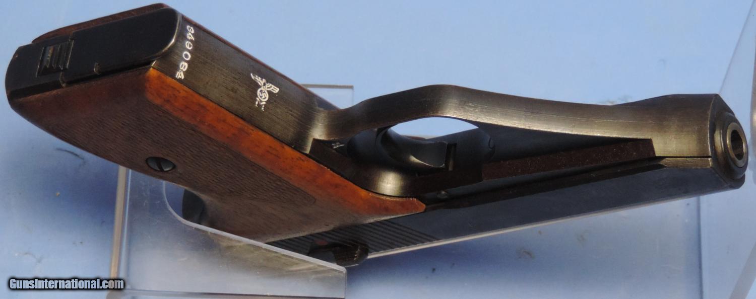 Description: Inv. 5520 Mauser Hsc. Nazi Kriegsmarine, Cal. .32acp, Ser.8490XX. Very rare indeed. Almost all .32 cal Mausers delivered to the the Kreigsmarine were model 1934. The model Hsc, was used primarily for the Army. However a very small quantity of the Hsc were delivered to the German Navy. This is one of those very scarce guns. The condition is just great, retaining about 90++% of the original factory finish. The only loss is some very faint sharp edge silvering and slight graying of the grip straps. All numbers match. The right slide front has the Eagle/N proof. The left trigger guardhas the rare Naval Eagle M/6 proof the front grip strap is stamped with the large Naval Eagle/Swastika/ M which are correct as described in Jan still's book AXIS PISTOLS. The walnut grips which usually have the front tips broken are in super condition. No chips or splits. The feed ramp and bolt face show little evidence of any use. The bore is flat out super. Bright as a new penny with razor sharp rifling and no sign of graying. This rare beauty comes with one correct magazine and the of acquisition pride to the buyer....$3495. To purchase this firearm or if you want to request more information contact us at: Email ckgunsymail Phone 201-512-0002 Cell 201-575-6838 FAX 201-215-4759 We accept most major credit cards. Prices shown are Discounted 3% for Cash or Check. The buyer must be familiar with all the laws governing the purchase and the ownership of firearms in their own city and state. The Yankee Armorer, Inc is not responsible for any failure to comply with or observe these laws. The Yankee Armorer, Inc will only ship after full payment and receipt of all required documents. Shipping: Add $35.00 for handguns, $45.00 for long guns. New Jersey buyers are subject to a 7% sales tax. The Yankee Armorer, Inc offers a 3 day inspection period with full refund upon return of intact firearm and in the original condition. The Yankee Armorer, Inc offers a no interest lay away program - 25% down; 25% in 30 days; 25% in 60 days; and full payment in 90 days. Any violation of this policy is subject to restocking and forfeiture of all payments. Any variation from this policy must be agreed to in advance. Unshipped Cancelled sales are subject to a 20% restocking fee. Be advised that all firearms sold by The Yankee Armorer, Inc. or the Gun Exchange, LLC (SELLER) are sold as collector’s items. They have not been fired or tested for safety and must be examined by a license gunsmith prior to use. By purchasing any item from the (SELLER), you are agreeing to hold the (SELLER) free from any damages or lawsuits of any nature. Any item left for transfer or storage will be charged to $25.00 per month, per item from the day of its receipt. Any variation from this policy must be agreed to in advance. Store hours 10:00 am to 5:00 pm Tuesday -Saturday. It's always best to call for appointment. Store 201-512-0002, cell 201-575-6838. SOLD Curio/Relic: Yes |