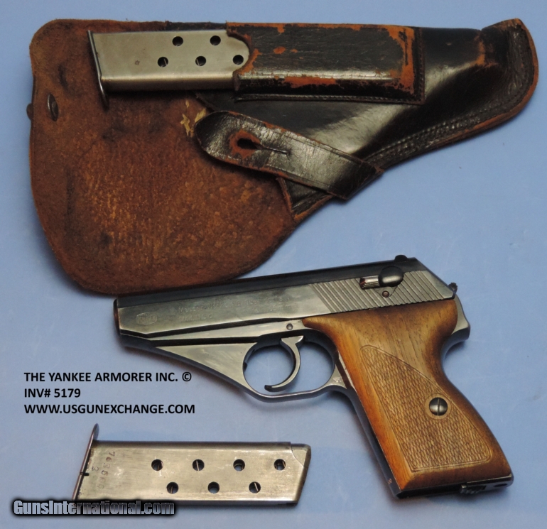 Description: Inv. 5179 SALE PENDING Mauser Hsc (Nazi Police) Serial Number 7625XX. This is an early gun still with the very high polish, full Mauser Banner legend and machined in lanyard loop. All parts match. The condition is beyond any expectation. The original high polish factory blue is at least 99%. There is a minute amount of muzzle and sharp edge silvering and two surface pinpricks that's it. The grip straps have no graying. The right front of the slide has an Eagle/Swastika and the left triggeris Police marked, Eagle L. The wooden grips show show no chips or cracks and like the rest of the gun no use. The bore is razor sharp and mirror bright with little or no graying. The gun comes with one correct Mauser Banner stamped magazine. I can't call this gun a holster queen because it doesn't show any holster wear. Since it's a POLICE we can call it "The Commissioner's Desk Queen" for now. The gun is a guaranteed to be a no remorse acquisition......$1295. The buyer must be familiar with all the laws governing the purchase and the ownership of firearms in their own city and state. The Yankee Armorer, Inc is not responsible for any failure to comply with or observe these laws. The Yankee Armorer, Inc will only ship after full payment and receipt of all required documents. Shipping: Add $35.00 for handguns, $45.00 for long guns. New Jersey buyers are subject to a 7% sales tax. The Yankee Armorer, Inc offers a 3 day inspection period with full refund upon return of intact firearm and in the original condition. The Yankee Armorer, Inc offers a no interest lay away program - 25% down; 25% in 30 days; 25% in 60 days; and full payment in 90 days. Any violation of this policy is subject to restocking and forfeiture of all payments. Any variation from this policy must be agreed to in advance. Unshipped Cancelled sales are subject to a 20% restocking fee. We accept most major credit cards. Prices shown are Discounted 3% for Cash or Check. Be advised that all firearms sold by The Yankee Armorer, Inc. or the Gun Exchange, LLC (SELLER) are sold as collector’s items. They have not been fired or tested for safety and must be examined by a license gunsmith prior to use. By purchasing any item from the (SELLER), you are agreeing to hold the (SELLER) free from any damages or lawsuits of any nature. Any item left for transfer or storage will be charged to $25.00 per month, per item from the day of its receipt. Unless discussed with management prior to our receipt. Store hours 10:00 am to 5:00pm Tuesday -Saturday. It's always best to call for appointment. Store 201-512-0002, cell 201-512-5768. SOLD Curio/Relic: Yes |