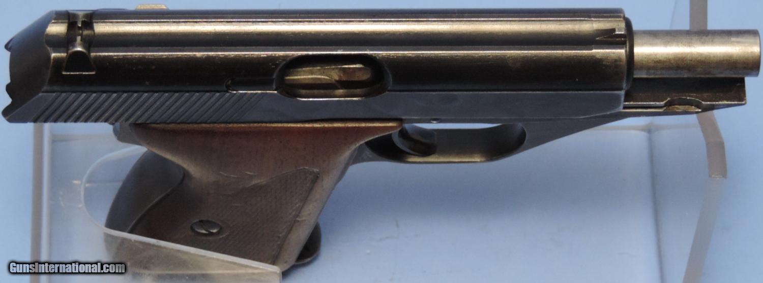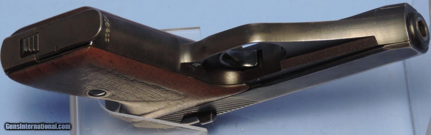 Description: Inv. 5518 Mauser Hsc. Nazi Cal. .32acp, Ser. 8064XX. Super clean, Close to minty at about 97-98% original high polish blue. No pits, no rust just some sharp edge and muzzle silvering. The gripstraps do show just the slightest bit of toning. All parts match. The right front of the slide is stamped Eagle/N, the left side of the frame Eagle/N, and the left side of the trigger is stamped Eagle/135 which is the correct for this gun. The wooden grips are excellent and do not have the usual forward tips chipped nor are there any splits or cracks. The grip screws are unmarred. The feed ramp and bolt face show very little use. The bore is as bright as a new penny with very sharp well defined crisp rifling. There is no apparent graying. The gun comes with two correct Hsc magazines. This is one gun that can be a proud acquisition to your collection.....$1095. To purchase this firearm or if you want to request more information contact us at: Email ckgunsymail Phone 201-512-0002 Cell 201-575-6838 FAX 201-215-4759 We accept most major credit cards. Prices shown are Discounted 3% for Cash or Check. The buyer must be familiar with all the laws governing the purchase and the ownership of firearms in their own city and state. The Yankee Armorer, Inc is not responsible for any failure to comply with or observe these laws. The Yankee Armorer, Inc will only ship after full payment and receipt of all required documents. Shipping: Add $35.00 for handguns, $45.00 for long guns. New Jersey buyers are subject to a 7% sales tax. The Yankee Armorer, Inc offers a 3 day inspection period with full refund upon return of intact firearm and in the original condition. The Yankee Armorer, Inc offers a no interest lay away program - 25% down; 25% in 30 days; 25% in 60 days; and full payment in 90 days. Any violation of this policy is subject to restocking and forfeiture of all payments. Any variation from this policy must be agreed to in advance. Unshipped Cancelled sales are subject to a 20% restocking fee. Be advised that all firearms sold by The Yankee Armorer, Inc. or the Gun Exchange, LLC (SELLER) are sold as collector’s items. They have not been fired or tested for safety and must be examined by a license gunsmith prior to use. By purchasing any item from the (SELLER), you are agreeing to hold the (SELLER) free from any damages or lawsuits of any nature. Any item left for transfer or storage will be charged to $25.00 per month, per item from the day of its receipt. Any variation from this policy must be agreed to in advance. Store hours 10:00 am to 5:00 pm Tuesday -Saturday. It's always best to call for appointment. Store 201-512-0002, cell 201-575-6838. SOLD |