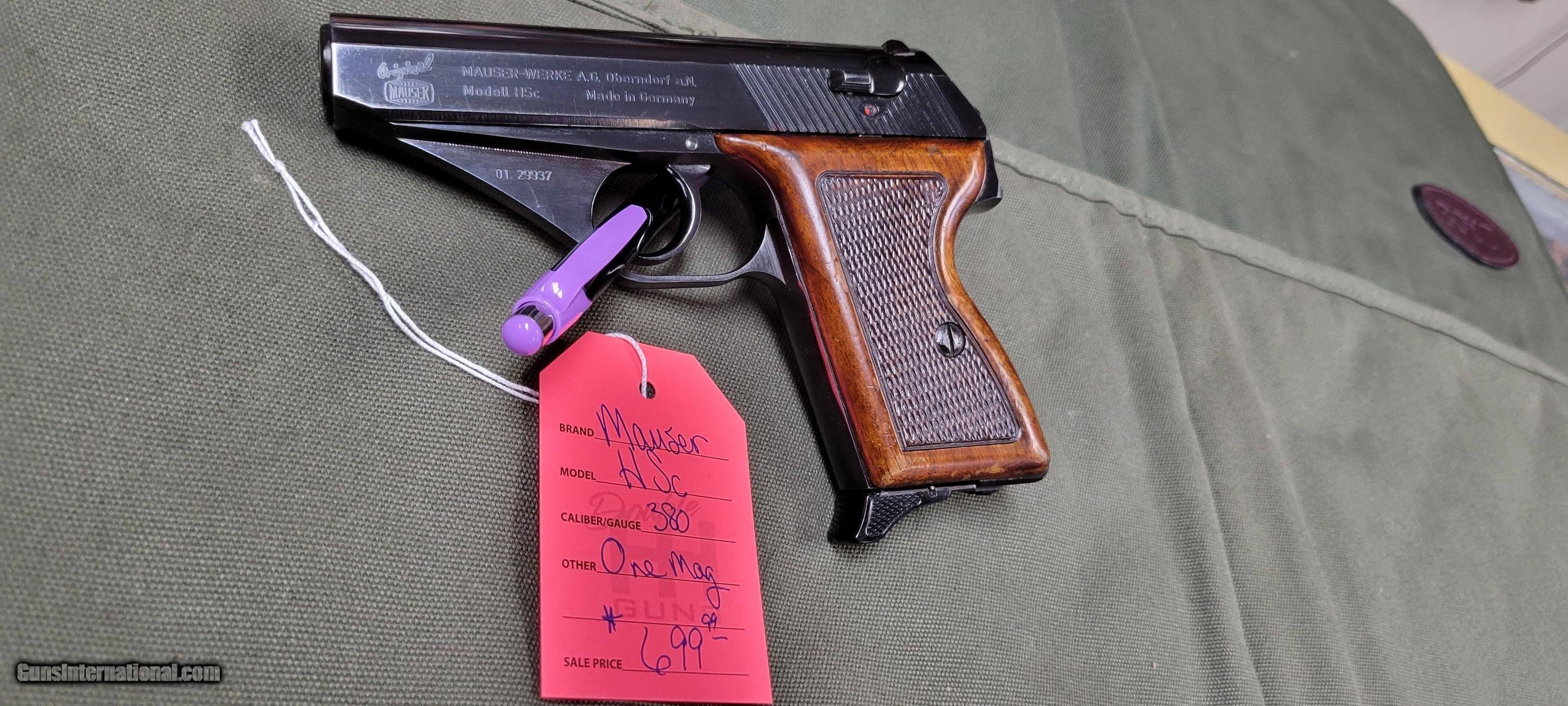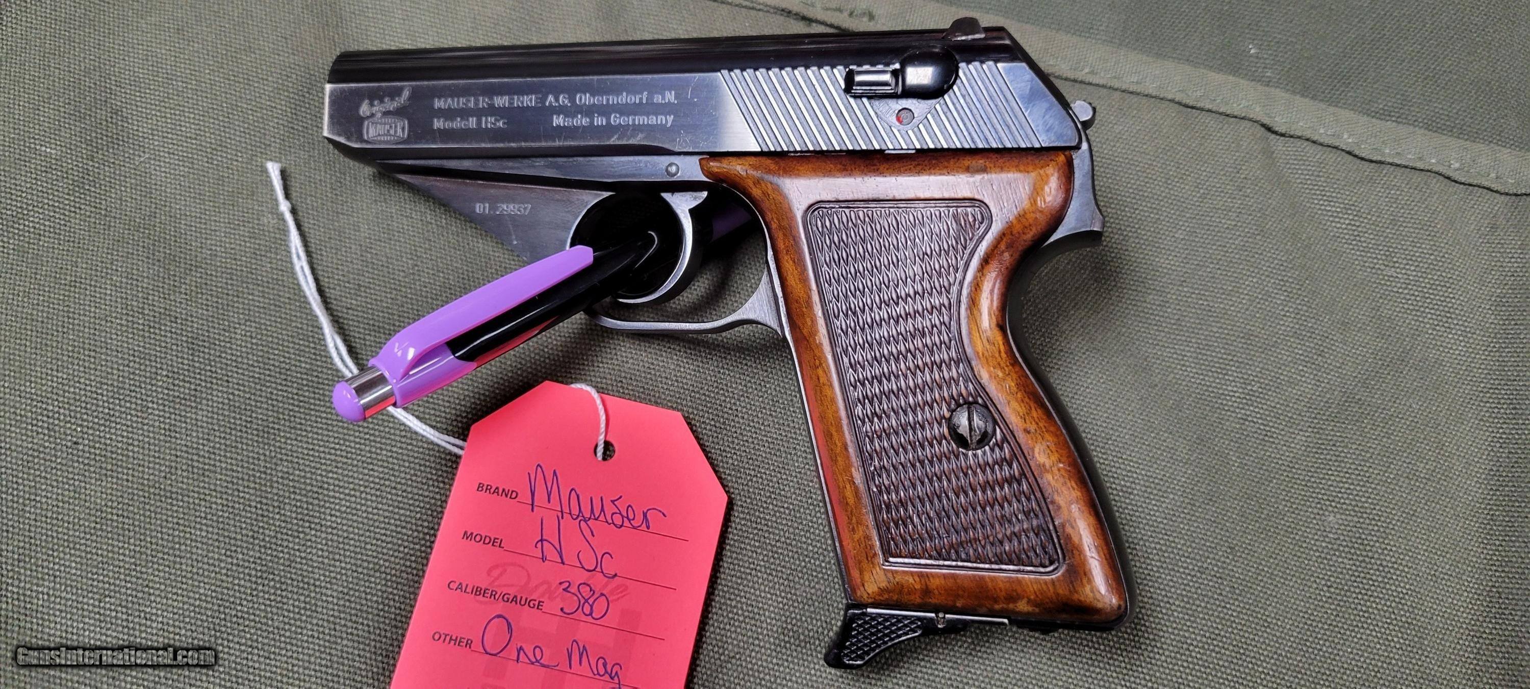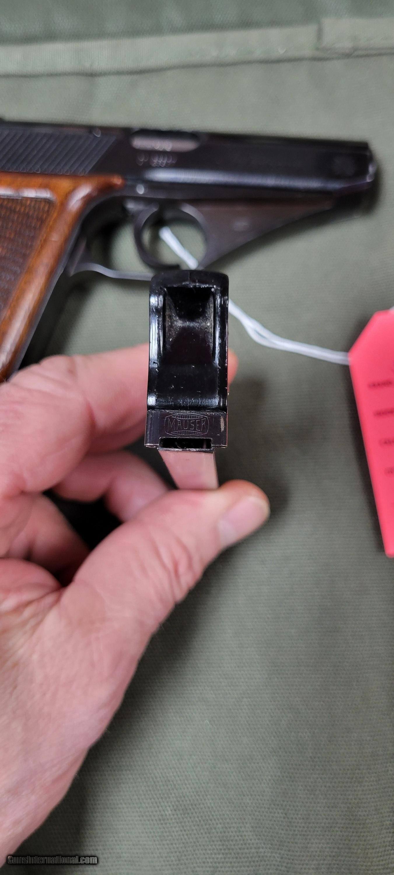 Description: A nearly perfect example. Small amounts of blue loss on the sharp points at the muzzle. Comes with one Mauser branded magazine. Please call or email with any questions. WE TAKE CREDIT CARDS, DEBIT CARDS, MONEY ORDERS, CASHIER CHECKS, OR EVEN PERSONAL CHECKS.........AS LONG AS THEY'RE GOOD! 3% will be added to all charge cards. GUNS WILL BE HELD UNTIL PERSONAL CHECKS CLEAR. GUNS SUBJECT TO PRIOR SALE. There is a $50 shipping charge per gun and is NOT refundable. Insurance may be extra. Thank you, Darryl Howard SOLD |