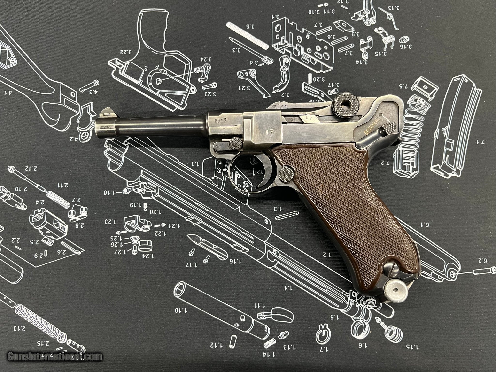 Description: Guns Listing ID: 591610 For sale is a WWII-era German Mauser luger, a genuine military-issued example from the period. The handgun retains its original wartime markings, including the eagle proof stamps, which confirm its authenticity and production history. This piece shows the expected patina for its age and serves as a historic collectible for those interested in military artifacts and WWII-era manufacturing. Manufacturer: MAUSER Model: Luger Caliber Info: 9MM LUGER (9x19 PARA) Condition: Used - Non-Certified Barrels: 4" BARREL Action: SEMI AUTOMATIC Finish: black Price: $1,799.99 Contact Seller |