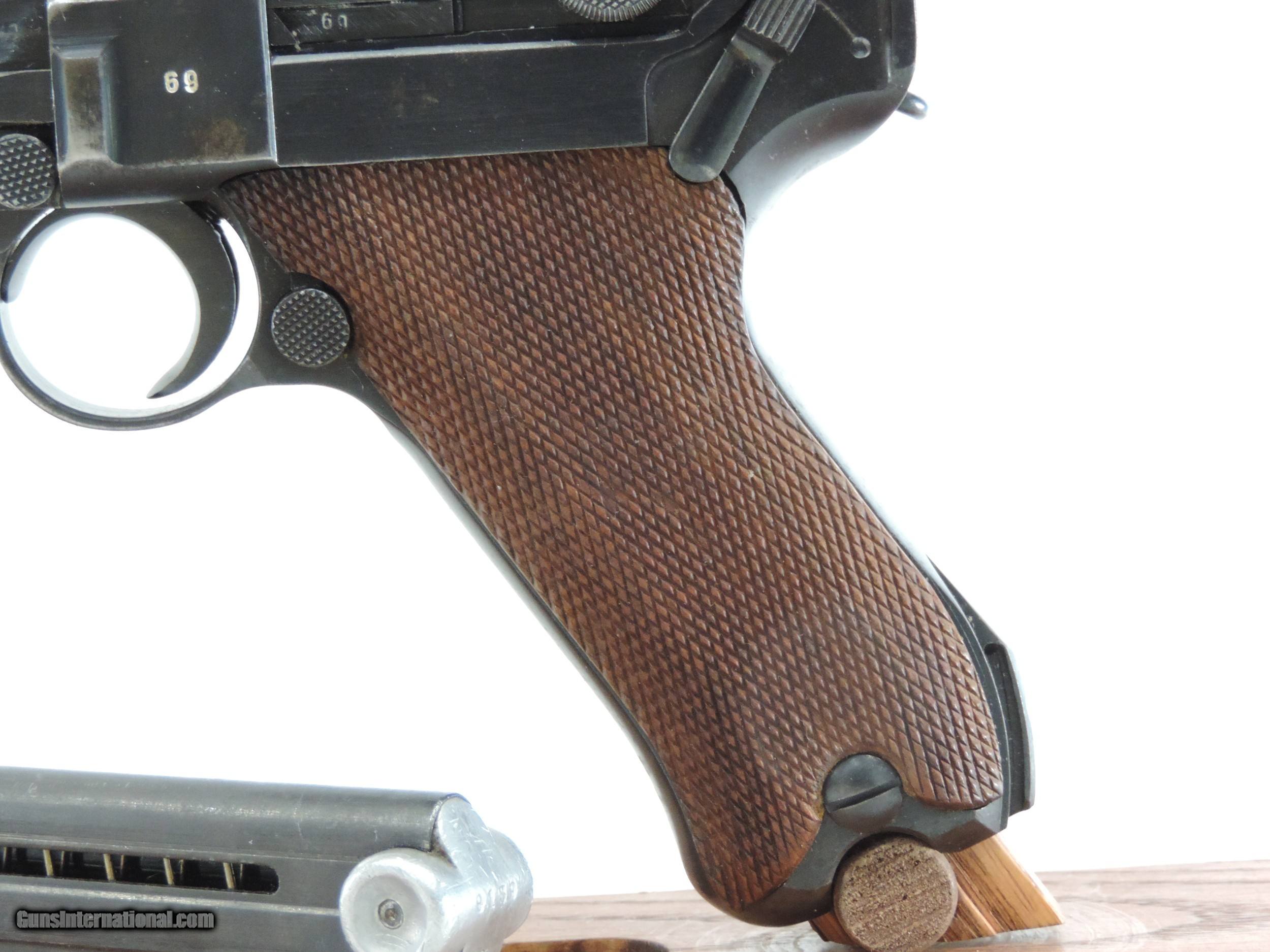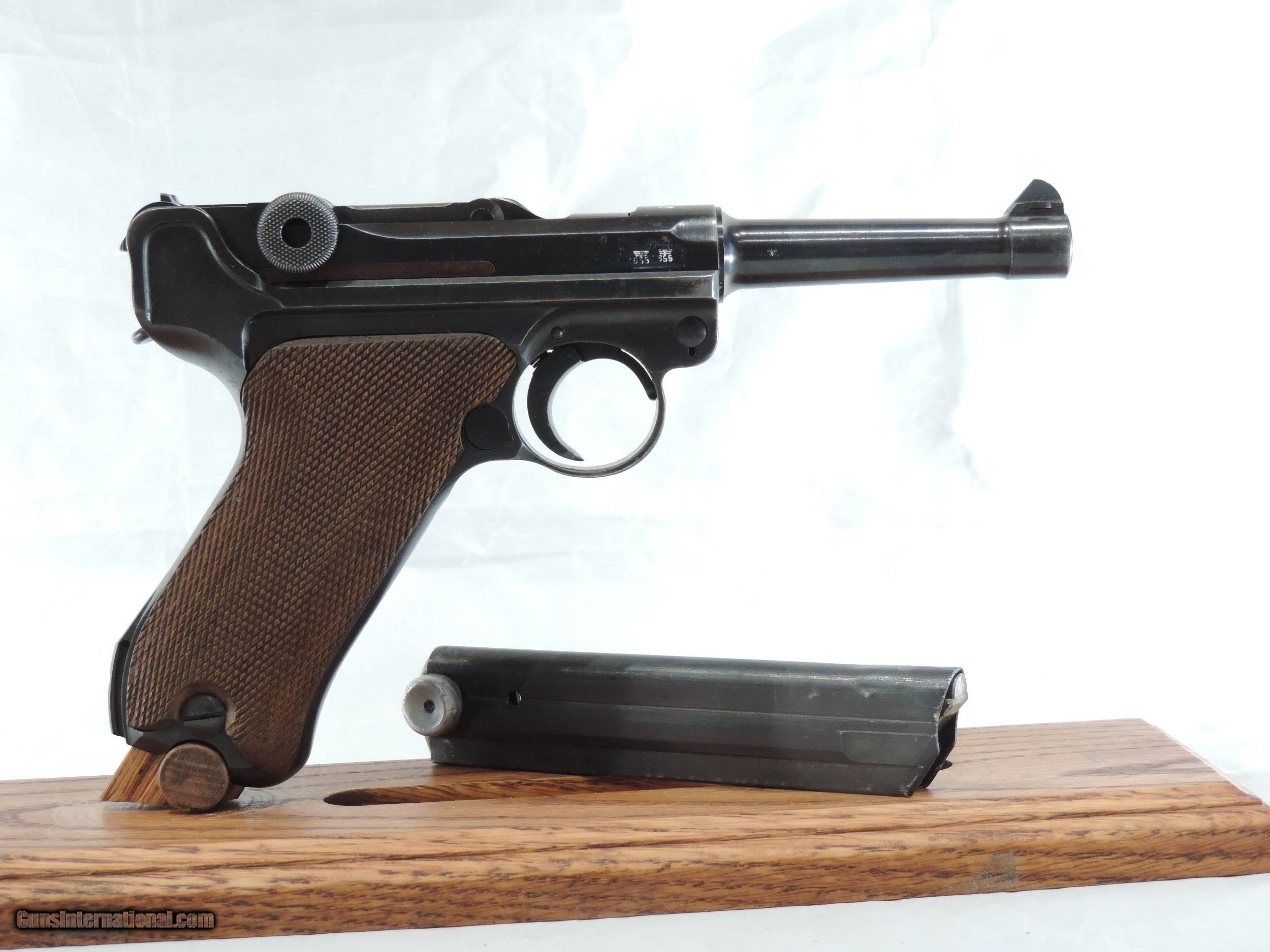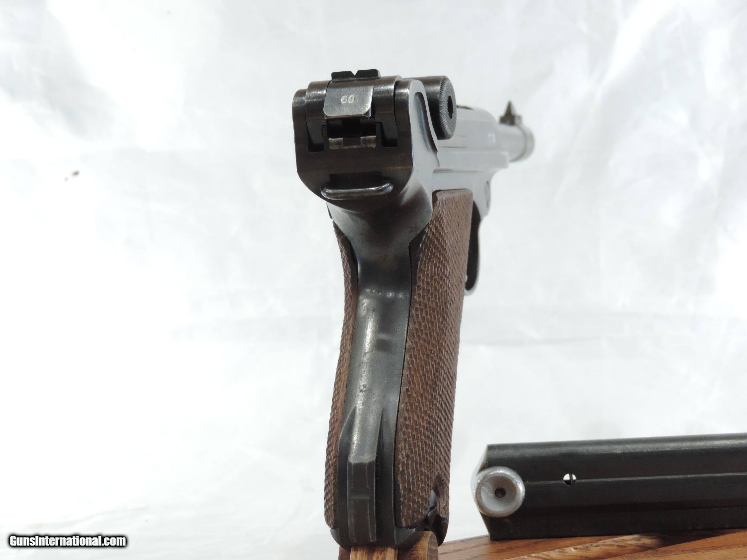 Description: INV. 10550 MAUSER (LUGER) P.08, CAL. 9MM, SER. 3769c. THIS "byf/40" BEAUTY HAS RETAINED ABOUT 95-96% OF THE ORIGINAL FACTORY FINISH. THE ONLY LOSS IT HAS IS SOME SLIGHT SHARP EDGE SILVERING FROM HOLSTER WEAR AND A FEW SCATTERED PIN PRICKS. THERE ARE NO RUST SPOTS, RUB MARKS OR SCRATCHES. ALL NUMBERS MATCH AND HAVE THE CORRECT WAFFENAMTS AND EAGLE/SWASTIKAS. THE SLIDE RAILS, BOLT FACE AND FEED RAMP SHOW SLIGHT IF ANY USE. THE BARREL IS SUNSHINE BRIGHT WITH RAZOR SHARP RIFLING AND SCATTERED FROST. THIS EARLY "BYF" CODED IT IS A GREAT FIND FOR EVEN THE MOST CRICTCAL INVESTOR AND CERTAINLY CENTERPIECE FOR THE COLLECTOR. MODESTLY PRICED AT...... $2695.*** ***100% SATISFACTION GUARANTEE" THE WHITE CRAYON IS SO THE BUYER IS SURE THAT MARINGSARE CORRECT. IT IS EASILY REMOVED WITH A TOOTHBRUSH AND LIGHTER FLUID. BE ASSURED IT DOES NOT HARM THE FINISH. WE WILL DO IT PRIOR TO SHIPPING UPON REQUEST. To purchase this firearm or if you want to request more information contact us at: Email ckguns[at]ymail[dot]com Phone 201-512-0002 Cell 201-575-6838 FAX 201-215-4759 We accept most major credit cards. Prices shown are Discounted 3% for Cash or Check. The buyer must be familiar with all the laws governing the purchase and the ownership of firearms in their own city and state. The Yankee Armorer, Inc is not responsible for any failure to comply with or observe these laws. The Yankee Armorer, Inc will only ship after full payment and receipt of all required documents. Shipping: Add $35.00 for handguns, $45.00 for long guns. New Jersey buyers are subject to a 7% sales tax. The Yankee Armorer, Inc offers a 3 day inspection period with full refund upon return of intact firearm and in the original condition. The Yankee Armorer, Inc offers a no interest lay away program - 25% down; 25% in 30 days; 25% in 60 days; and full payment in 90 days. Any violation of this policy is subject to restocking and forfeiture of all payments. Any variation from this policy must be agreed to in advance. Unshipped Cancelled sales are subject to a 20% restocking fee. Be advised that all firearms sold by The Yankee Armorer, Inc. or the Gun Exchange, LLC (SELLER) are sold as collector’s items. They have not been fired or tested for safety and must be examined by a license gunsmith prior to use. By purchasing any item from the (SELLER), you are agreeing to hold the (SELLER) free from any damages or lawsuits of any nature. Any item left for transfer or storage will be charged to $25.00 per month, per item from the day of its receipt. Any variation from this policy must be agreed to in advance. Store hours 10:00 am to 5:00 pm Tuesday -Saturday. It's always best to call for appointment. Store 201-512-0002, cell 201-575-6838. SOLD Curio/Relic: Yes |