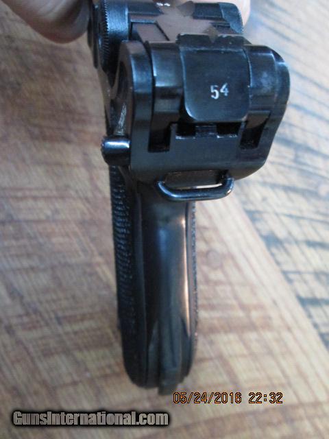 Description: MAUSER / LUGER P08 BYF 41 BLACK WIDOW 9MM PISTOL. ALL MATCHING NUMBERS,COMPLETE WITH PROPER FXO E/37 PROOFED BLACK BOTTOM MAGAZINE.TOP OF TOGGLE STAMPED WITH MAUSER CODE BYF,TOP OF CHAMBER STAMPED WITH DATE CODE 41.RIGHT SIDE OF RECEIVER HAS 2-EAGLE /655 PROOFS AND 1 EAGLE ACCEPTANCE MARK AND 1 EAGLE ACCEPTANCE MARK RIGHT SIDE OF BARREL.S/N 1154 ON ALL PARTS.REPRODUCTION BLACK CHECKERD PLASTIC GRIPS.GUN WAS REBLUED AT ONE TIME.99% OF REBLUE REMAINS.MECHANICLY SOUND GUN.NO HOLSTER OR TOOLS. 1895.00 PLUS 40.00 SHIPPING. CHECKS TAKE 10 DAYS TO CLEAR,M/O'S TAKE 5 BUSINESS DAYS TO CLEAR,NO CREDIT CARDS TAKEN.CALL DANNY AT 828-698-8804 IF NEEDED.GOD BLESS! SOLD Curio/Relic: Yes |