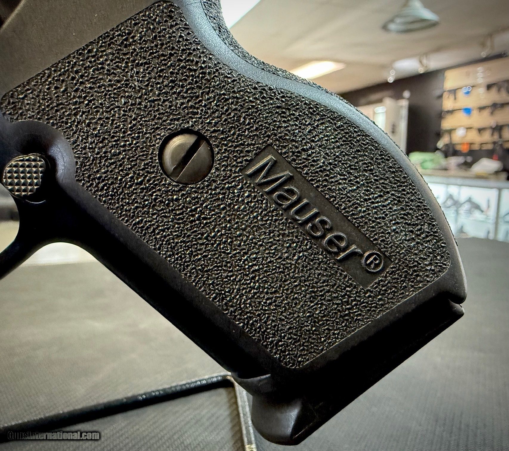Description: Guns Listing ID: 588054 Made by SIG comes with box and 4 mags Mauser M2 – .40 S&W Specs Caliber: .40 S&W Action / Locking: Recoil-operated, double-action-only (DAO) with rotating barrel lockup Capacity: 10 rounds Barrel Length: 3.54 in (90 mm) Overall Length: 6.85 in (174 mm) Weight (Unloaded): ~32.7 oz (900 g) Frame / Materials: Aluminum alloy frame, steel slide and barrel Sights / Controls: Fixed combat sights, DAO trigger system, manual safety (on most models) Production: Early 2000s; discontinued and available only on the used market Title: Mauser M2 – .40 S&W – 3.54\" Barrel – 10rd – Good Condition Description (one-line): Reliable Mauser M2 DAO semi-auto pistol in .40 S&W, featuring a 3.54\" barrel, 10-round magazine, and durable alloy frame — clean and range-ready. Highlights: Caliber: .40 S&W – includes 10-round magazine Barrel: 3.54 in; overall length 6.85 in; weight ~32.7 oz Fixed sights, DAO trigger, rotating-barrel design, smooth action Manufacturer: MAUSER Model: M2 Caliber Info: .40 S&W Condition: Used - Non-Certified Barrels: 3.5" BARREL Action: SEMI AUTOMATIC Finish: black Price: $499.99 Contact Seller |