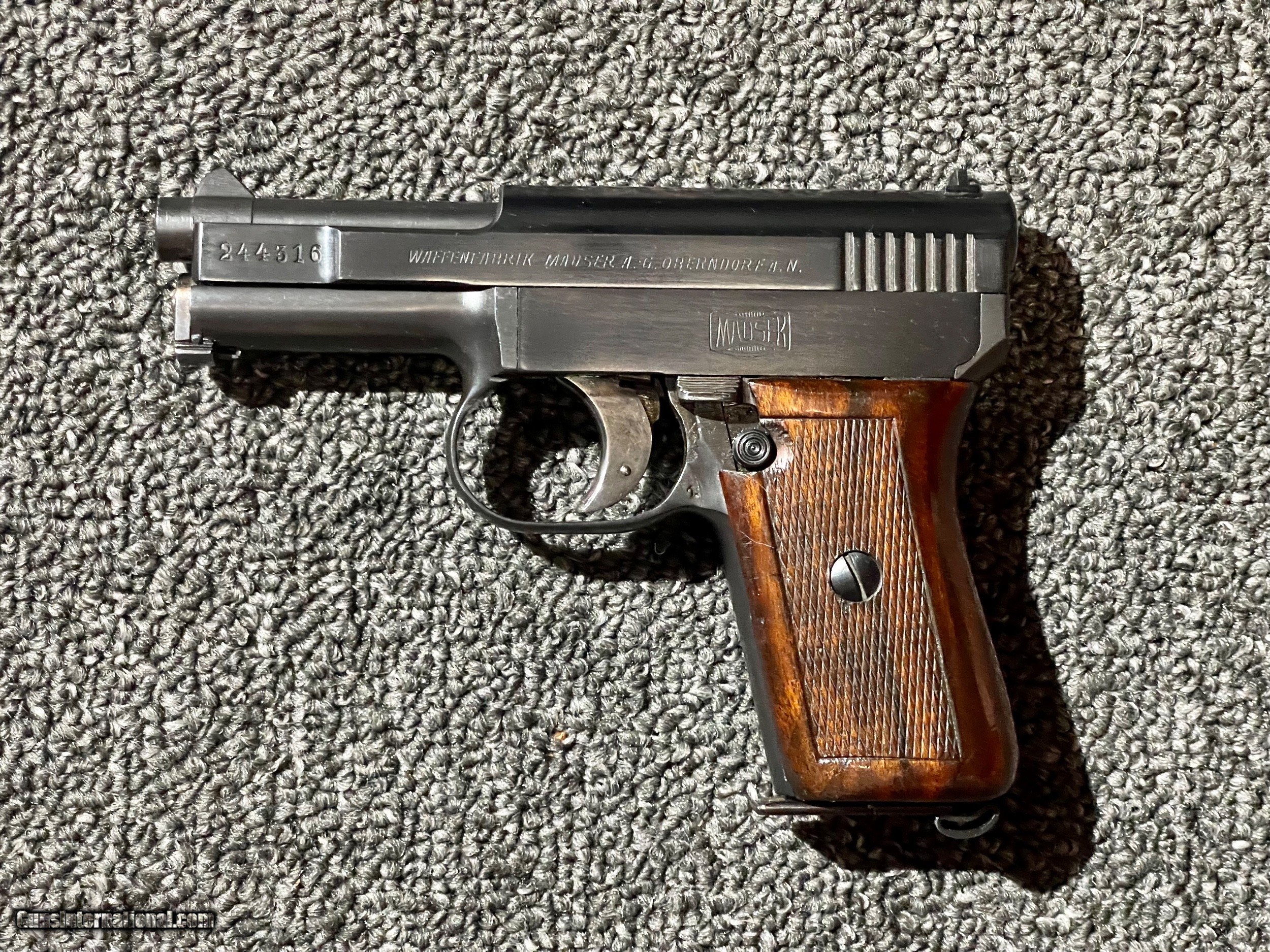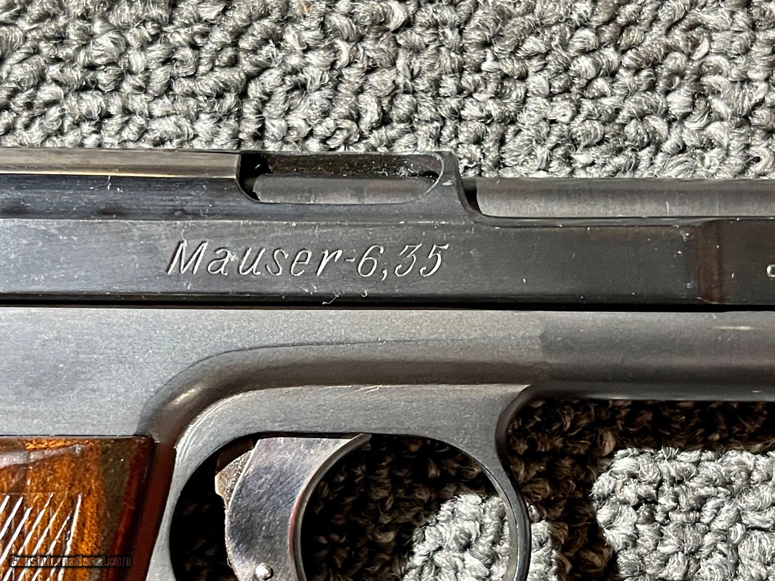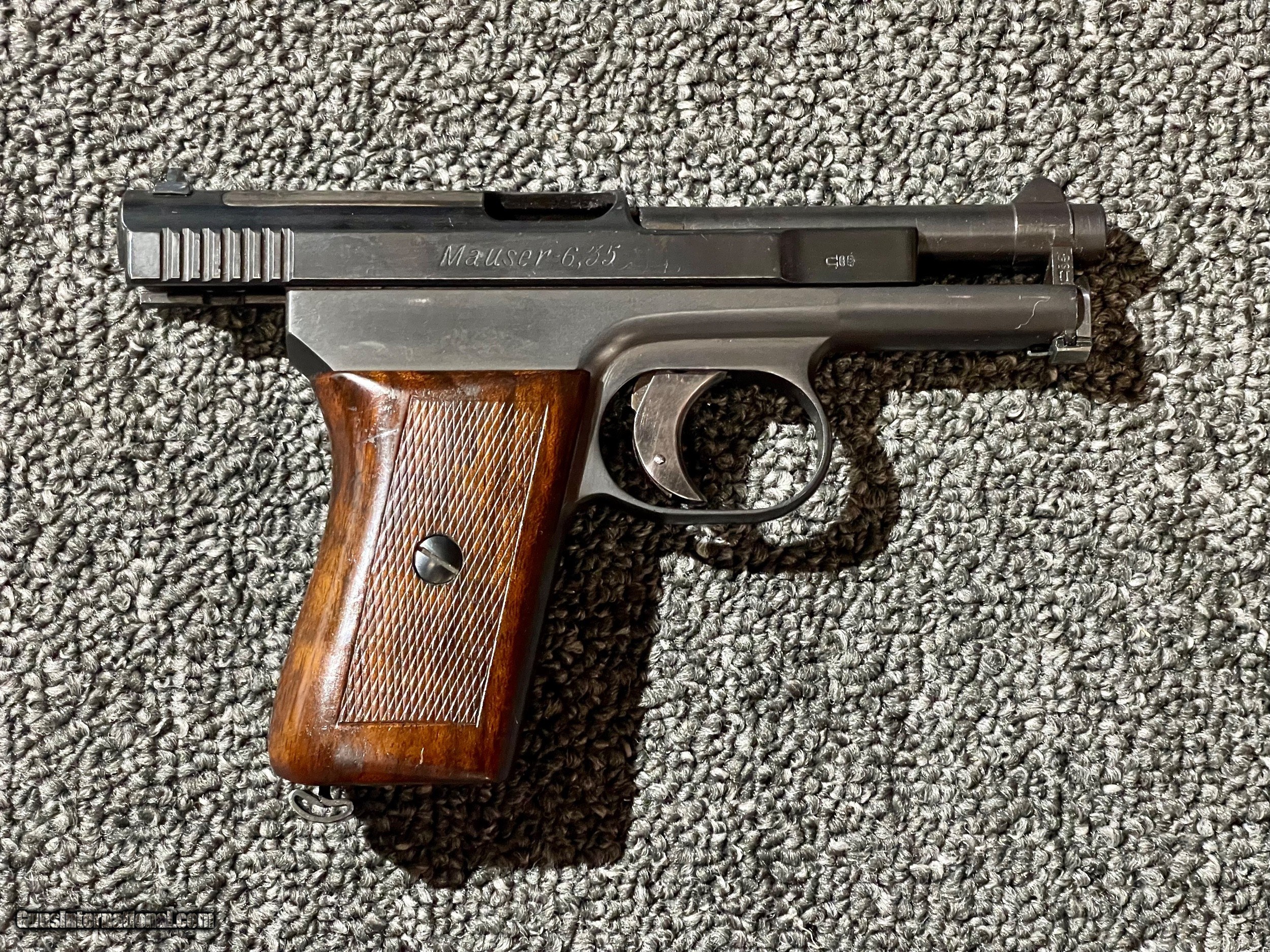 Description: Pre-WWI GERMAN Mauser Model 1910 .25 ACP Semi-Automatic POCKET Pistol German Side Arm Chambered in 6.35mm Browning Auto German Mauser Model 1910 Pistol, made circa the 1910s in Oberndorf, Germany. The Model 1910 was an early semi-automatic pistol for Mauser and one that was quite successful. The Model 1910s were in service between 1910 and through the end of World War II in 1945. Paul Mauser’s vision for his new semi-automatic pistol was to create a design that could be essentially scaled up or down to suit the cartridge it was to be used for. These designs were most probably created by an engineer named Josef Nickl whom Mauser had employed in 1904. Nickl produced designs for pistols in 9mm Parabellum, .45 ACP, 7.65 Automatic (.32ACP) and 6.35mm (.25ACP). The development of Paul Mauser’s small pistols was well underway by around 1908, around this time he told the Deutsche Versuchs-Anstalt für Handfeuerwaffen (the German Experimental Laboratory for Handguns) that his company would be producing a small 7.65mm pistol “That would not be larger in weight and size than the well-known Browning 7.65 pistol”. The pistol we now refer to as the Mauser “Model 1914” was the 7.65mm (.32ACP) version and development work on it began after the “Model 1910” was in production. The design of the pistol was almost identical to that of the 6.35mm “Model 1910” but scaled for the larger and more powerful .32ACP cartridge. Despite the fact that Mauser’s company did not actually refer to their designs by model, but rather by caliber, so the two smaller Mauser pistols that were produced in large quantities have tended to be referred to by collectors by model year. The Model 1910 is the nomenclature applied to the smallest of these handguns that was chambered for the 6.35mm cartridge (.25ACP) and the Model 1914 model name for the 7.65mm (.32ACP) pistol. The overall condition is very good. Excellent action. Bright, rifled bore. Sharp, clear markings. Fine grip with nice checking and low handling wear. Numbers match. Barrel is 3 inches, one mag. ****WE ARE ALWAYS BUYING AND ARE VERY EXPERIENCED IN ESTATE SALES TOO. LET US KNOW HOW WE CAN HELP!**** PAYMENT: -Payment must be recieved within 10 days of purchase. 3% additional charge for credit card processing. SHIPPING & HANDLING: -$30 for handguns and $45 for long guns SHIPPING FIREARMS: -Firearms shipped to FFL dealer only -We will ship upon receipt of payment and signed legible copy of dealer's FFL via Fax, Mail or E-mail. SALES TAX: -Florida residents add 7.5% sales tax. PRODUCT: -We operate a gun shop which means that every item is for sale in our store and it may have already been sold when you contact us. NEW GUNS: -On new Firearms we may use file photos instead of the actual gun. CONTACT: -Contact me with any and all questions. We want you to be happy with your purchase. PHONE #: (904) 271-5270 STORE HOURS: Mon-Fri: 11p-6pm Sat: 9a-3p BUYER: -It is Buyer's responsibility to ensure that the weapon is LEGAL to own in your city/state. SOLD Handgun Caliber: .25 ACP (6.35mm Browning, 6.35×16mmSR) Manufacturer: mauser |