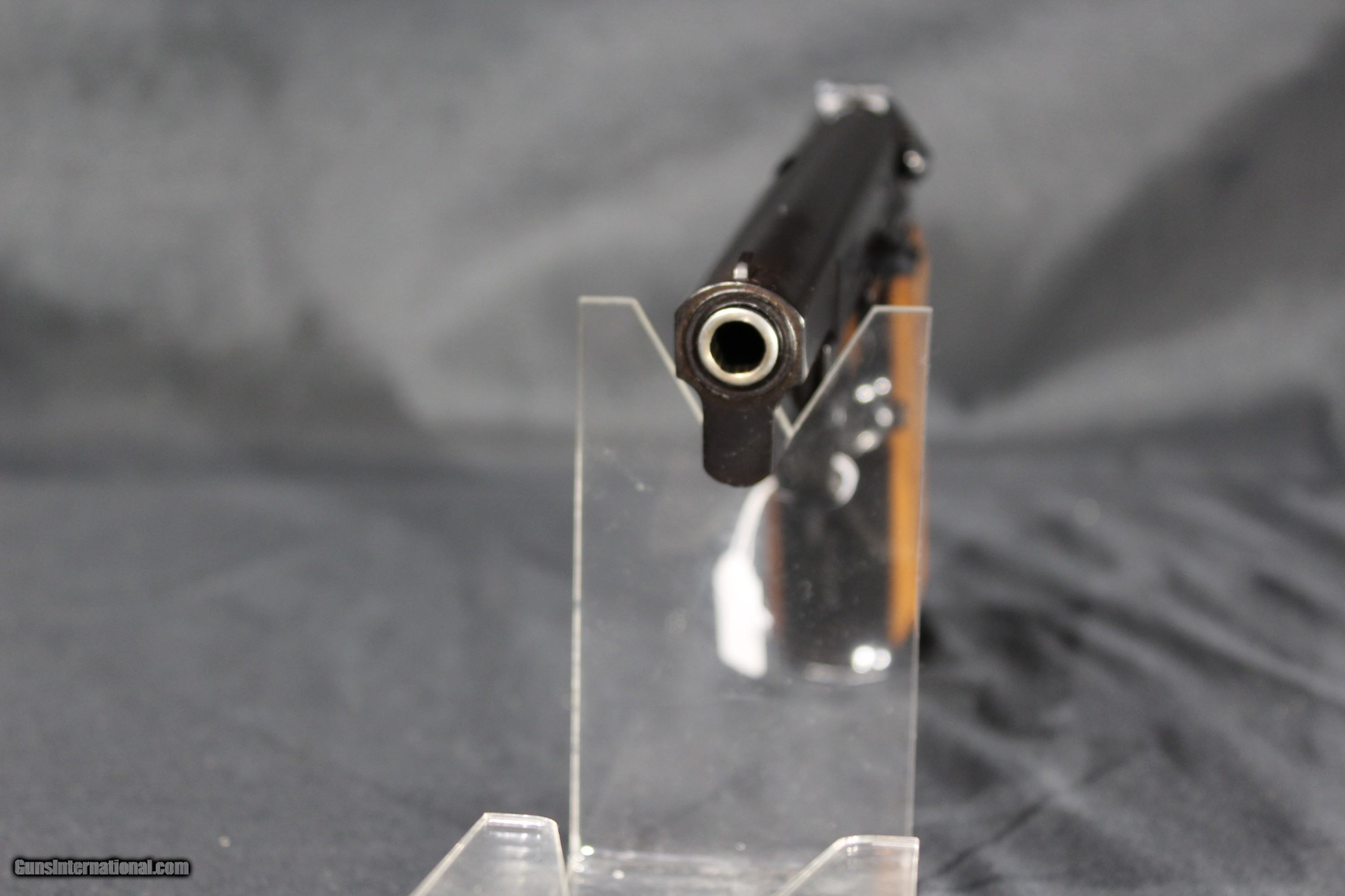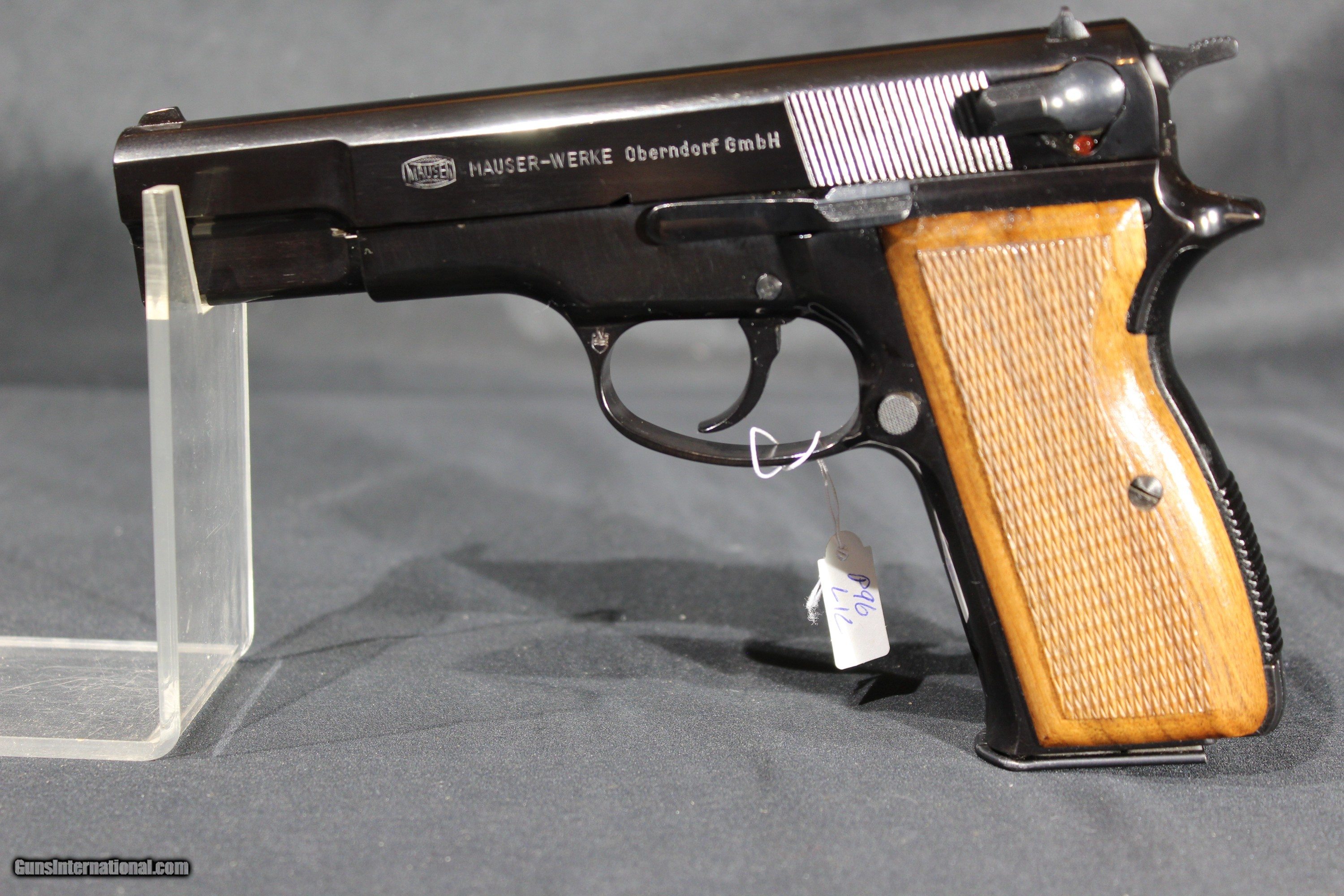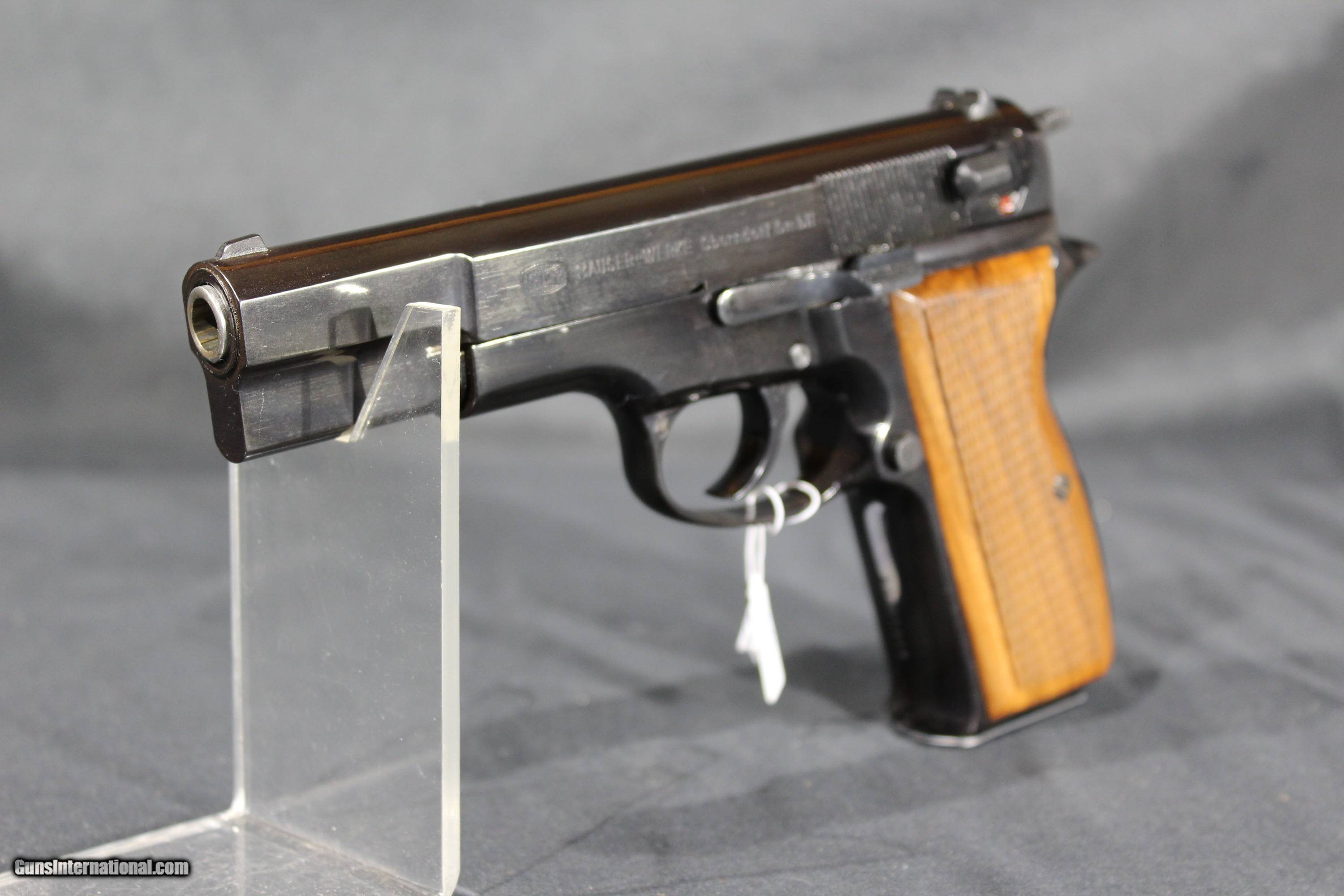 Description: SN: 90022321. 1980's production 9mm. An unusual double action Hi-Power clone marked "Mauser" . Also known as the Model 90 DA, Full size grip frame. Very good condition with minable wear. SOLD SOLD Handgun Caliber: 9x19mm Parabellum (9mm Luger, 9x19mm NATO) Manufacturer: Mauser Model: 90DA Serial Number: 90022321 Barrel Length: 4.5 Condition: very good - Excellent Metal Condition: Excellent Wood Condition: Excellent Bore Condition: excellent |