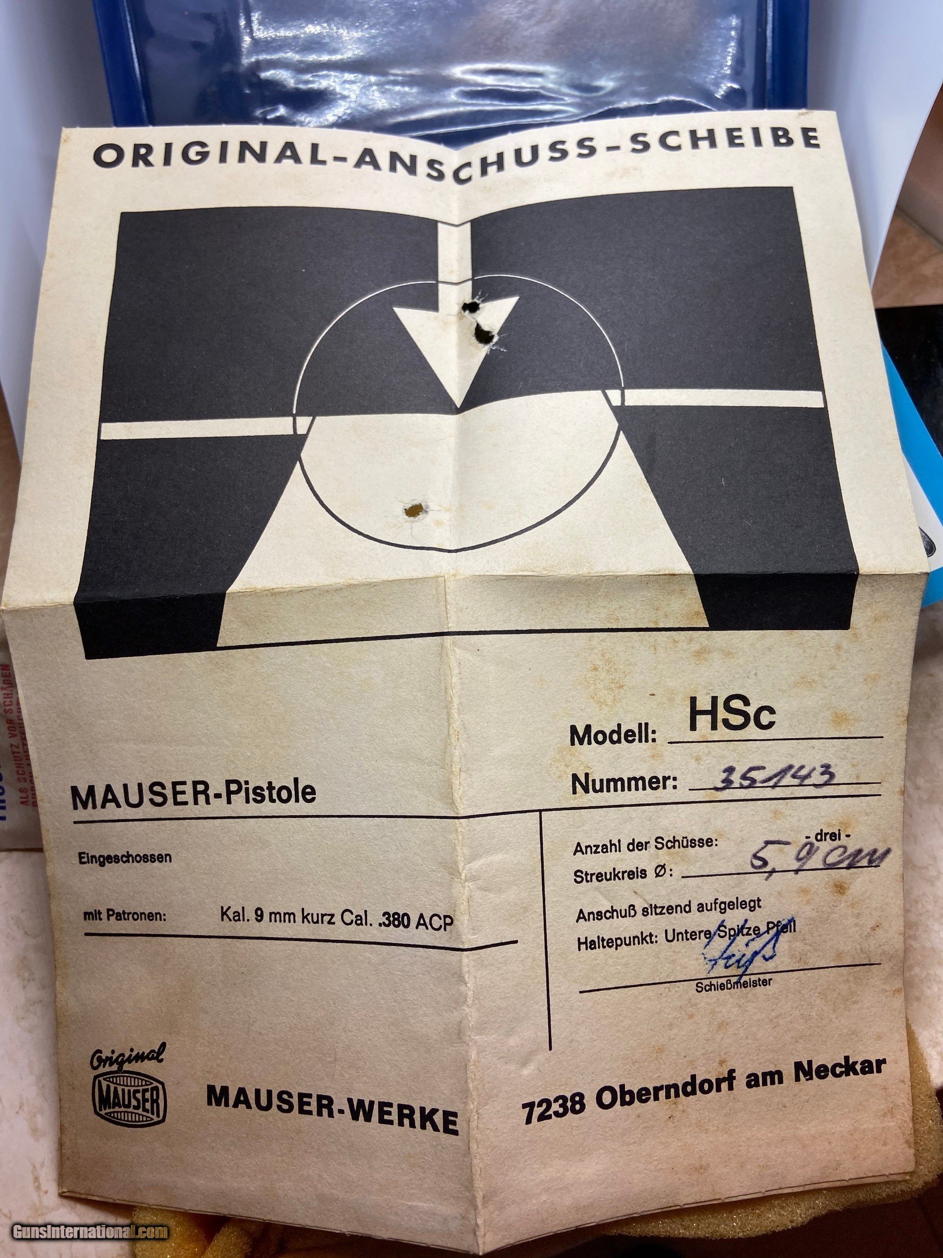 Mauser Modell HSc .380 Caliber (9mm Kurz) Pistol NEW Still has factory Cosmolien Box & all papers (Even test target ) Extra Magazine,