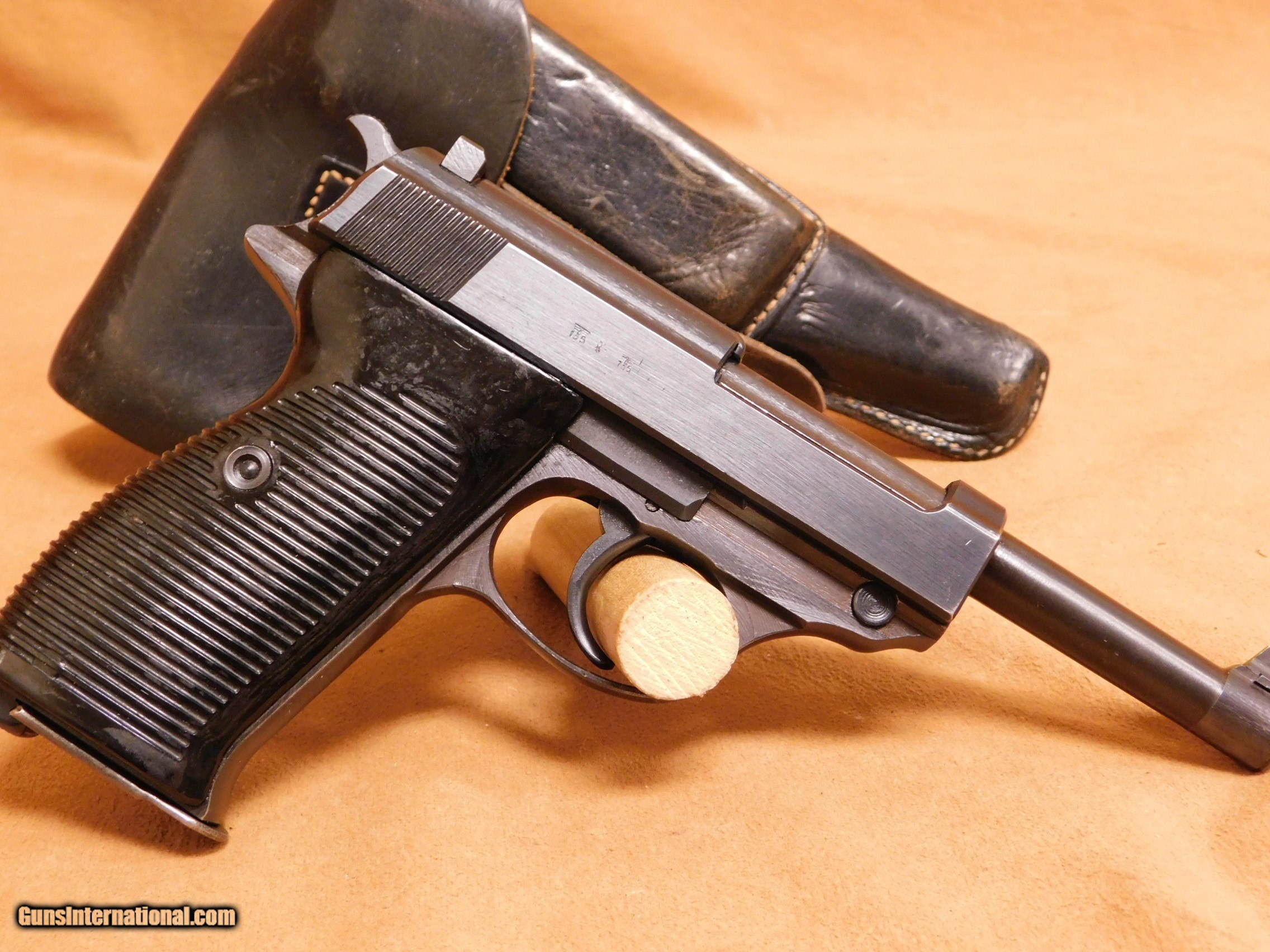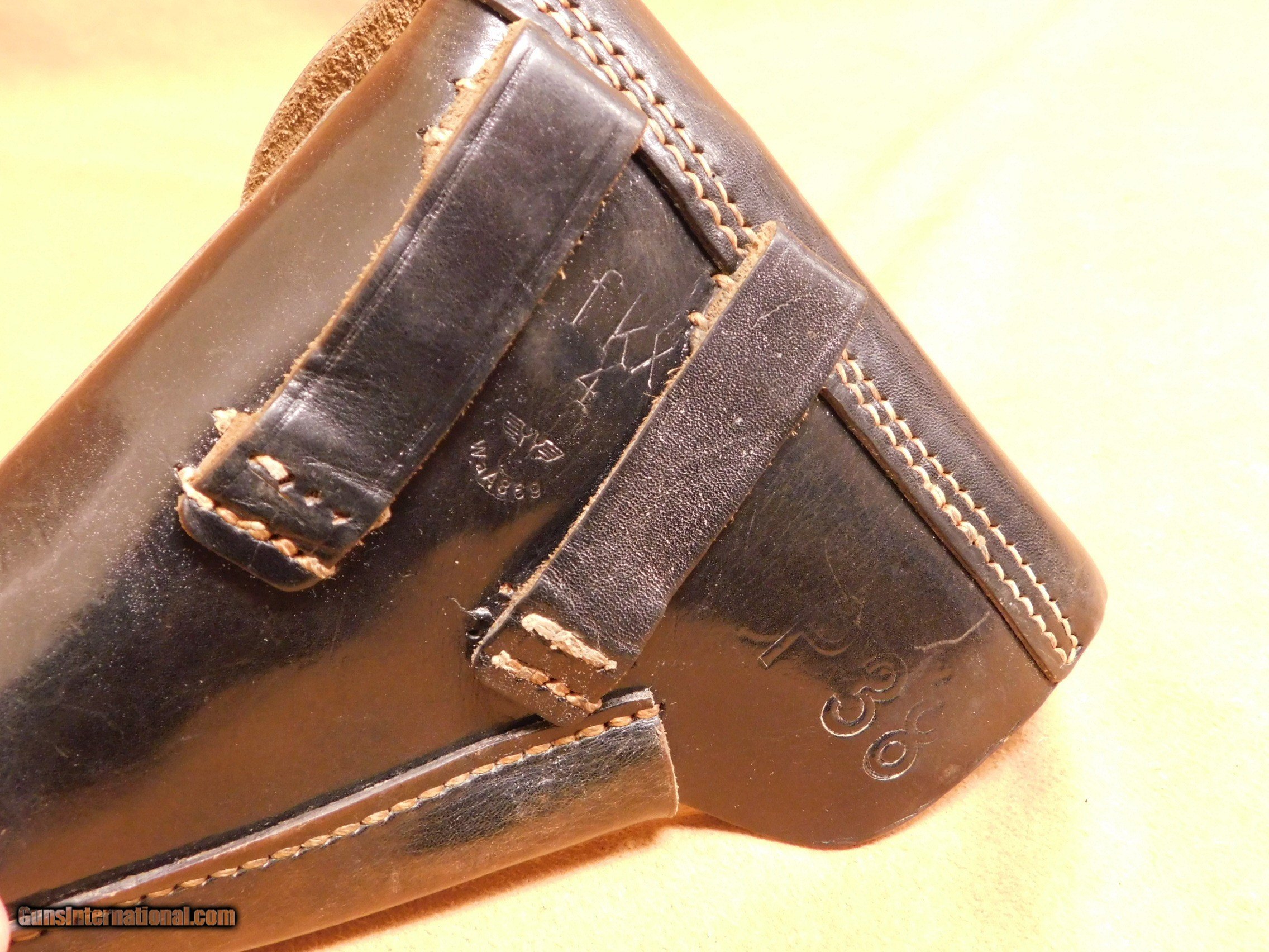 Description: This is a near-mint byf 43 Mauser P.38 with the rare matte blue finish. The gun is all-matching, with the correct magazine and a '44-dated holster. The bore is excellent. This is a great collector-grade find in stellar, crisp condition. SOLD Curio/Relic: Yes Manufacturer: Mauser Model: P.38 Serial Number: 4548 I Caliber Info: 9 mm Manufacture Date: 1943 |