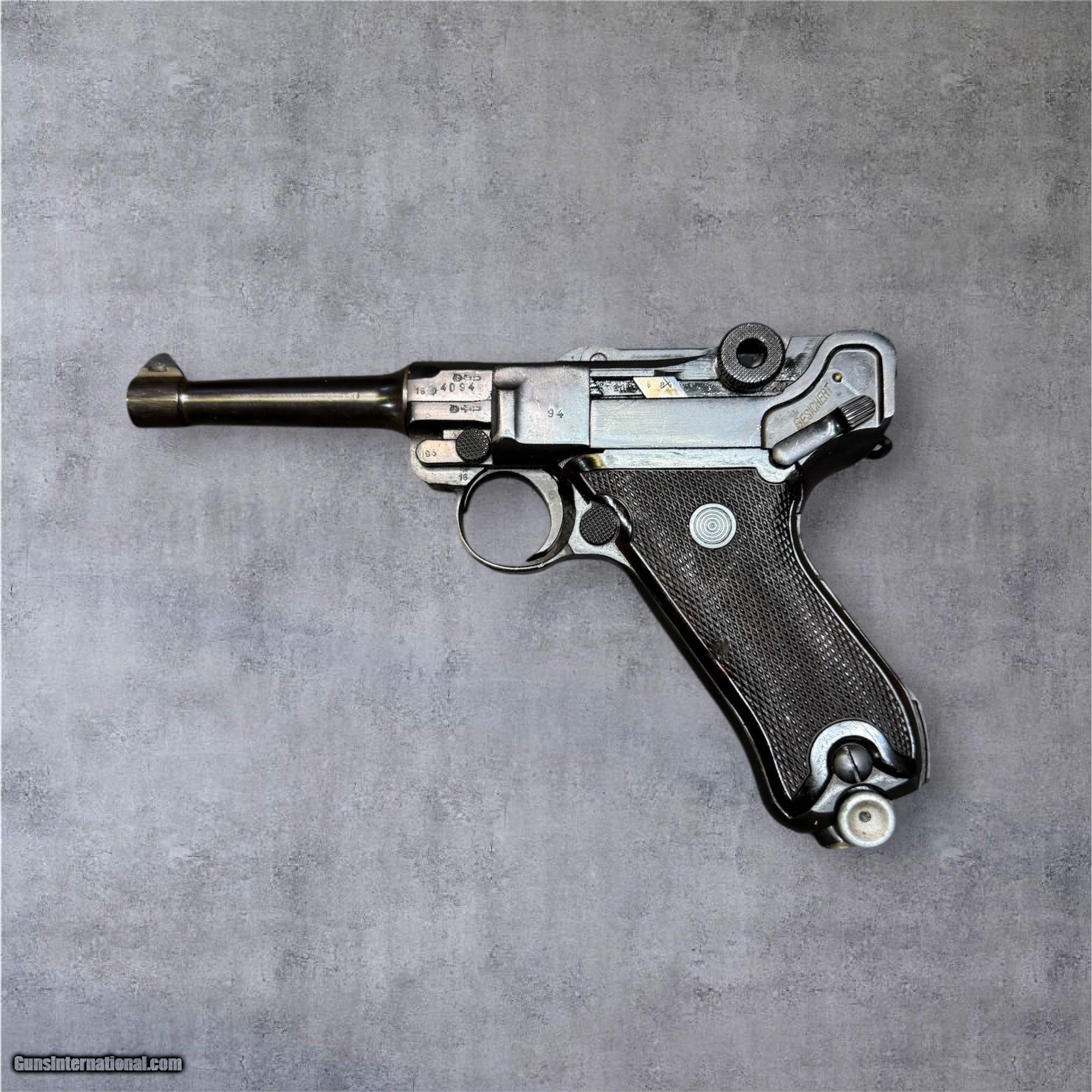 Description: Guns Listing ID: 608513 -This is a fascinating example of a Mauser-manufactured P.08 Luger. A \"Russian Capture\" or \"East German Volkspolizei (VoPo)\" rework of a 1938 S/42 Luger. Appears to be matching numbers besides toggle with no forced fit parts. Beautiful gun in excellent condition. -The \"X\" Mark (Russian Capture): The \"X\" struck on the left side of the receiver (near the serial number) is the most significant mark here. -This is a Soviet capture mark. After WWII, the Soviet Union captured millions of German small arms, refurbished them, and put them into long-term storage or supplied them to satellite states (like East Germany or Vietnam). -S/42 and 1938: The \"1938\" on the chamber and the \"S/42\" code (visible in the script on the toggle) identify this as a Mauser production model made for the Wehrmacht in 1938 After careful inspection, this firearm appears to be matching numbers or majority matching numbers which is rare for Russian Captures as they typically have majority replacements -Serial Number: 4049 -“49" being visible on all important visible parts. Magazine also stamped 4049 -This firearm has Black Bakelite Grips typically referred as Black Widow Grips or Configuration. -The Crown/N and Proofs: You can see the Eagle/63 Waffenamt (military inspector) stamps. These are the correct acceptance marks for a 1938 Mauser-made P.08. This pistol has lived \"two lives\": 1. First Life (1938–1945): It was a front-line sidearm for the German military during the buildup to and the duration of World War II. 2. Second Life (Post-1945): It was captured by the Red Army, sent to a Soviet or East German arsenal, stripped, re-blued (the dark, dipped-black finish is typical of these reworks), and reissued to East German police or kept in a crate for decades as a \"just in case\" weapon for a potential “World War III" Overall condition is excellent! Blueing is in fantastic shape for the age, fully functional, grips are an excellent tight fit. Barrel is clean with strong rifling. Over all an incredible piece. Check out Guns’s BUY NOW, PAY LATER options! Curio/Relic: Yes Manufacturer: MAUSER Model: P08 Russian Capture Luger Caliber Info: 9MM LUGER (9x19 PARA) Condition: Used - Non-Certified Barrels: 4" BARREL Action: SEMI AUTOMATIC Finish: black Price: $3,499.99 Contact Seller |