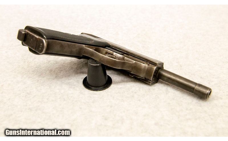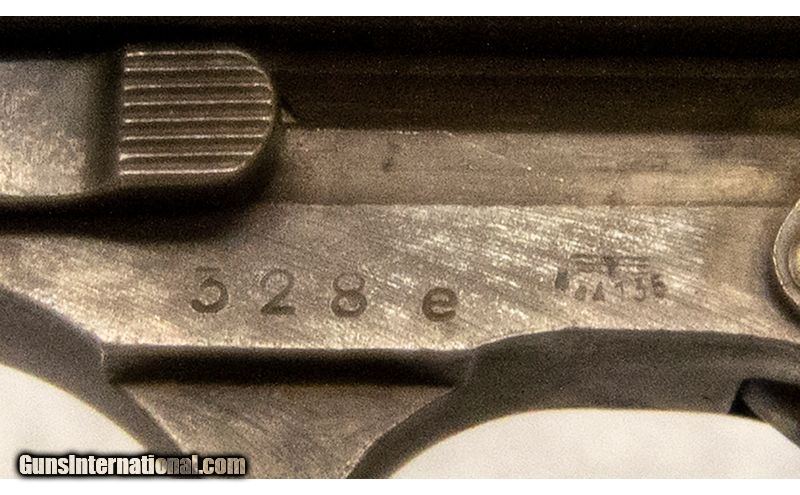 Description: Mauser P38, chambered in 9 mm. This Mauser P38 features several things such as: double action, 8 shot magazine, black composite grips, phosphate finish. On the left side of the frame we can see the P38 designation along with the byf44 which is a Mauser code. The serial number 328e is matching for the frame, and we can also see the WaA135 proof mark. On the right side of the frame you can see the 2 WaA135 proof marks in between an eagle with a swastika. On top of the frame there is a different proof mark of an Eagle with 353 9mm Parabellum SOLD Chambers: 9 mm Metal Condition: Good Bore Condition: Good Barrels: 5' Sights: Iron Item Location: Fort Mill, SC |
