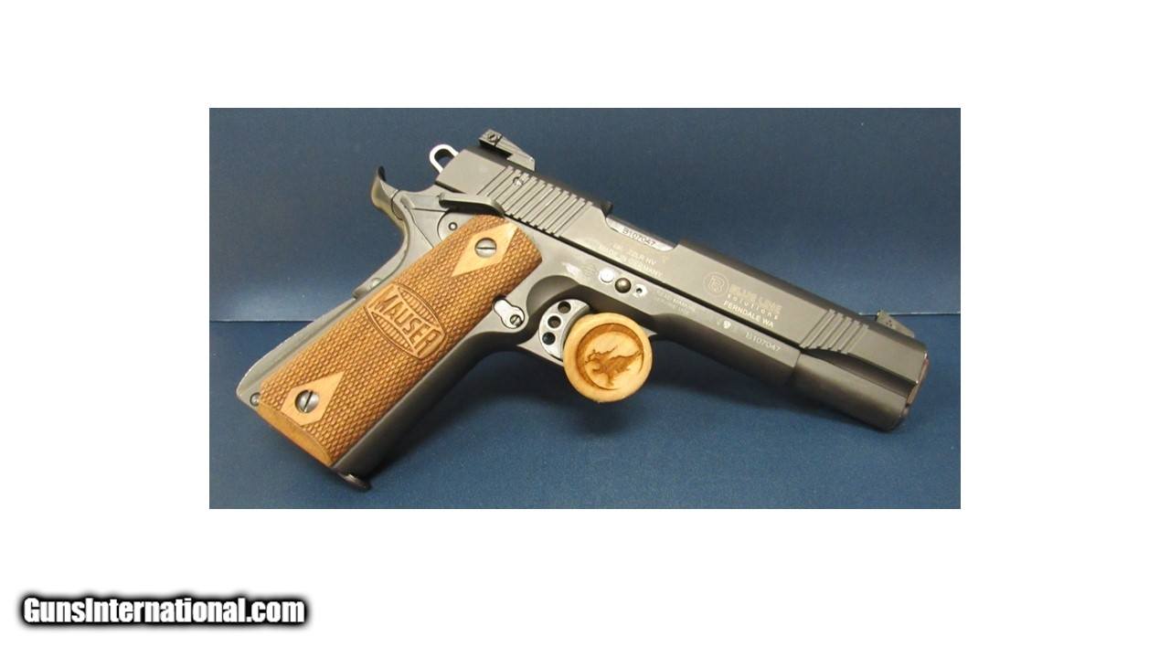 Description: Guns Listing ID: 507699 The Mauser Rimfire 1911 is a full-size, all-metal pistol in .22 LR caliber. Featuring a 5\" threaded barrel, it offers excellent accuracy and versatility. The blued slide and frame provide a classic look, while the 3-dot sights ensure quick target acquisition. With checkered walnut logo grips, this pistol delivers a comfortable and secure hold. The ambidextrous manual safety enhances usability for all shooters, and it comes with a 10-round magazine for extended shooting sessions. SOLD Manufacturer: MAUSER Model: RIMFIRE 1911 Caliber Info: .22 LR Condition: Used - Non-Certified Barrels: 5 Action: SEMI AUTOMATIC Finish: wood grips/blued steel |