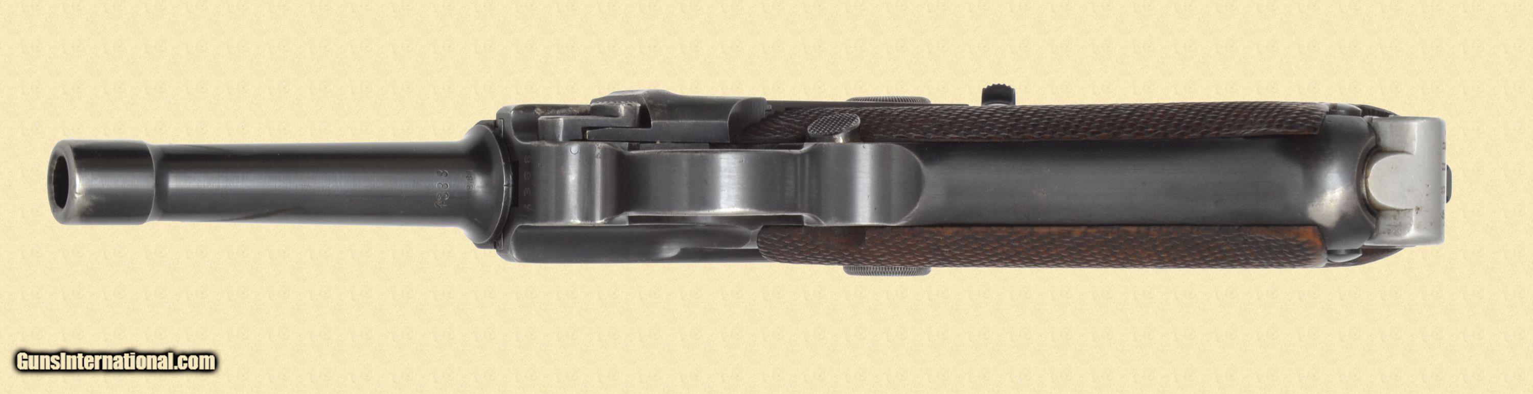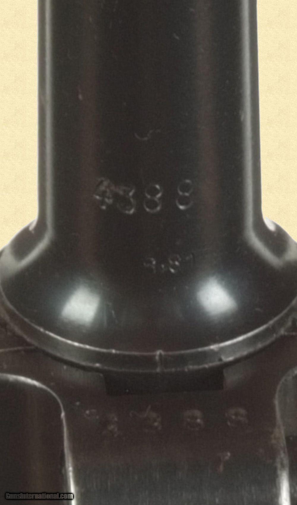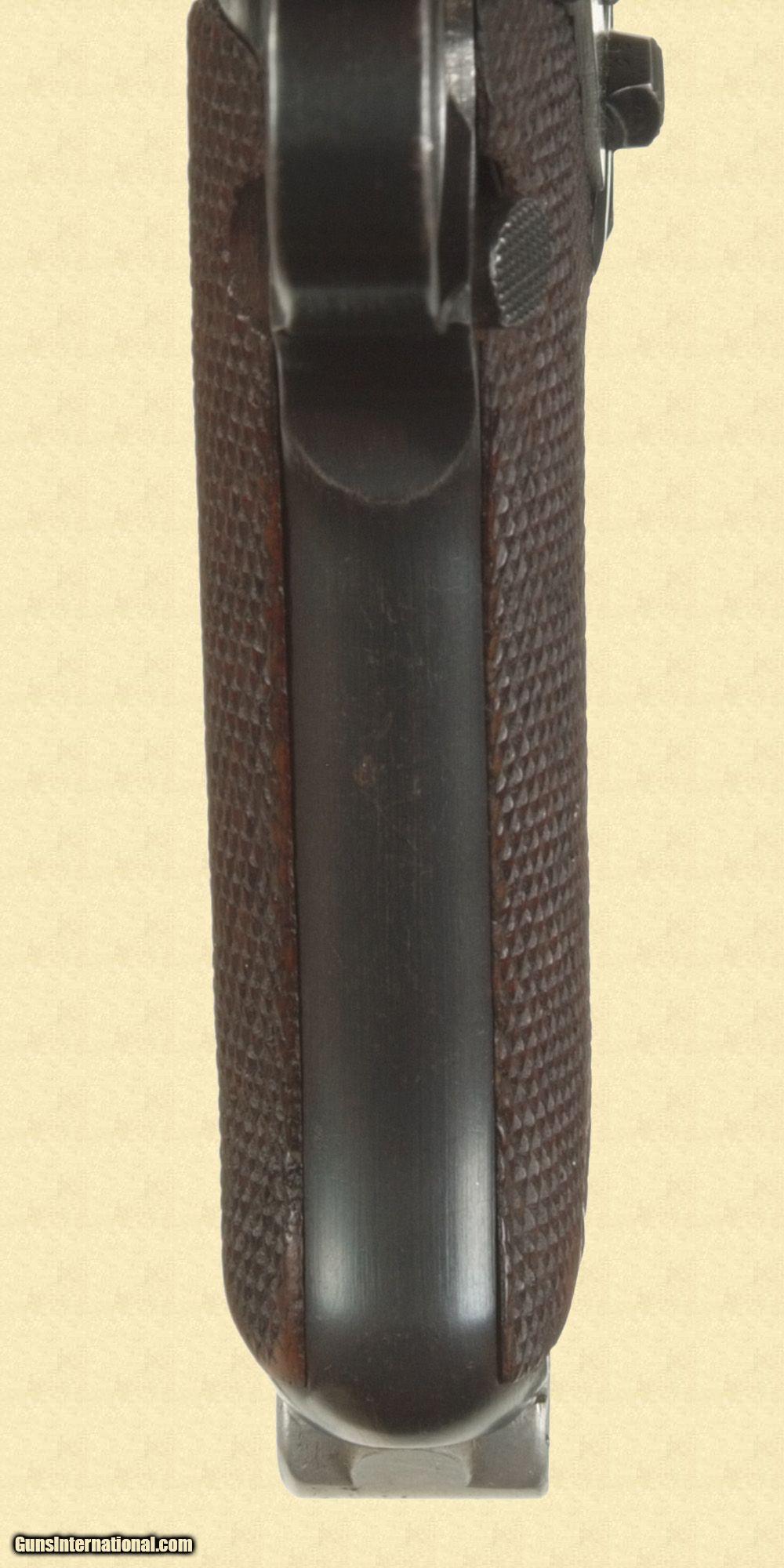 Description: 9mm Luger; 87% blue, fair bore, good grips, 4'' barrel, All blue finish S/42 1937 variation. Original blue finish and checkered walnut grips. Matching including the magazine and grips. Standard markings and proofs, the right side of the receiver is stamped with two stick wing eagle/63 proofs and a droop wing eagle military acceptance mark. The metal finish shows edge wear and high pont holstering wear, with areas of thinning overall. The sideplate appears to have had the finish touched up some. The grips show fairly light wear and handling with well defined checkering. Mechanically fine. The bore has strong rifling however is a bit dark and rough throughout. C&R/FFL Please call (309)342-5800 Tues-Fri, 10 am -6pm (CST), or Sat 1pm-6pm (CST), to speak with our sales team for further information, or to purchase firearms. FEDERAL FIREARMS LICENSE (FFL): is required on all shipments of modern guns. We must wait for a copy from your dealer before we can ship to them. We will also ship C&R eligible firearms to Curio and Relic (C&R) license holders. We accept your signed, legible FFL and C&R licenses via fax at 309/ 342-5730 (always on), email at FFLsimpsonltd or through the mail at Simpson Ltd; 140 S Seminary St; Galesburg, IL 61401. Pre-1898 firearms and non-firearms items are exempt from licensing requirements. All items shipped to an Illinois address will be charged 8.75% sales tax. NOTE: Because of recent shipping restrictions and charges placed on us by UPS and FedEx (handguns must ship via next day or 2nd day air and they have added a $10 surcharge for parcels over 48”. Our return policy lasts a maximum of 3 days from the time you receive your item. If 3 days have passed since you received your purchase, and we have not been contacted by you, unfortunately, we can’t offer you a refund or exchange. If you are not happy with your purchase, please contact us by phone and/or email to arrange for a return. Items must be shipped back to us to arrive with 7 days of notification of return. SOLD Curio/Relic: Yes Serial Number: 4388 |